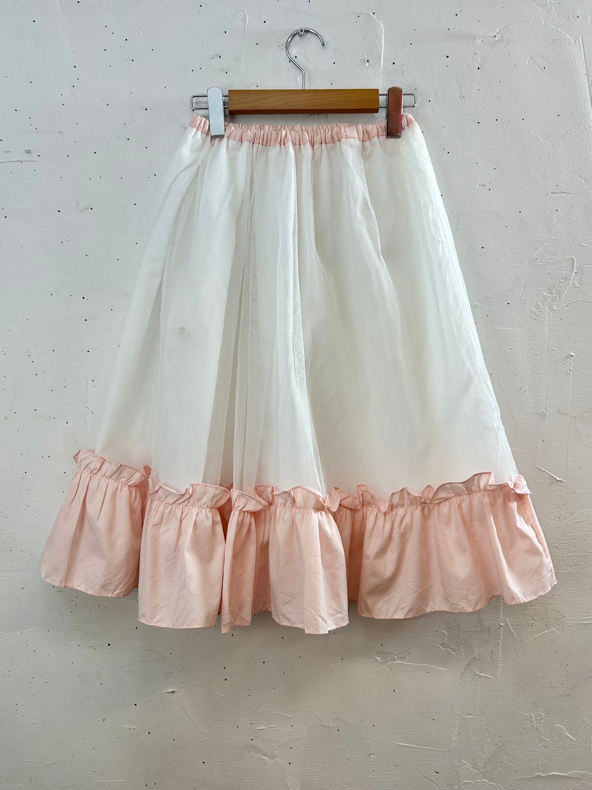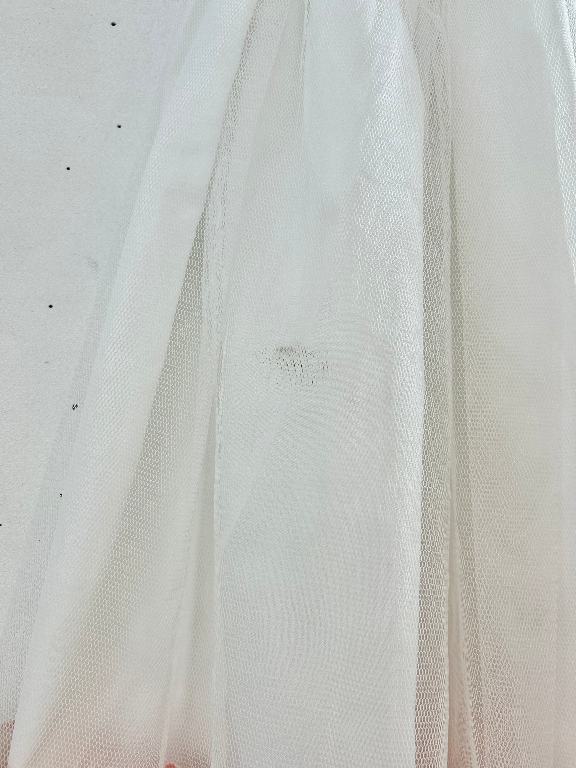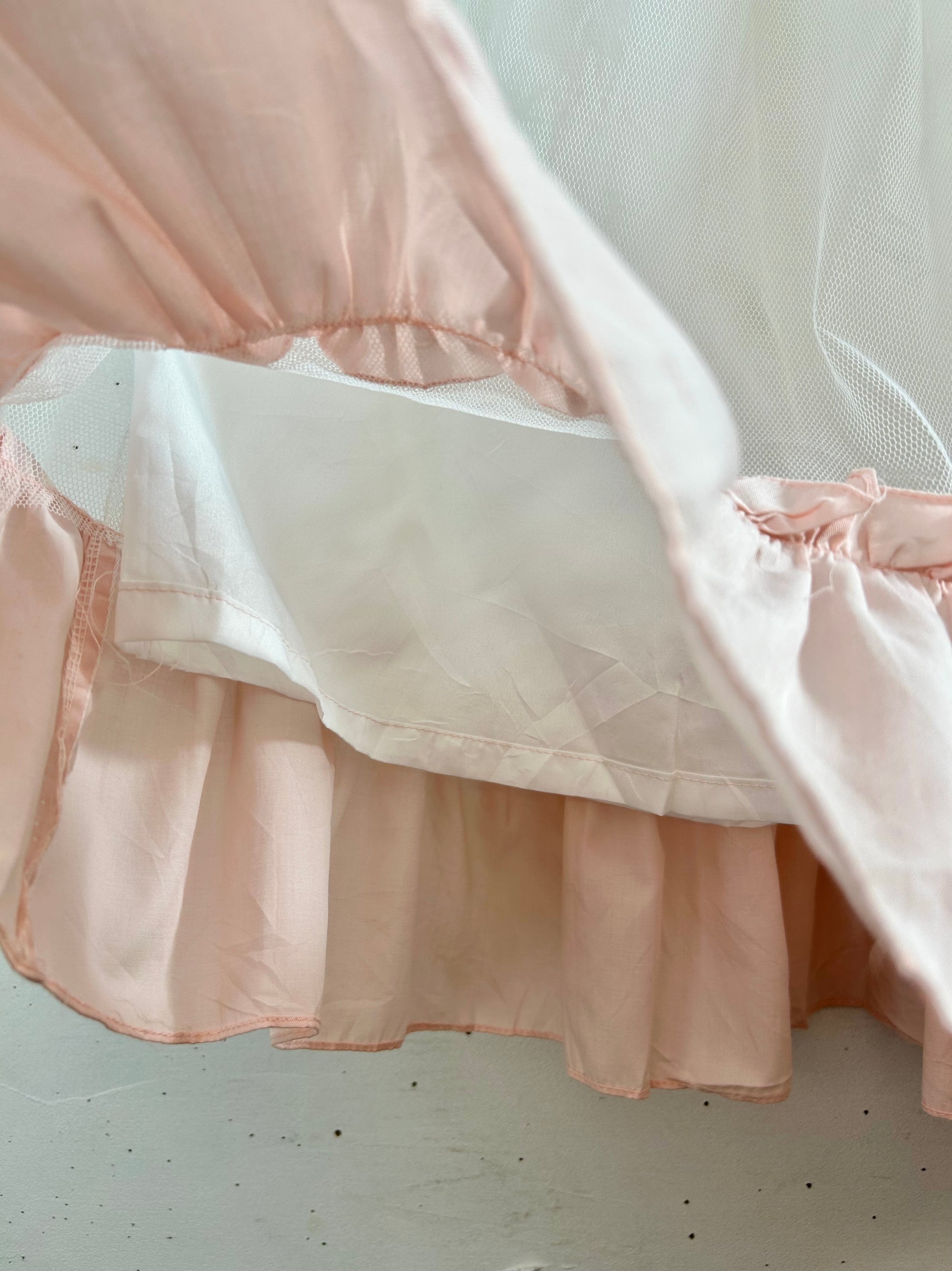 ホワイトチュールに淡いピンクの切替がガーリーな一着。