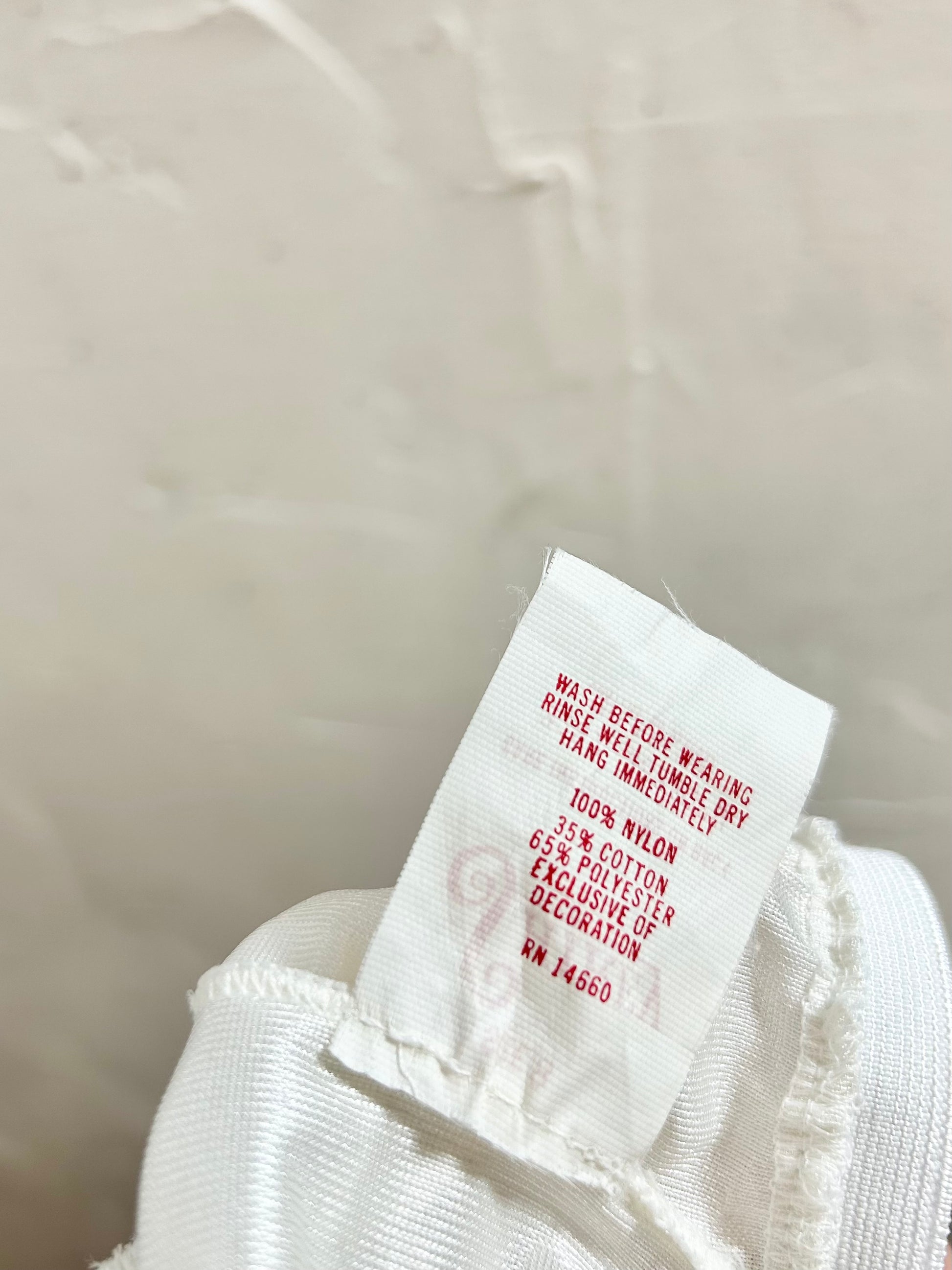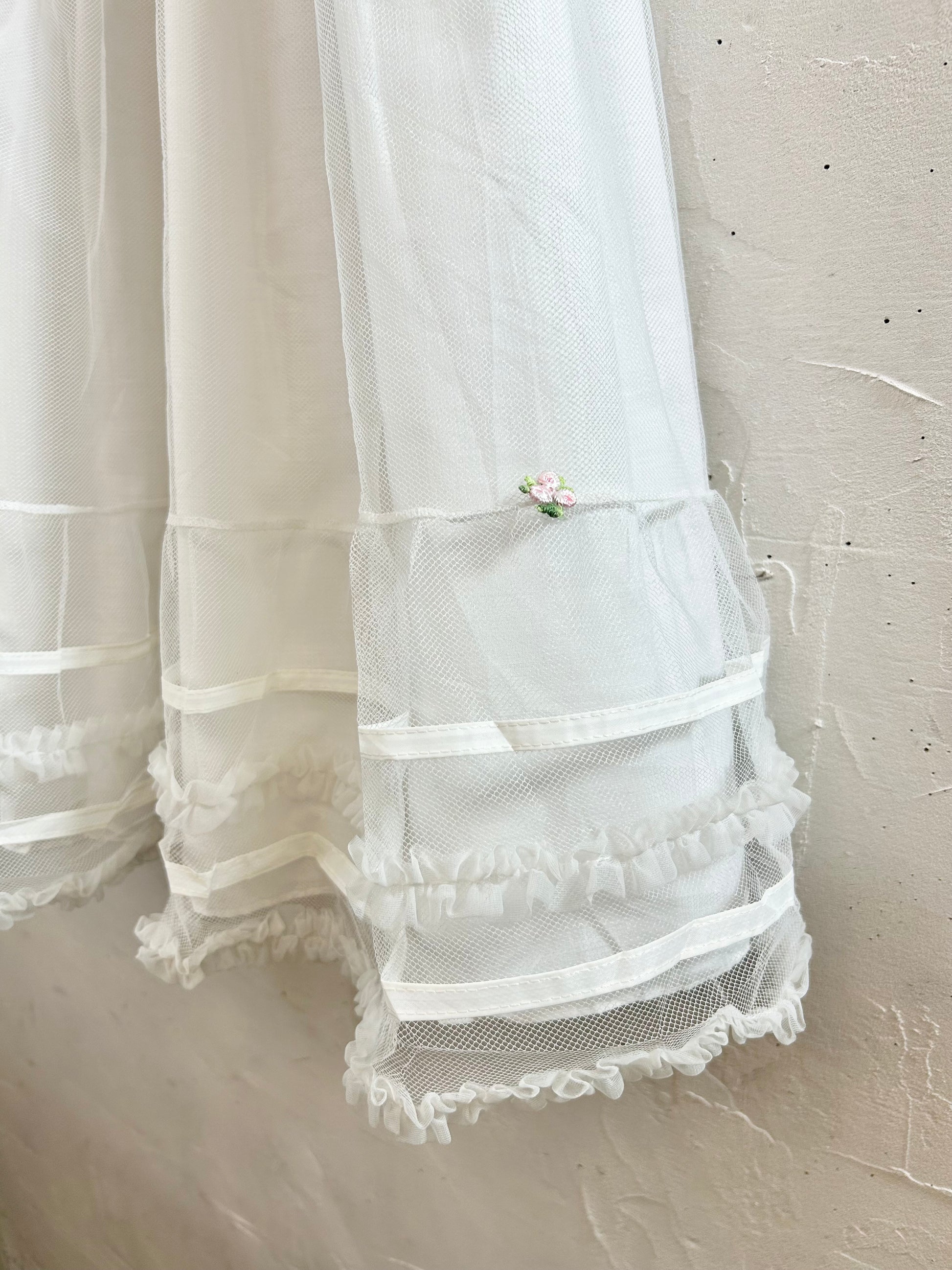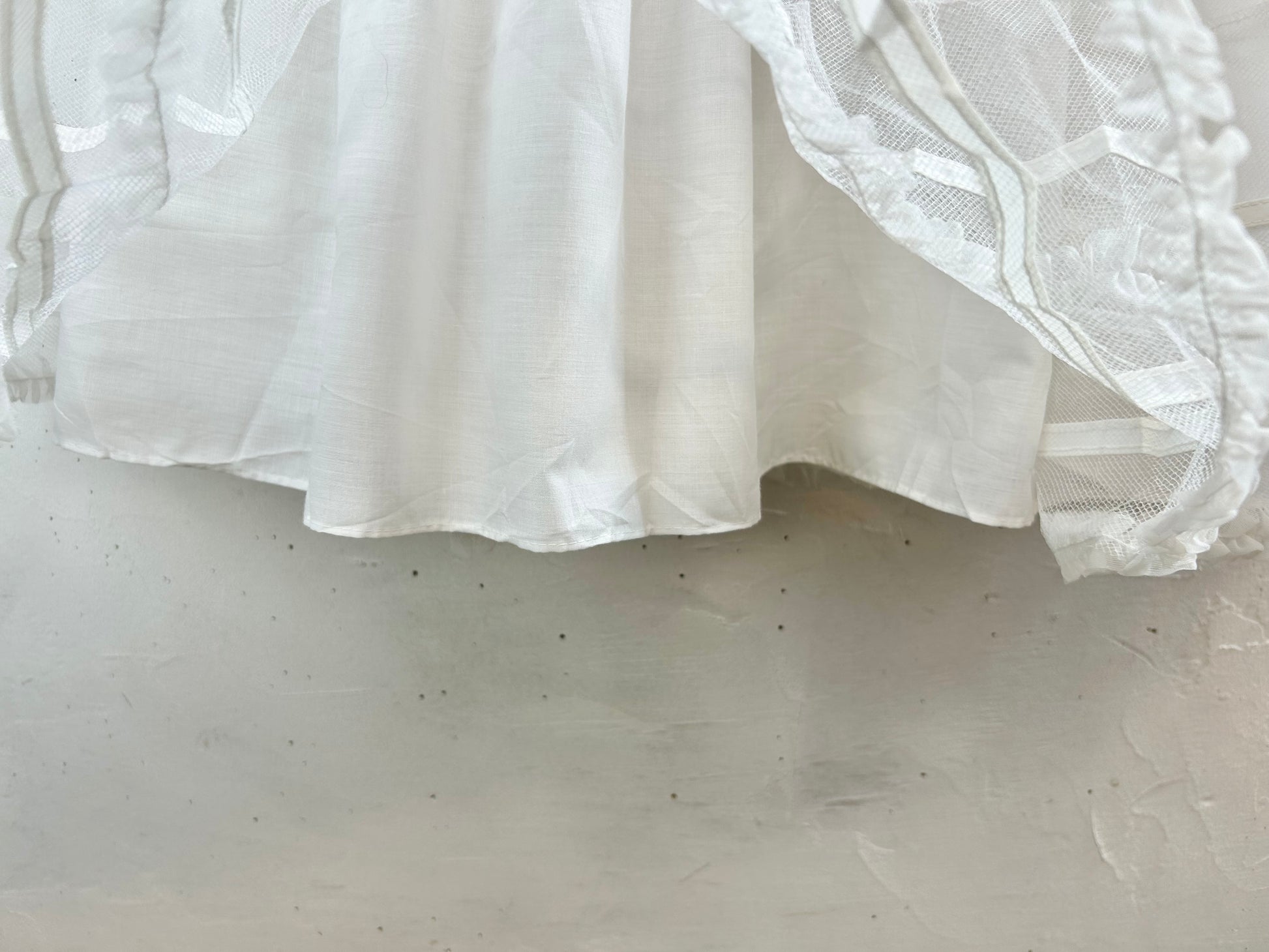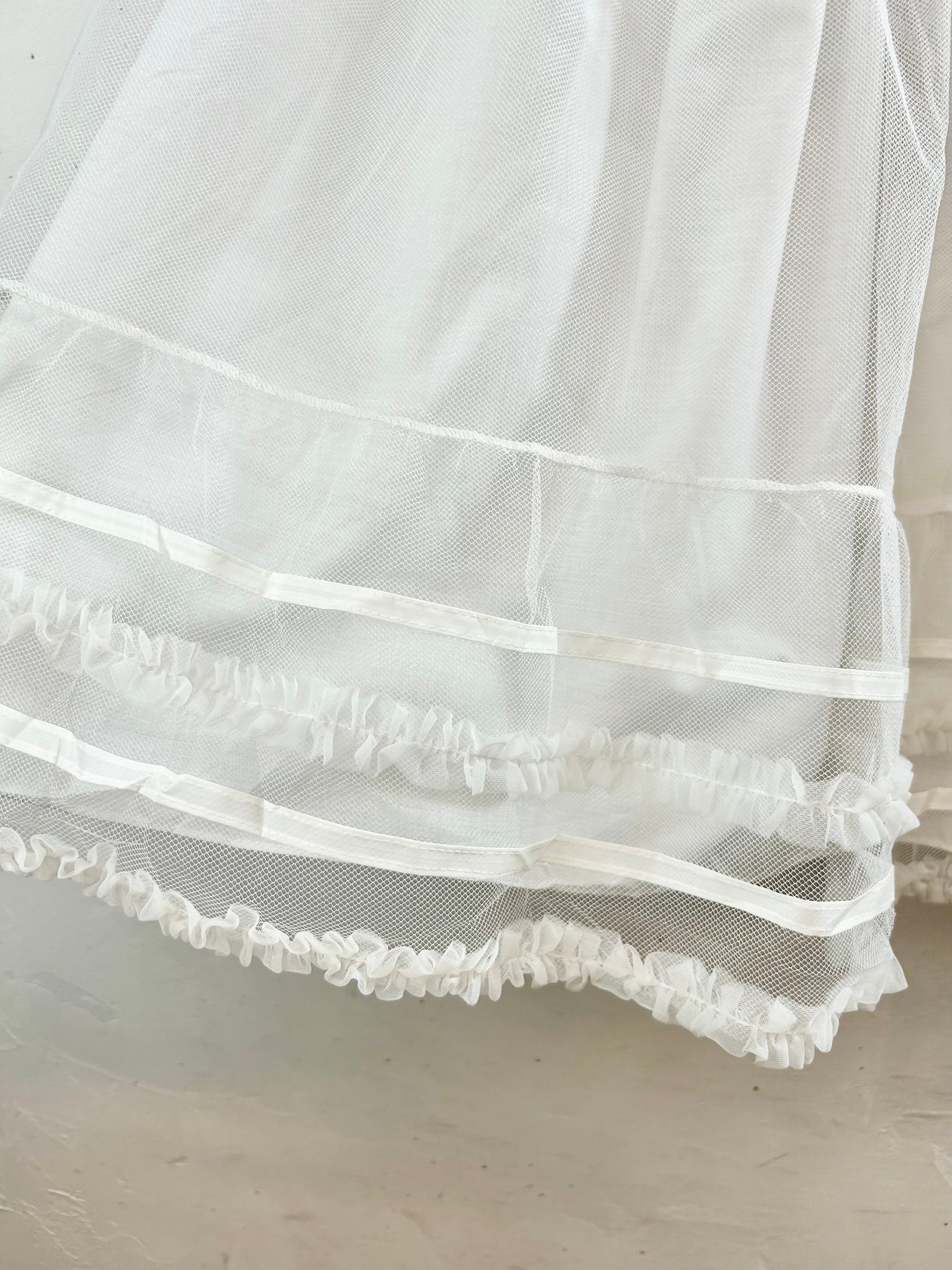 ホワイトチュールにフリルがたっぷりと施されたガーリーな一着。