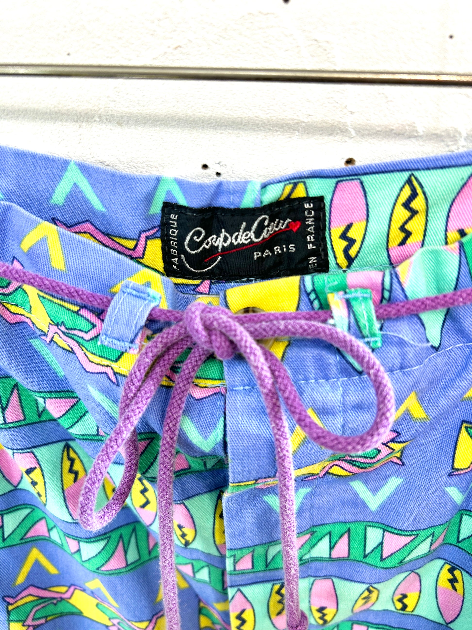 淡いラベンダーカラーに、サーフィン柄の面白いデザインの1着。