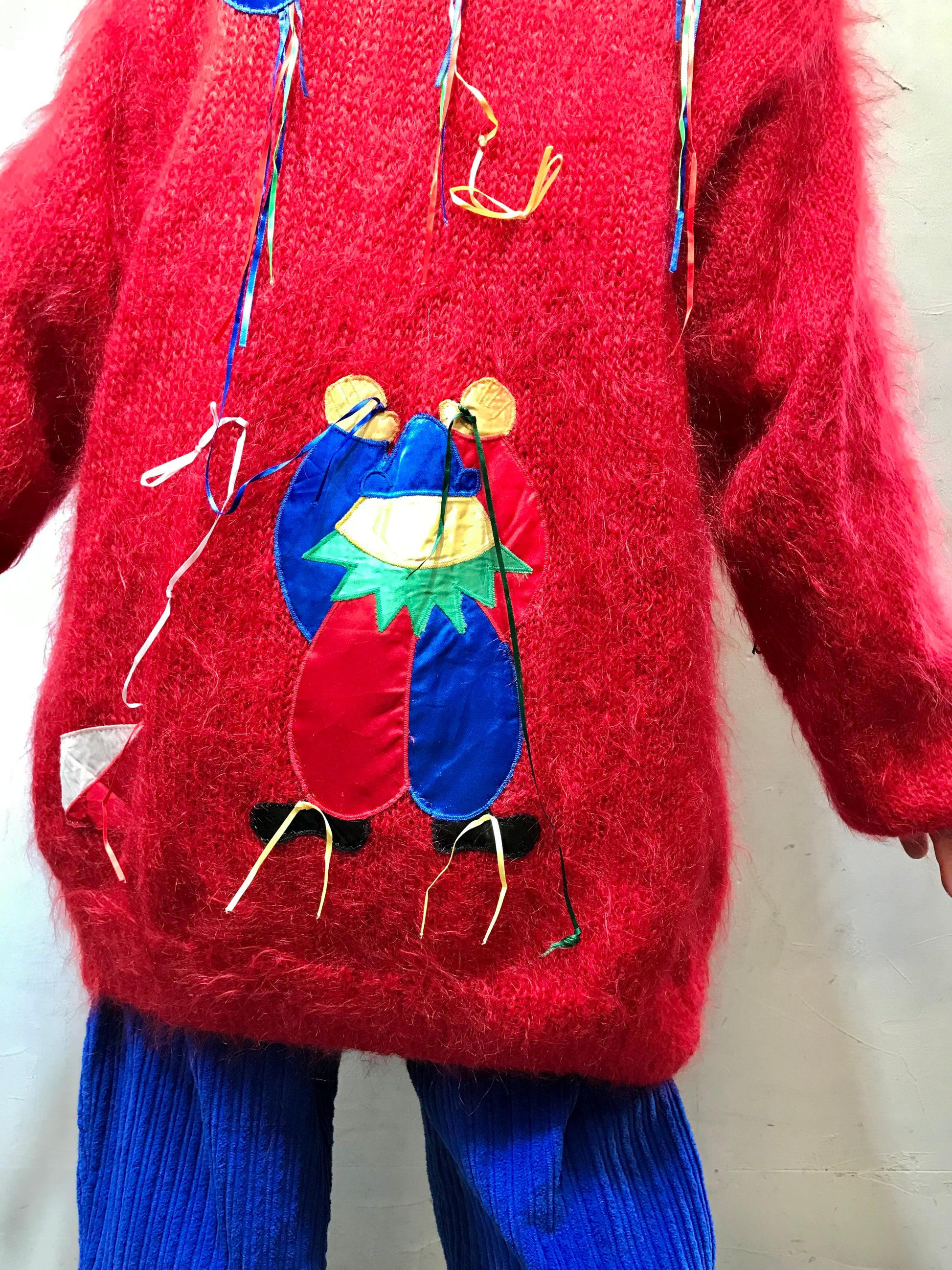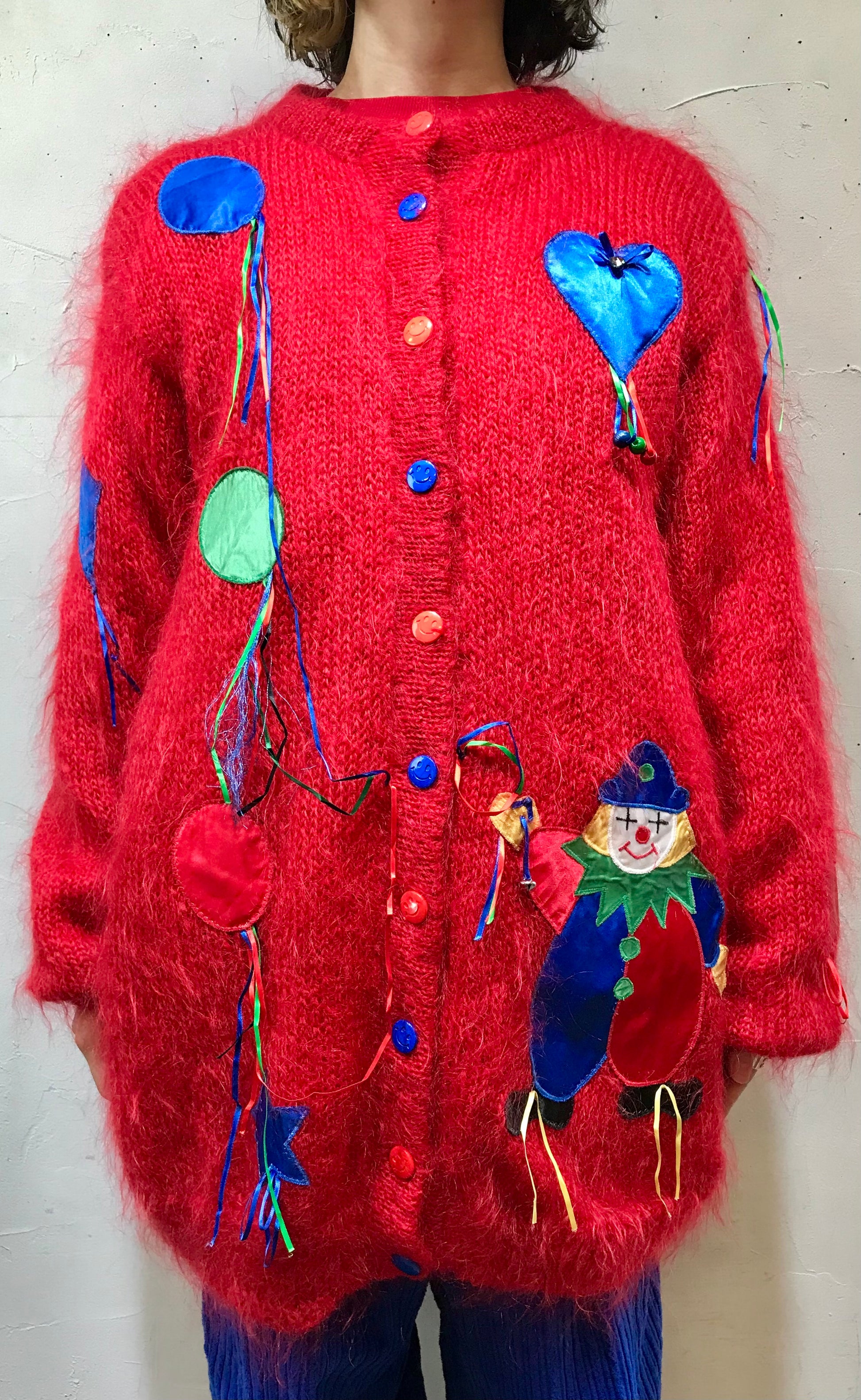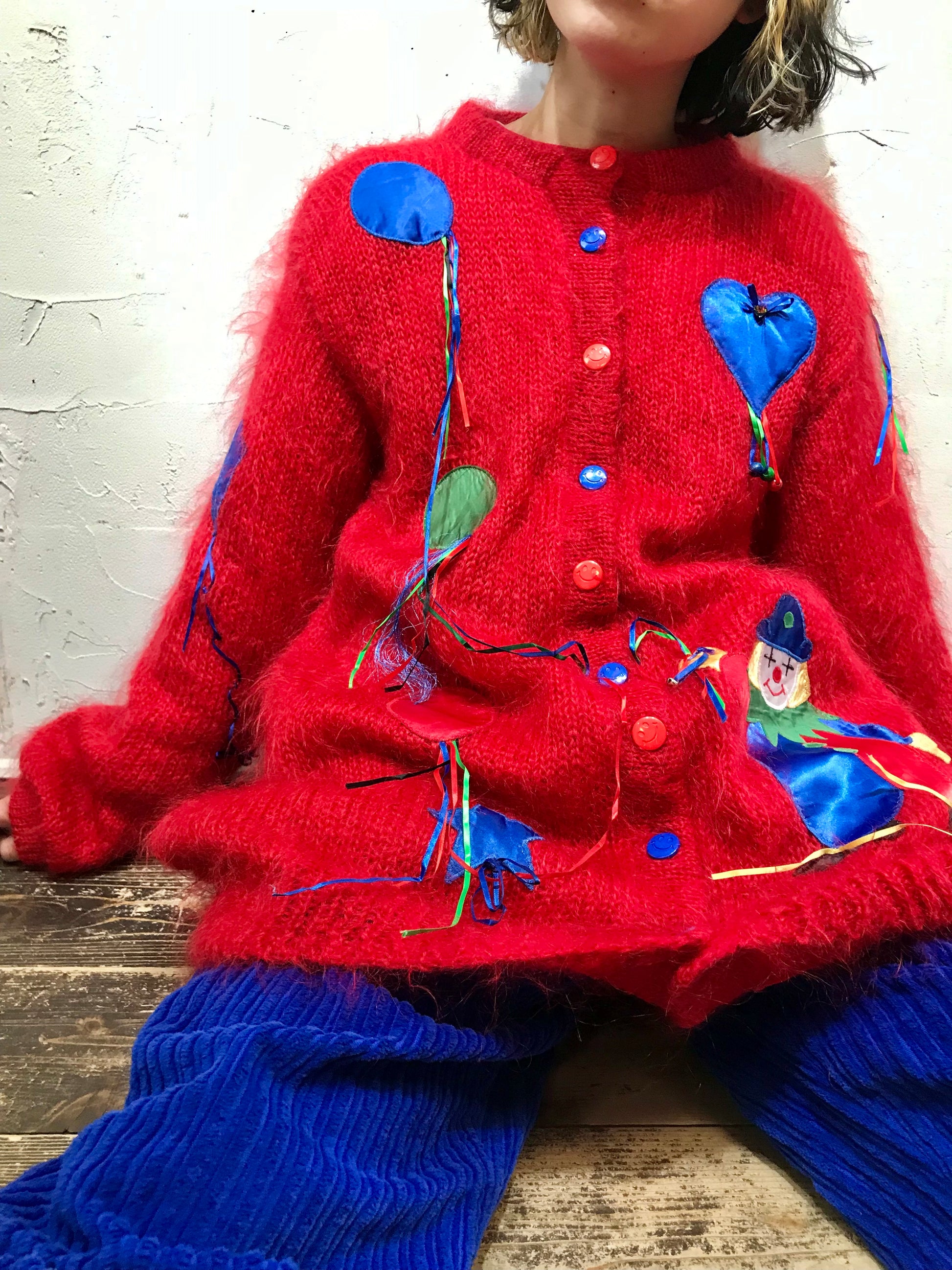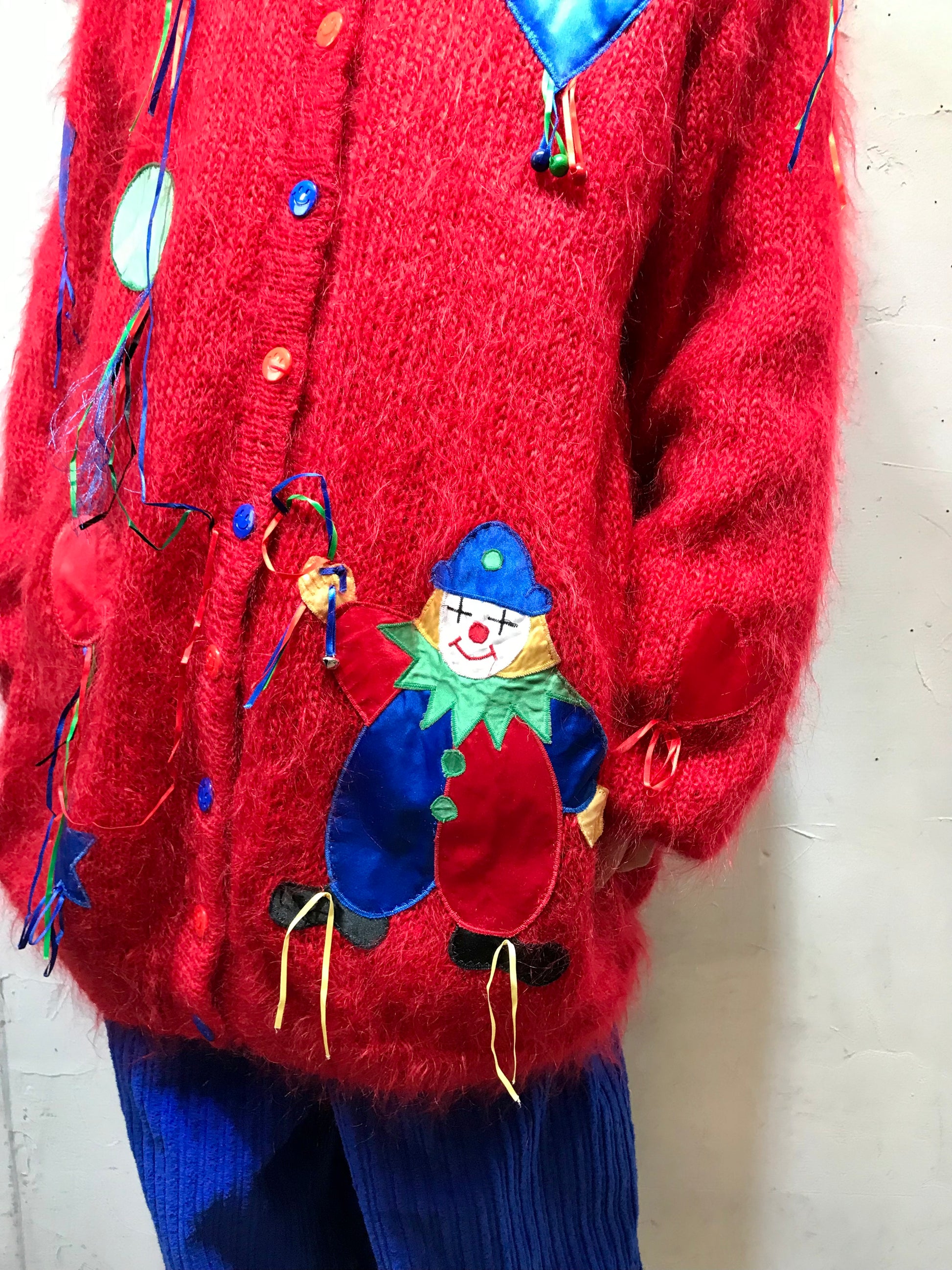 モヘアのふわふわとした毛足のボディにピエロのパッチが可愛らしい1着。