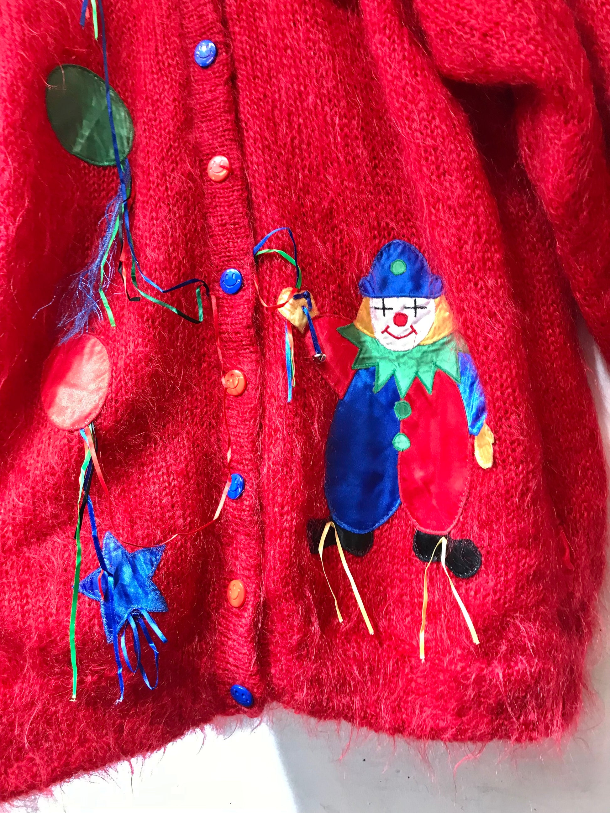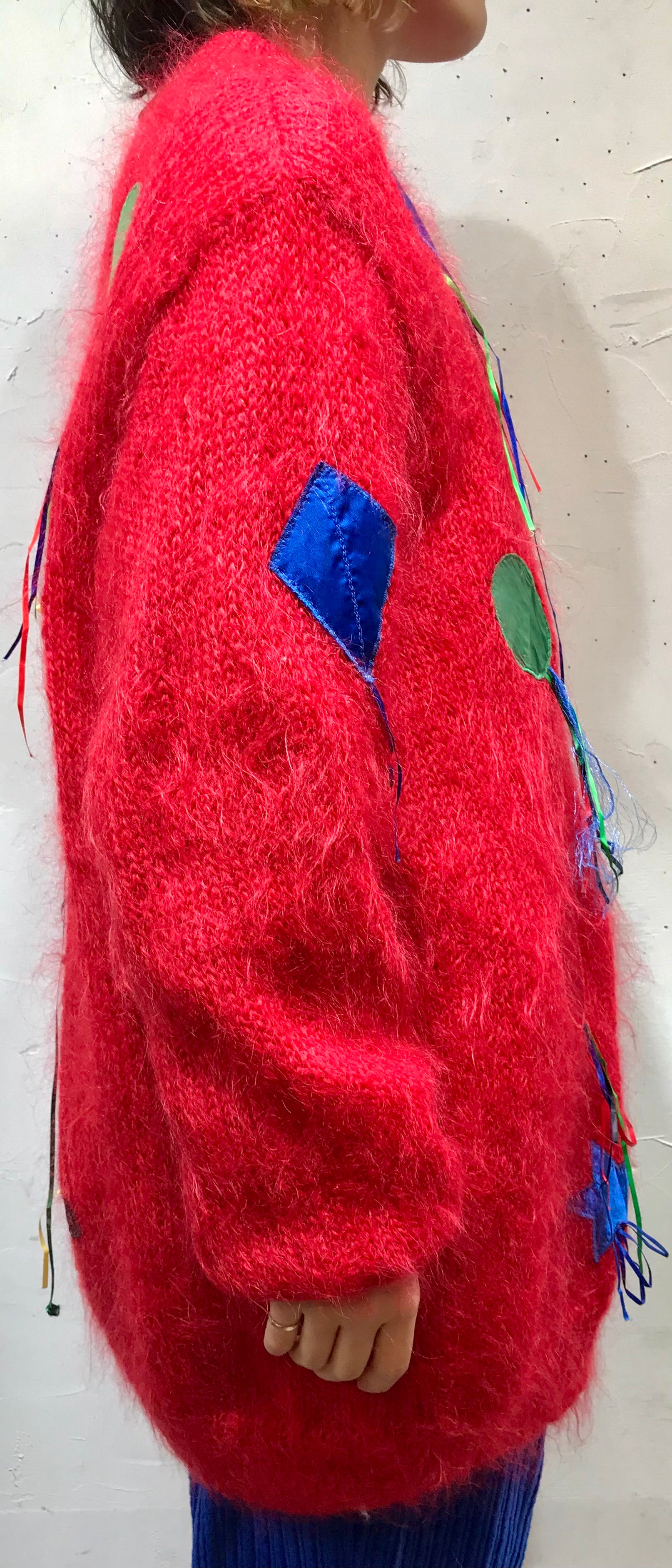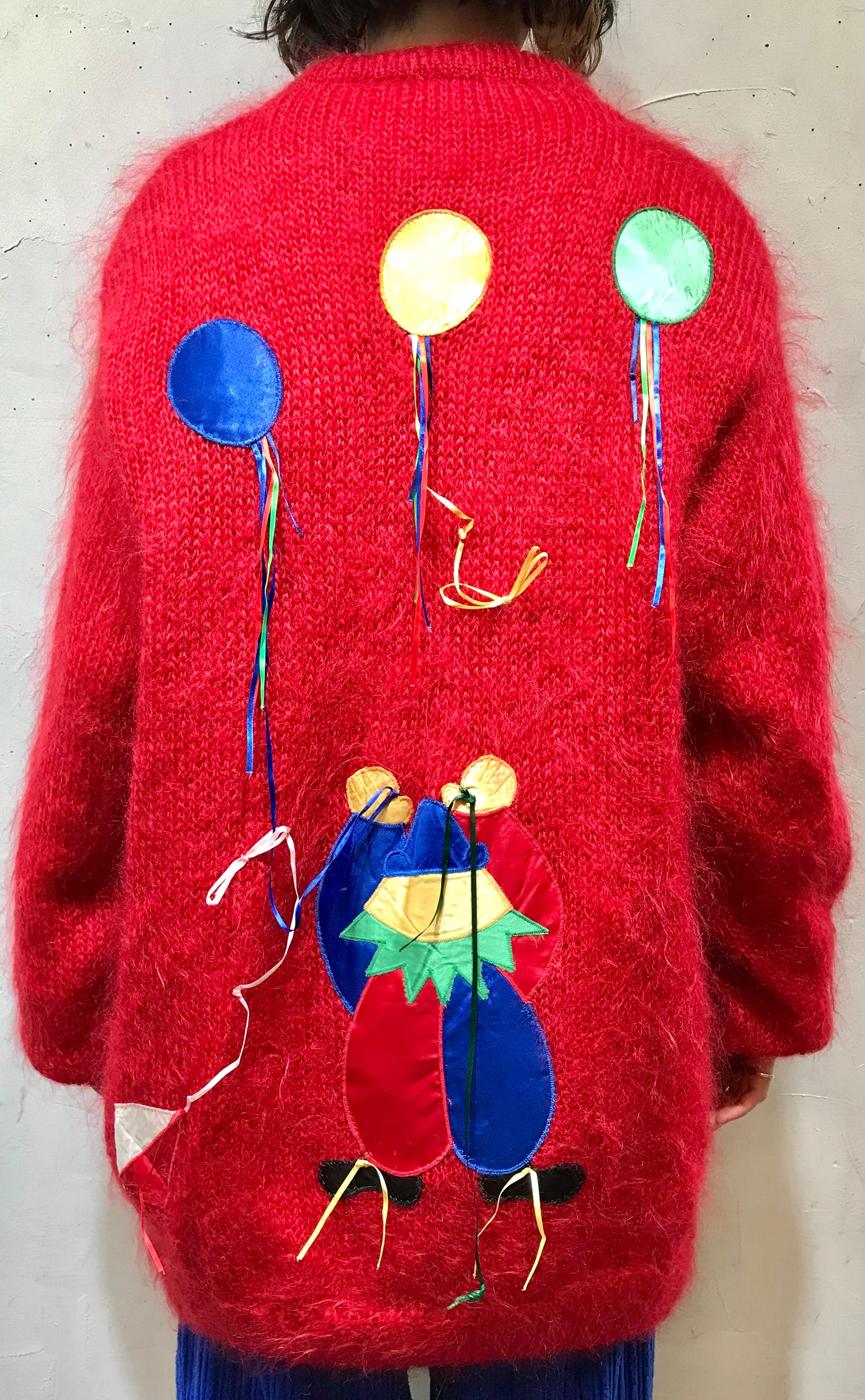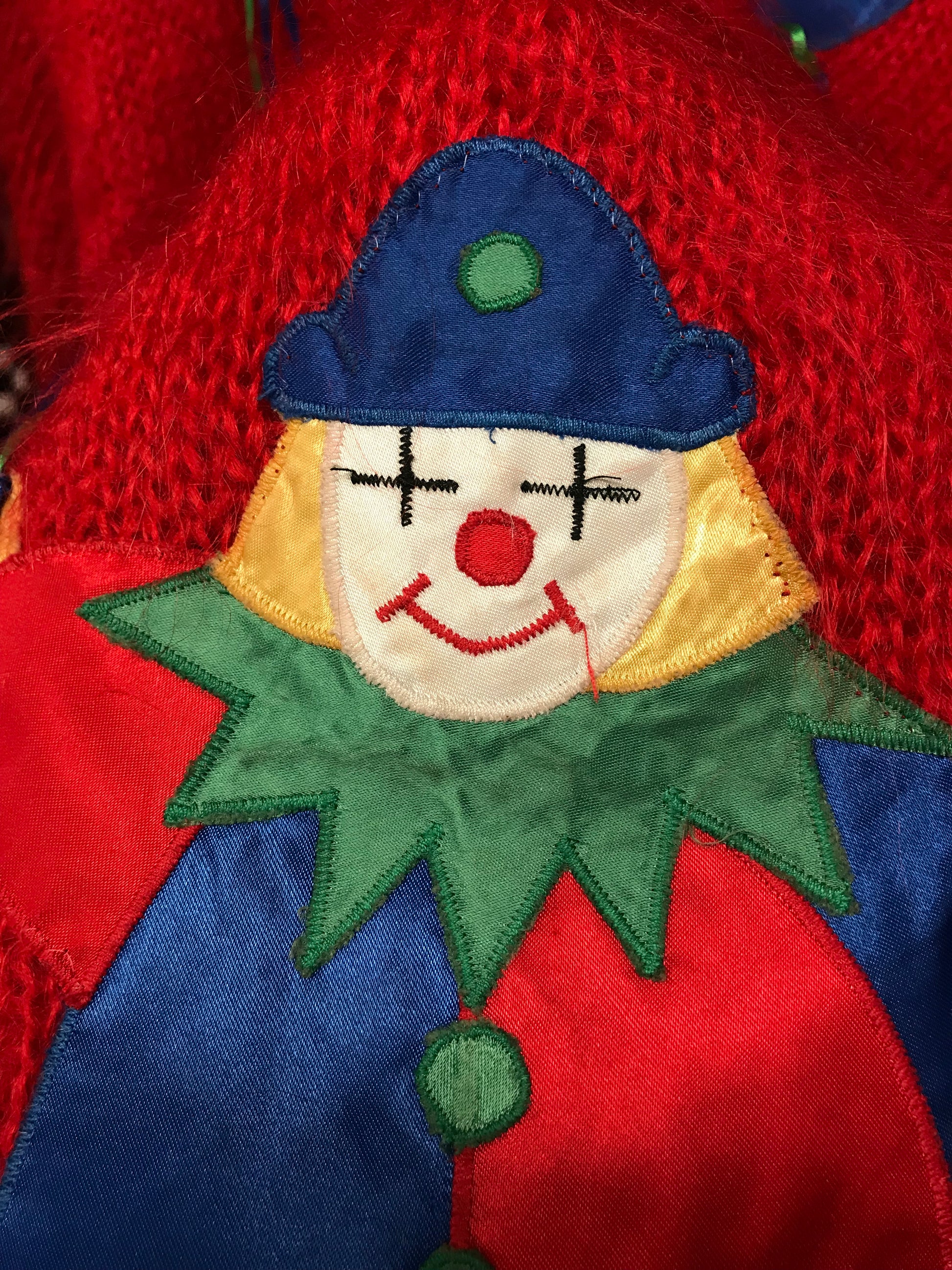モヘアのふわふわとした毛足のボディにピエロのパッチが可愛らしい1着。