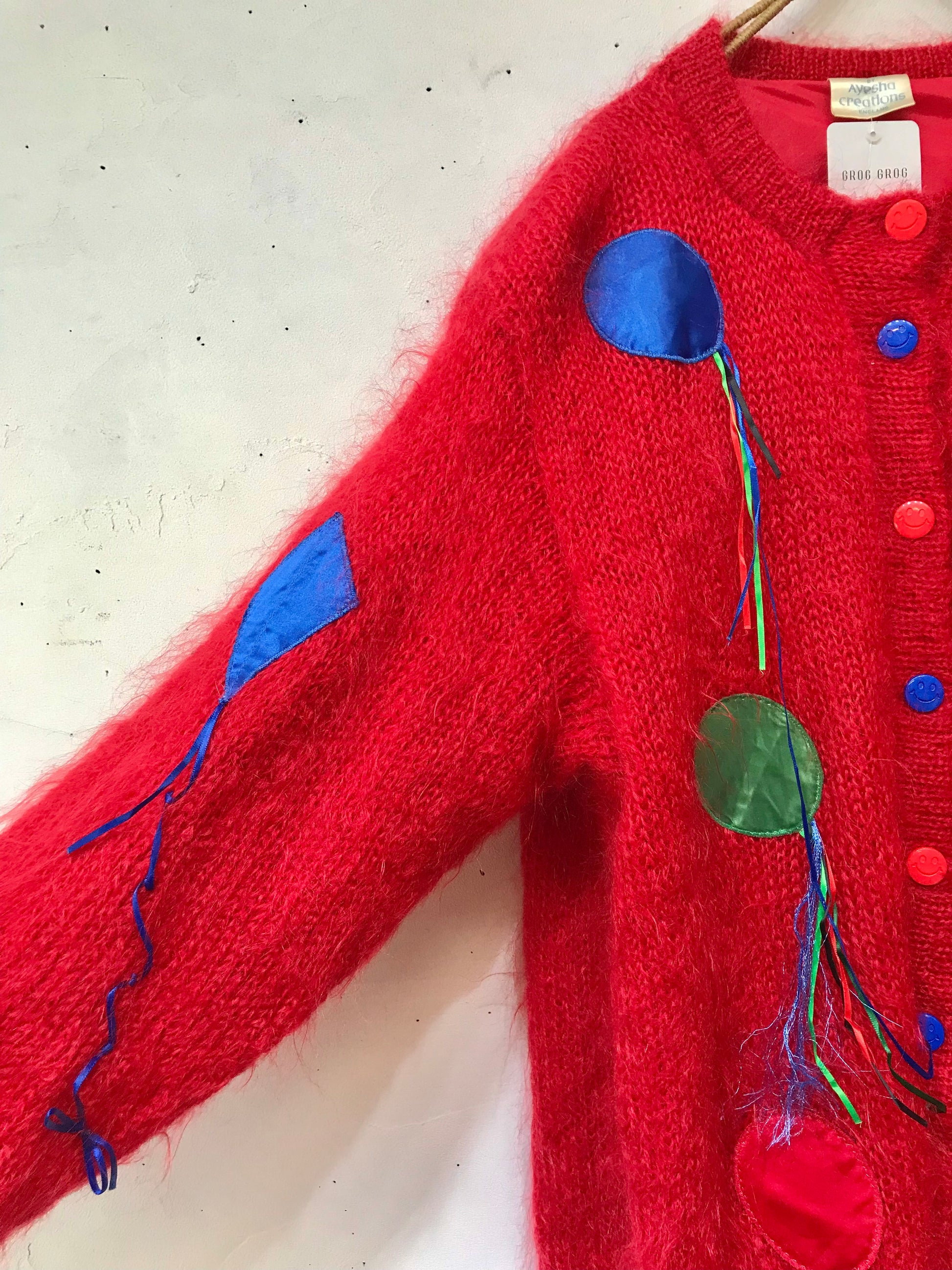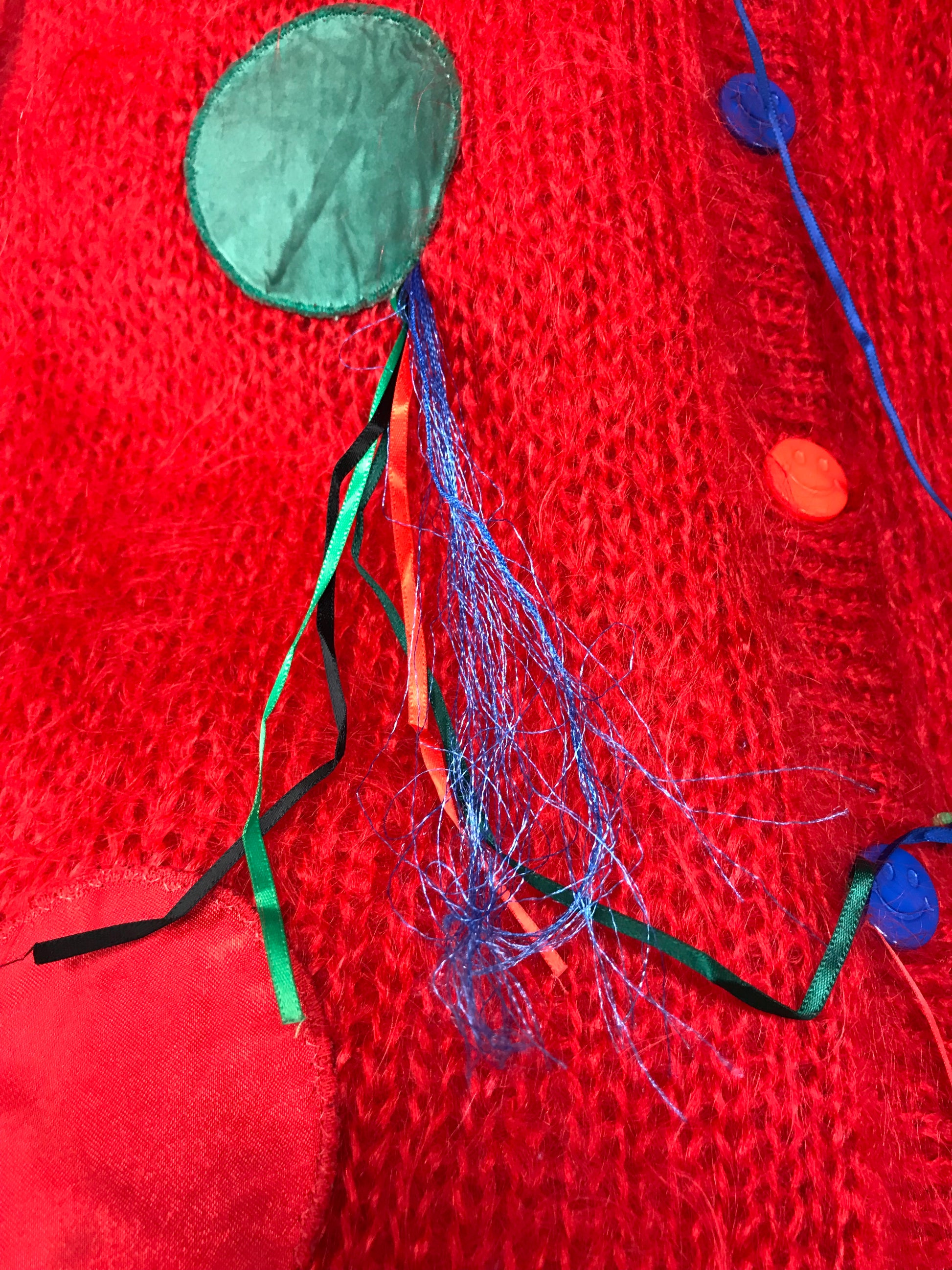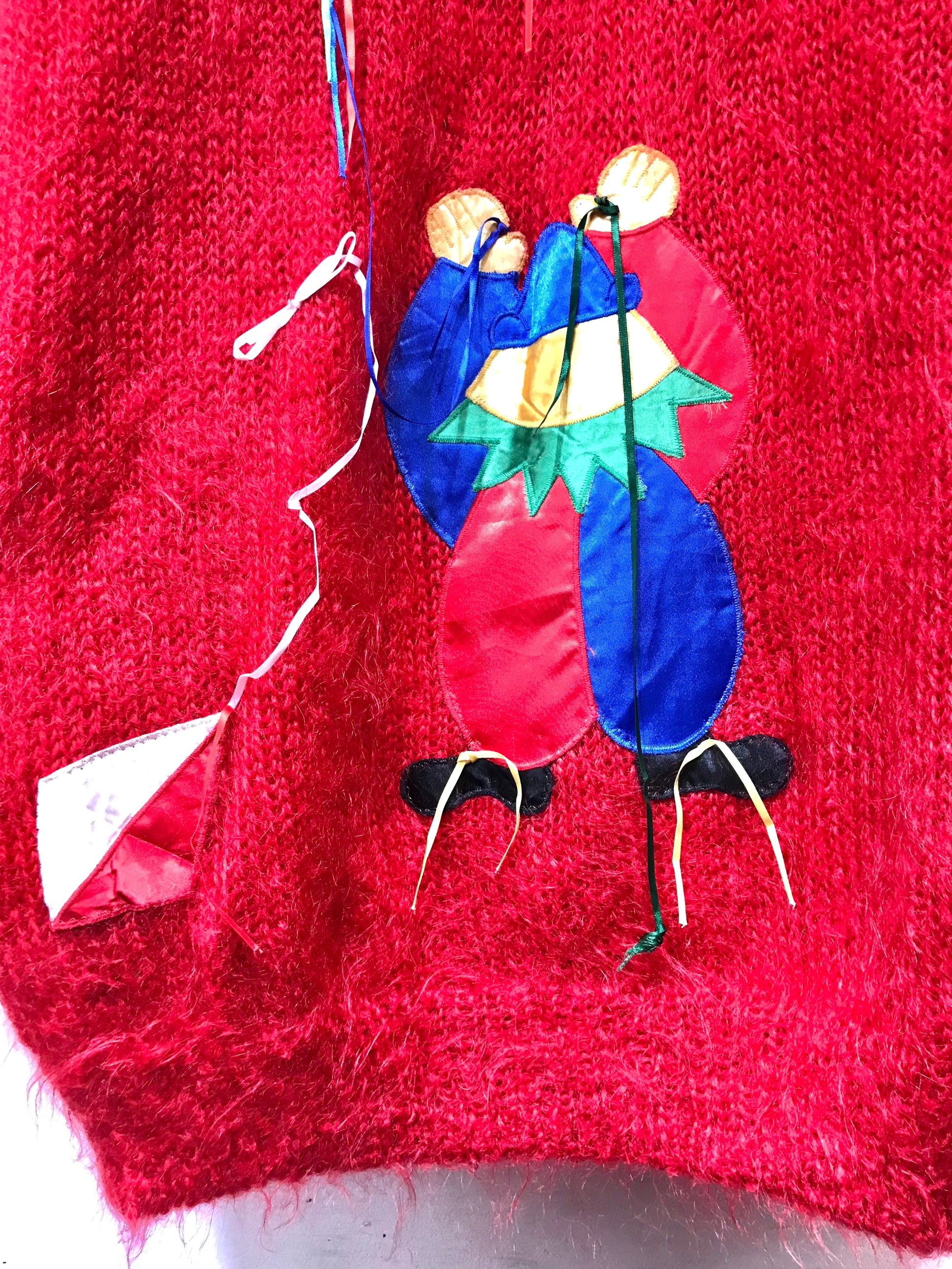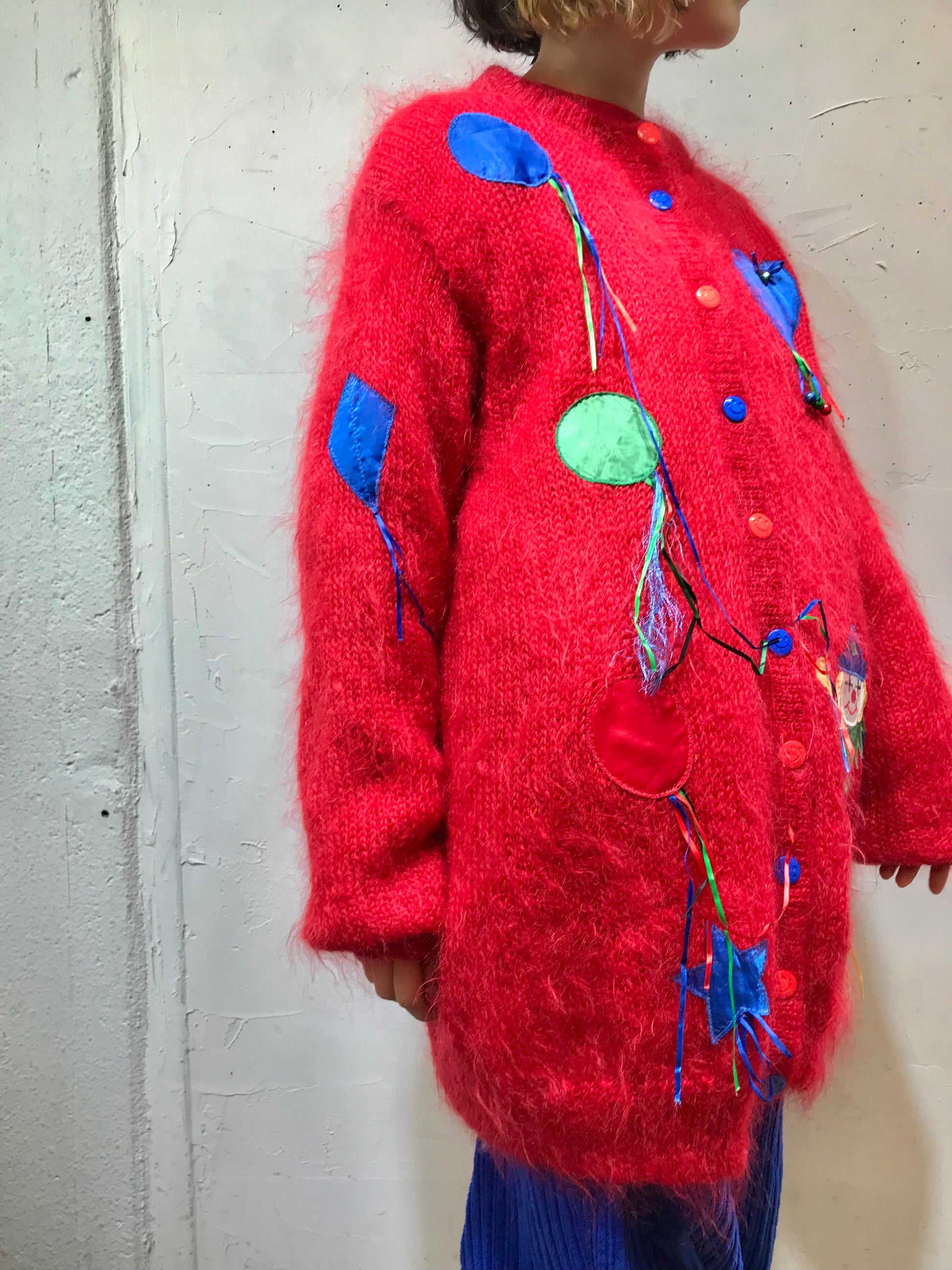 モヘアのふわふわとした毛足のボディにピエロのパッチが可愛らしい1着。