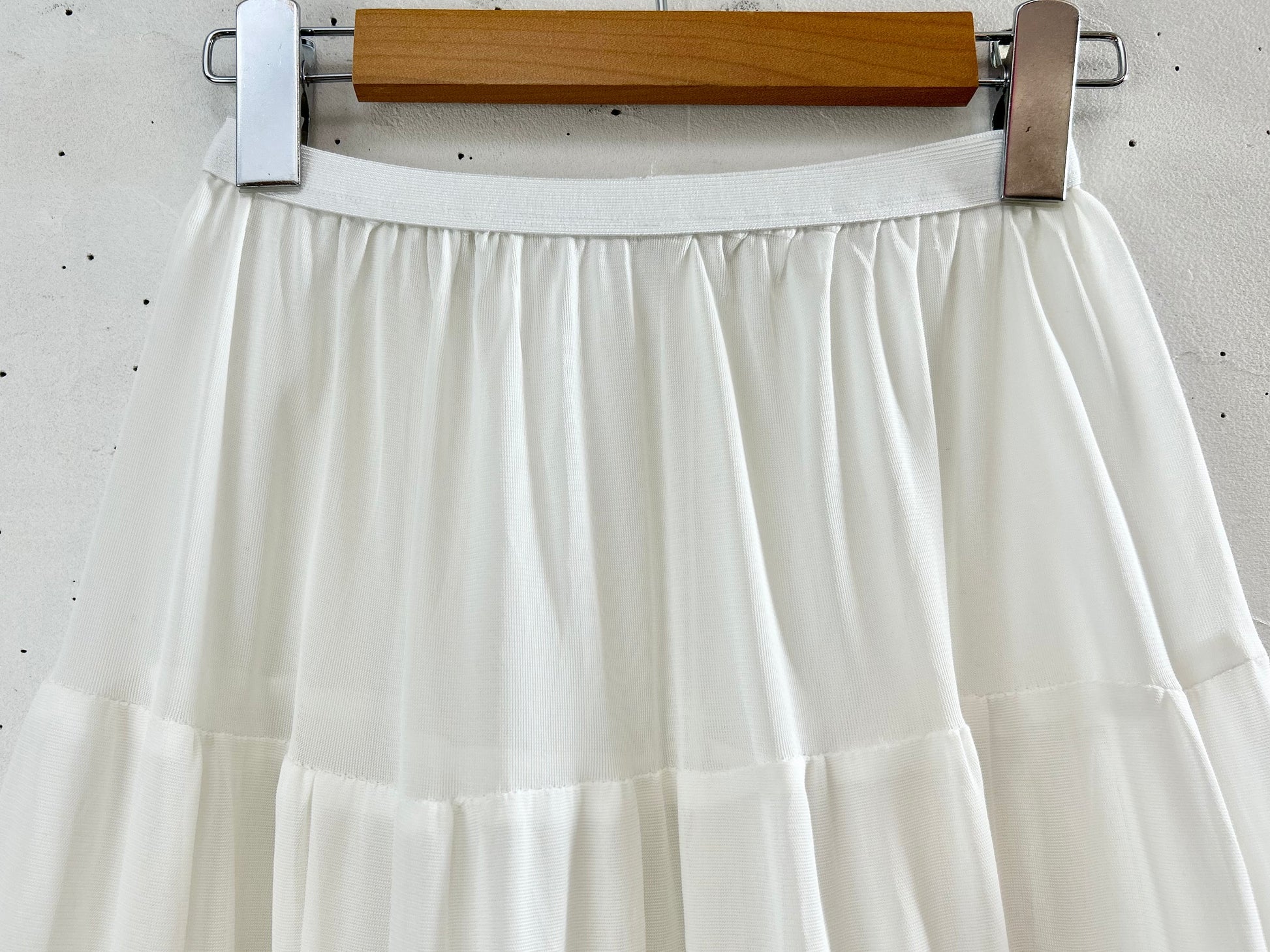 1番下の段だけハリのある生地を使用しているので、綺麗なシルエットでご着用頂けます。