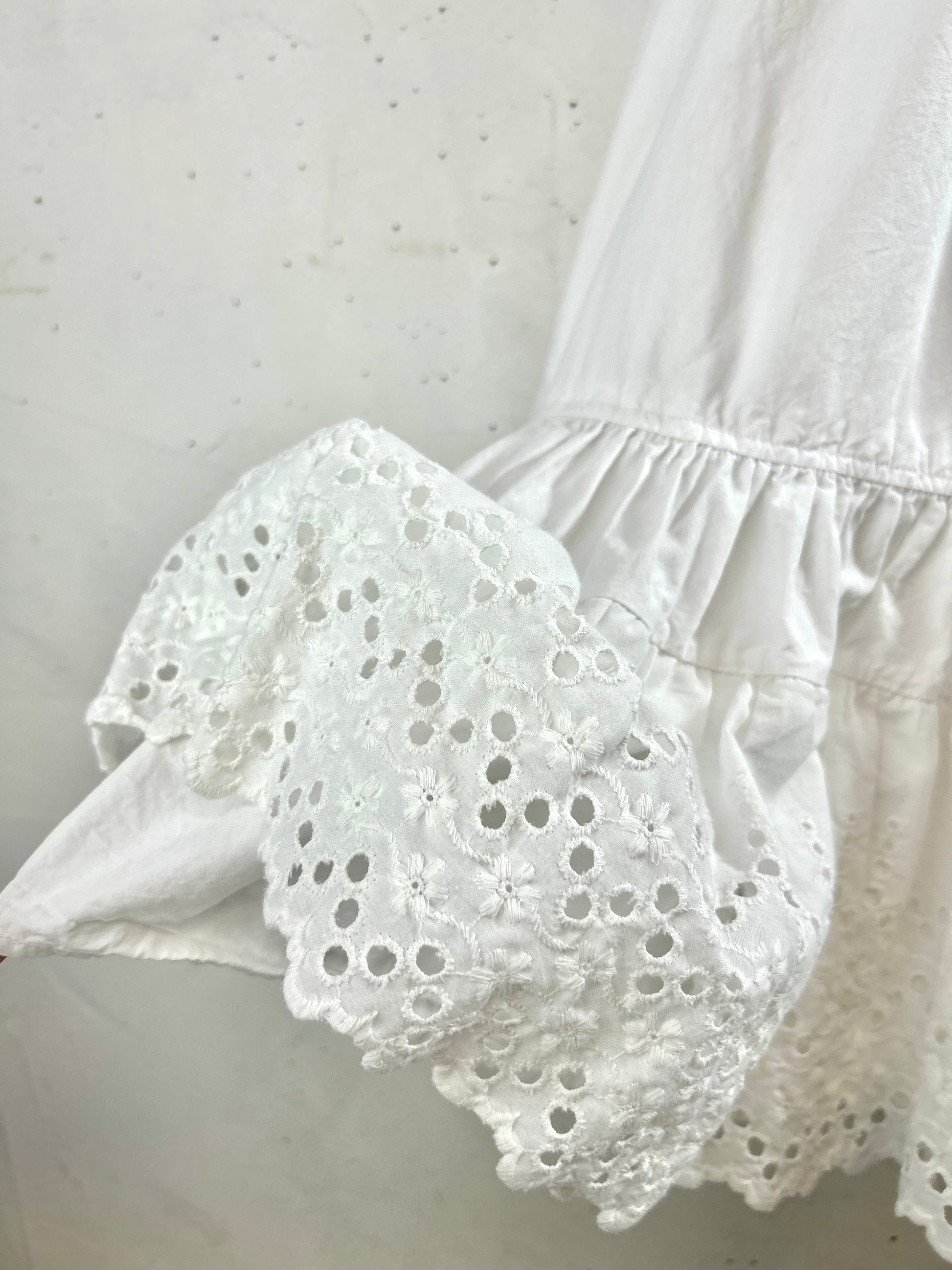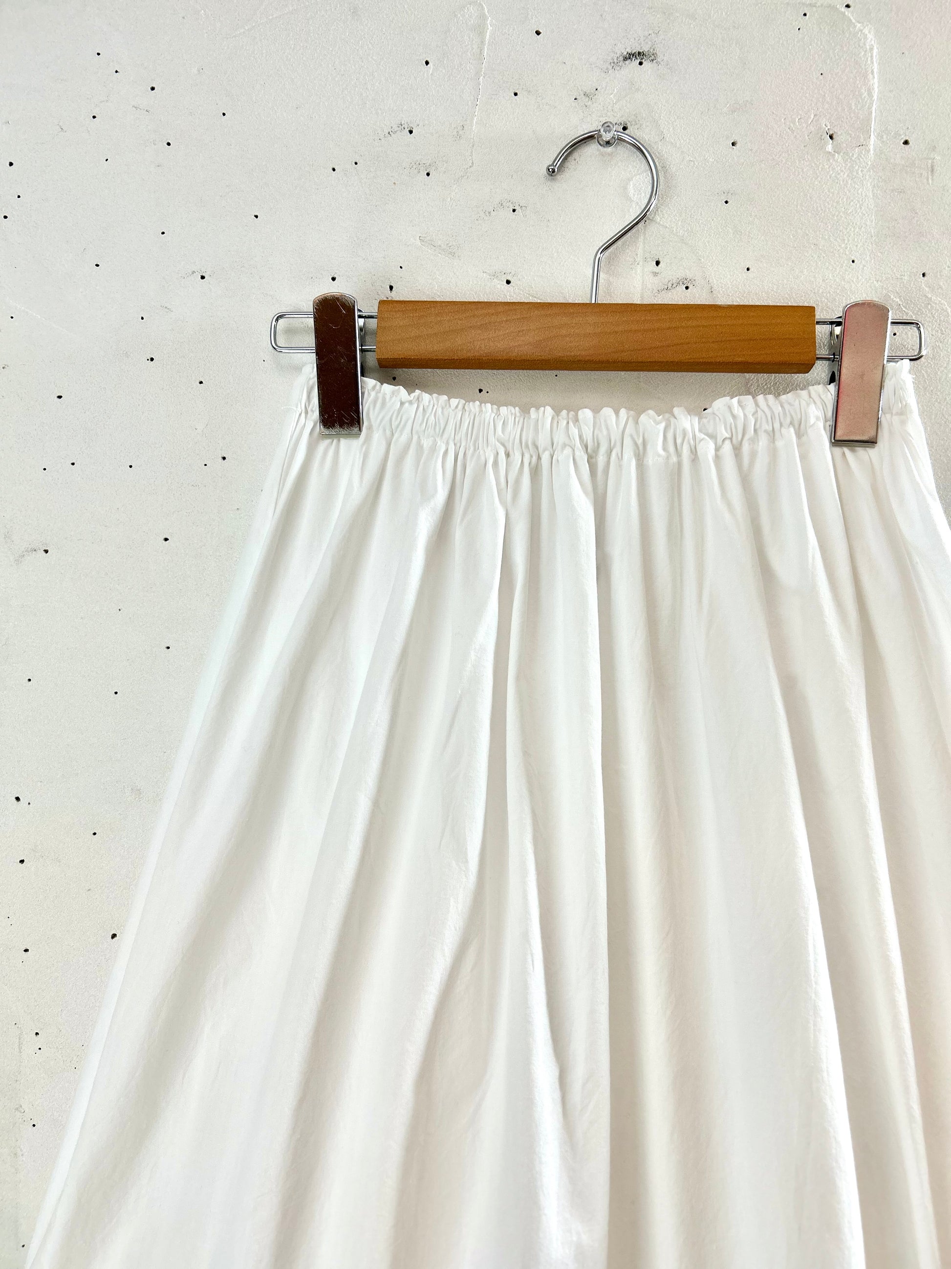 裾にボリュームを施したデザインですので、ウエストから広がる綺麗なシルエットでご着用頂け、裾にはカットワーク刺繍が施されていて、裾を見せてのコーディネートなどいろいろな楽しみ方をして頂けます。