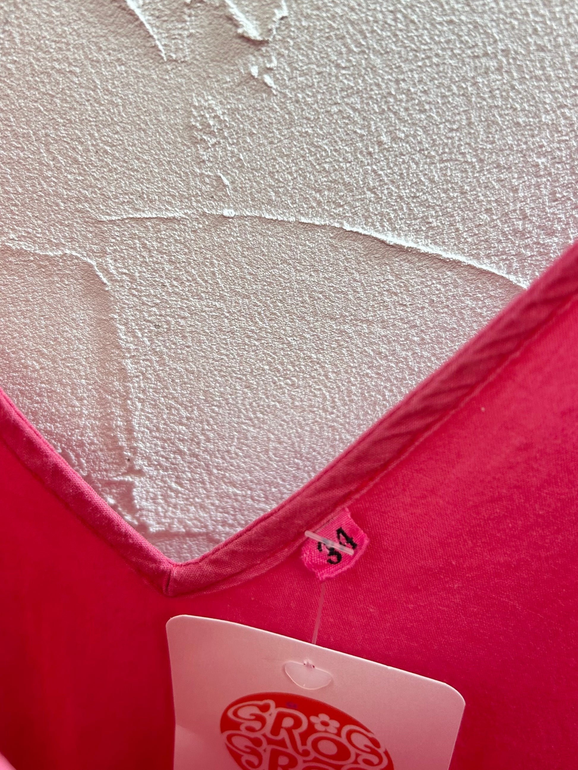 後染めの濃いめのピンクで、ムラ感が雰囲気抜群な1着。