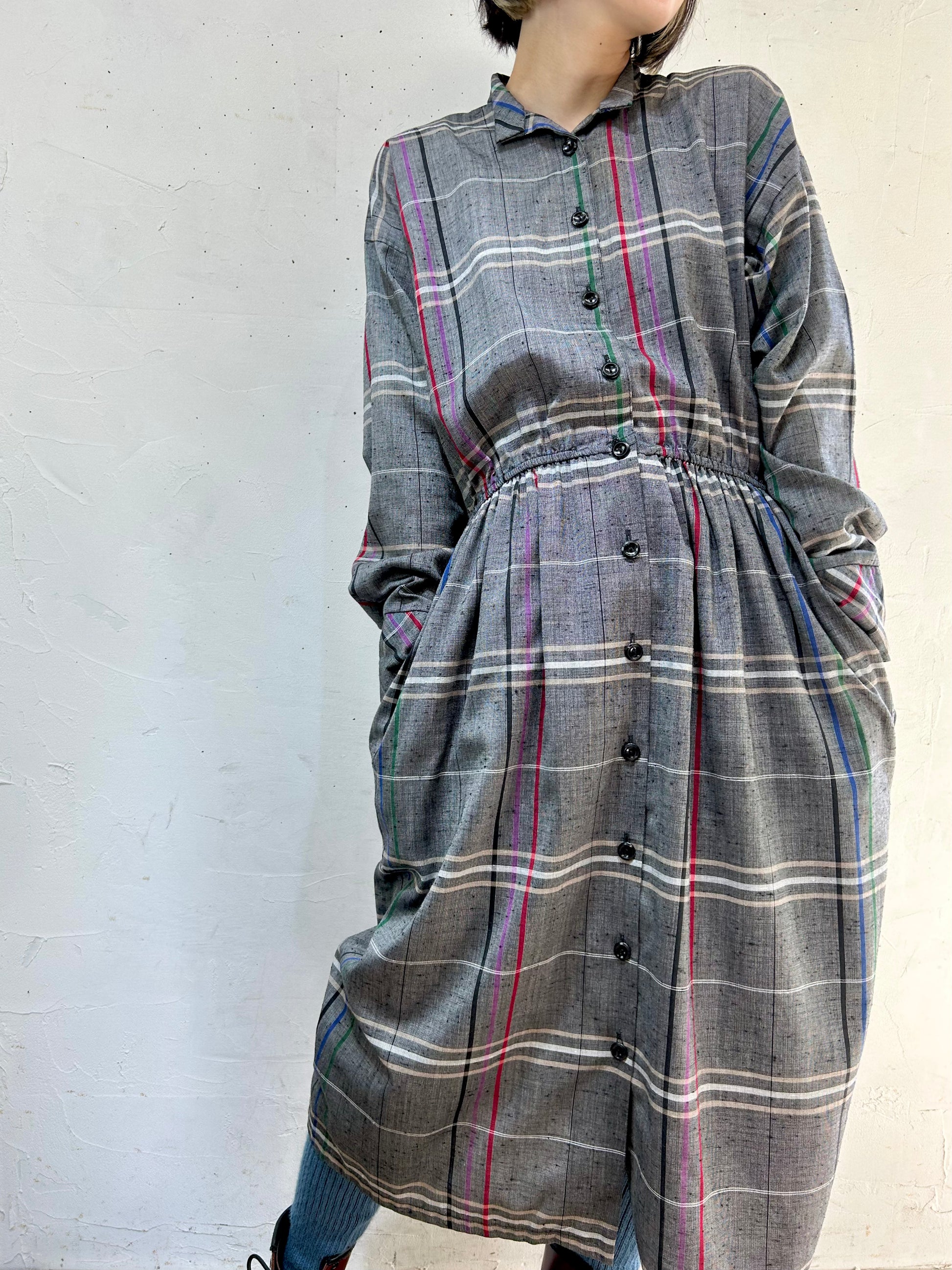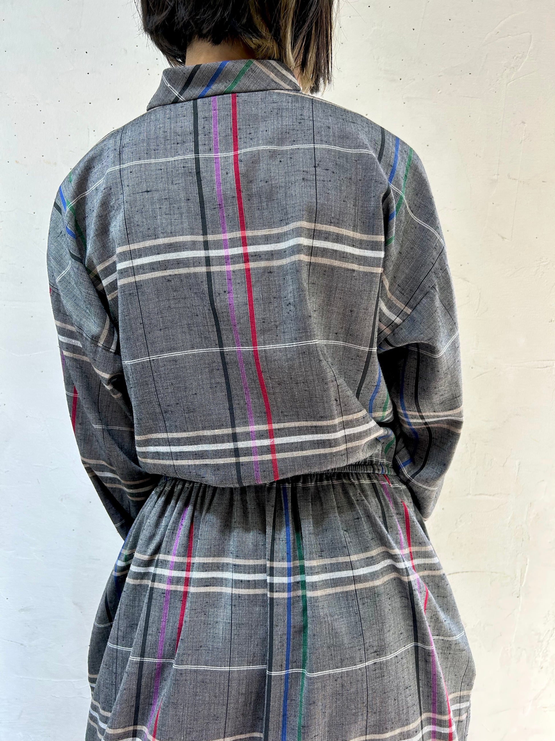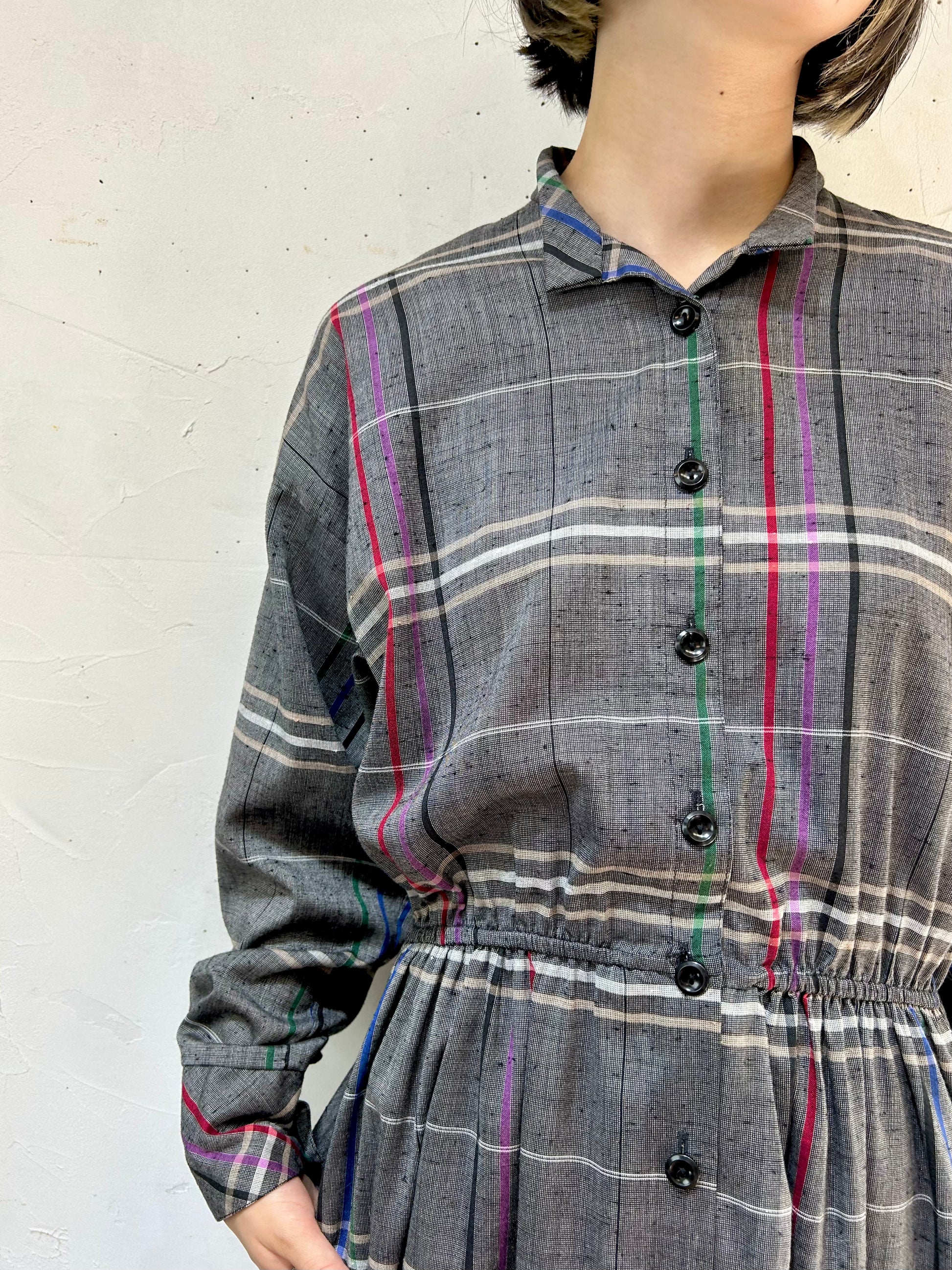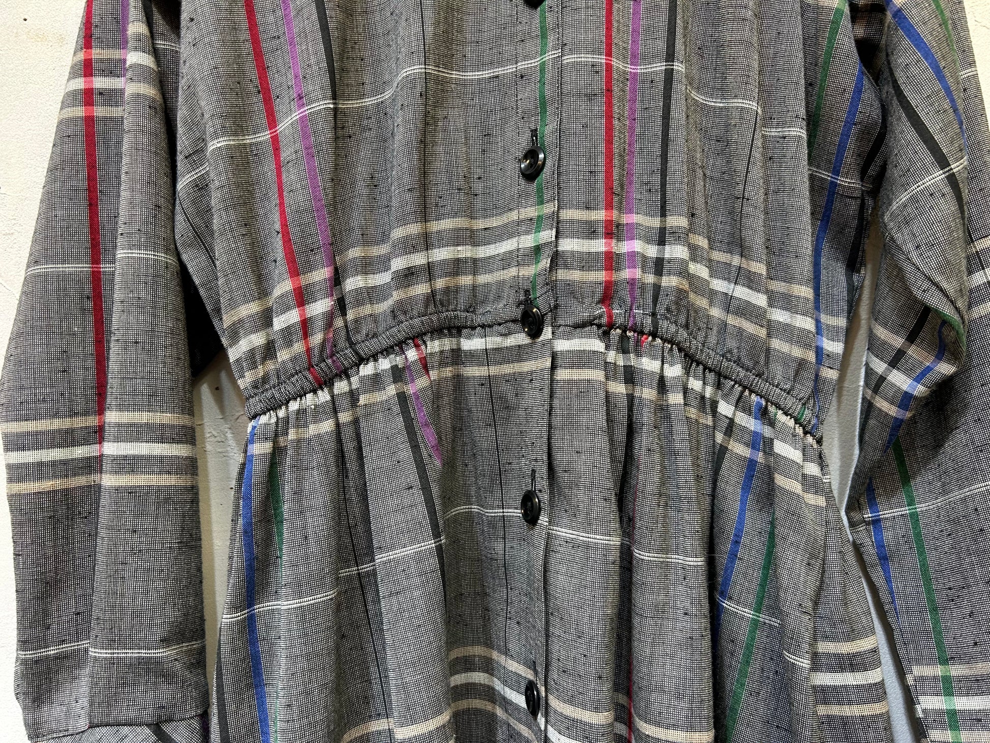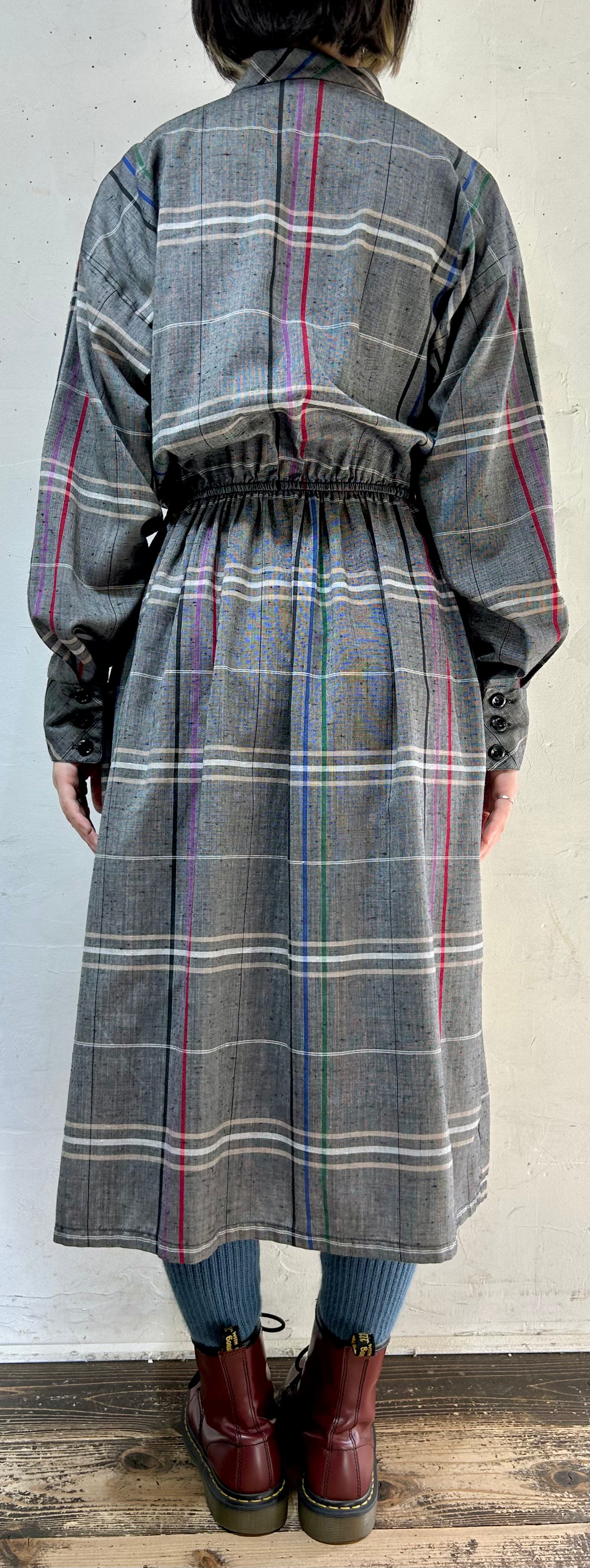 グレーを基調としたチェックボディにカラフルなラインがアクセントになった一着。