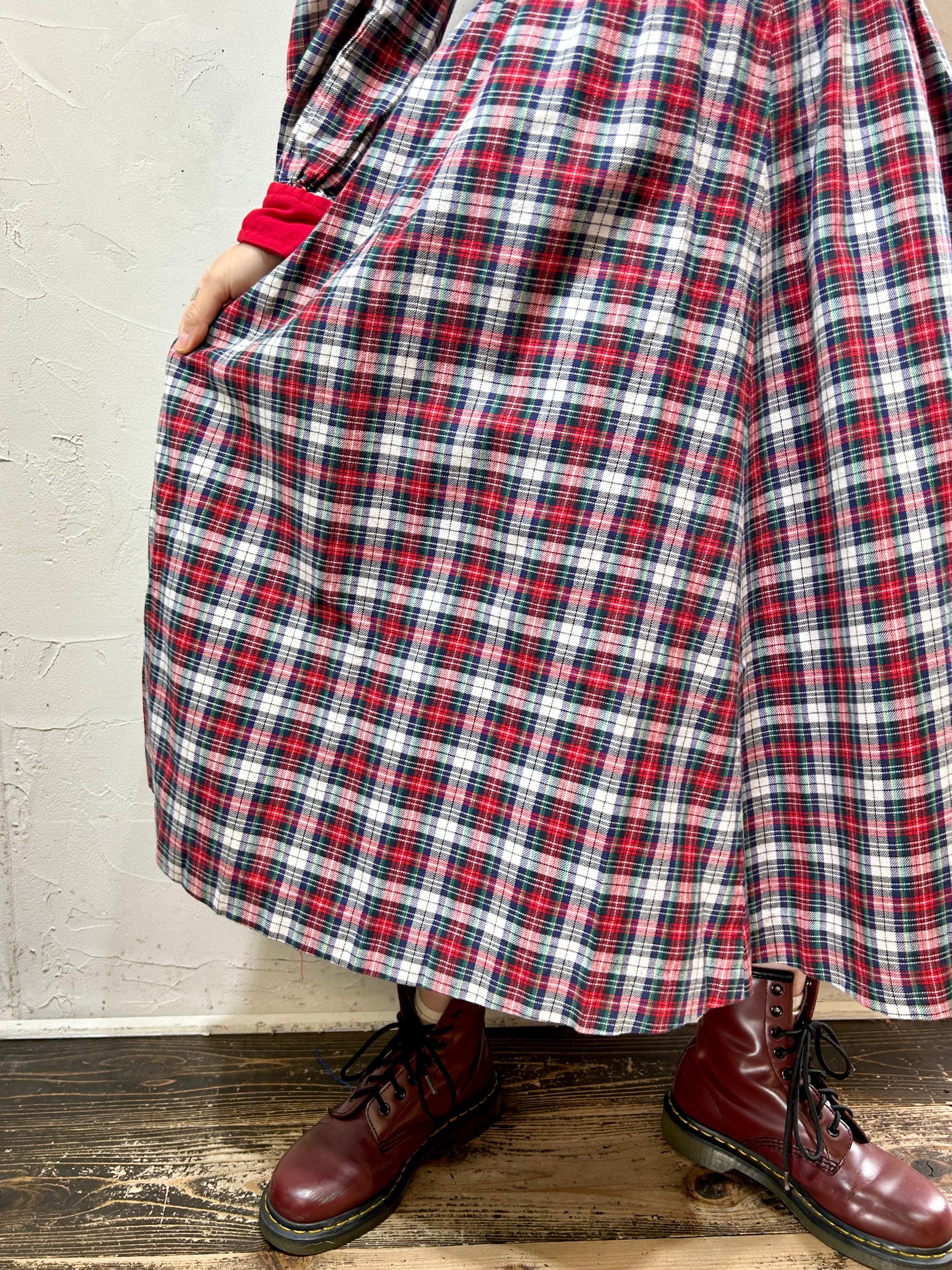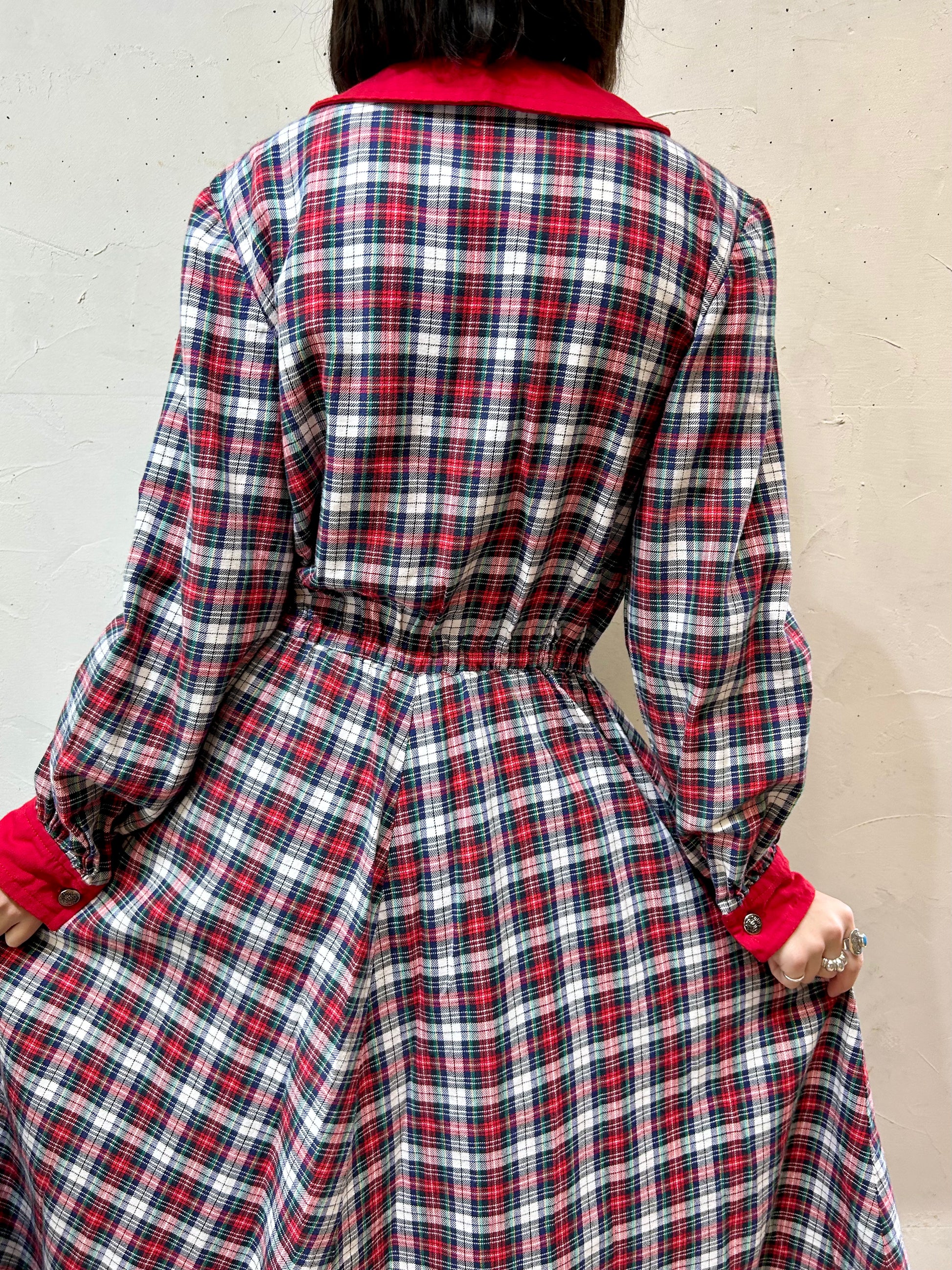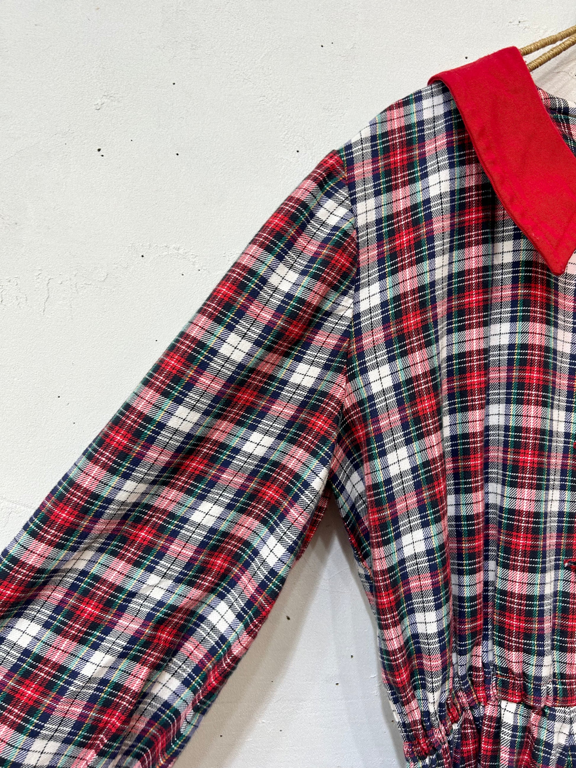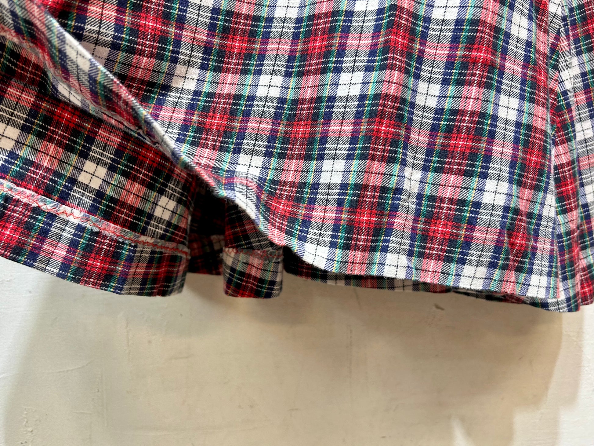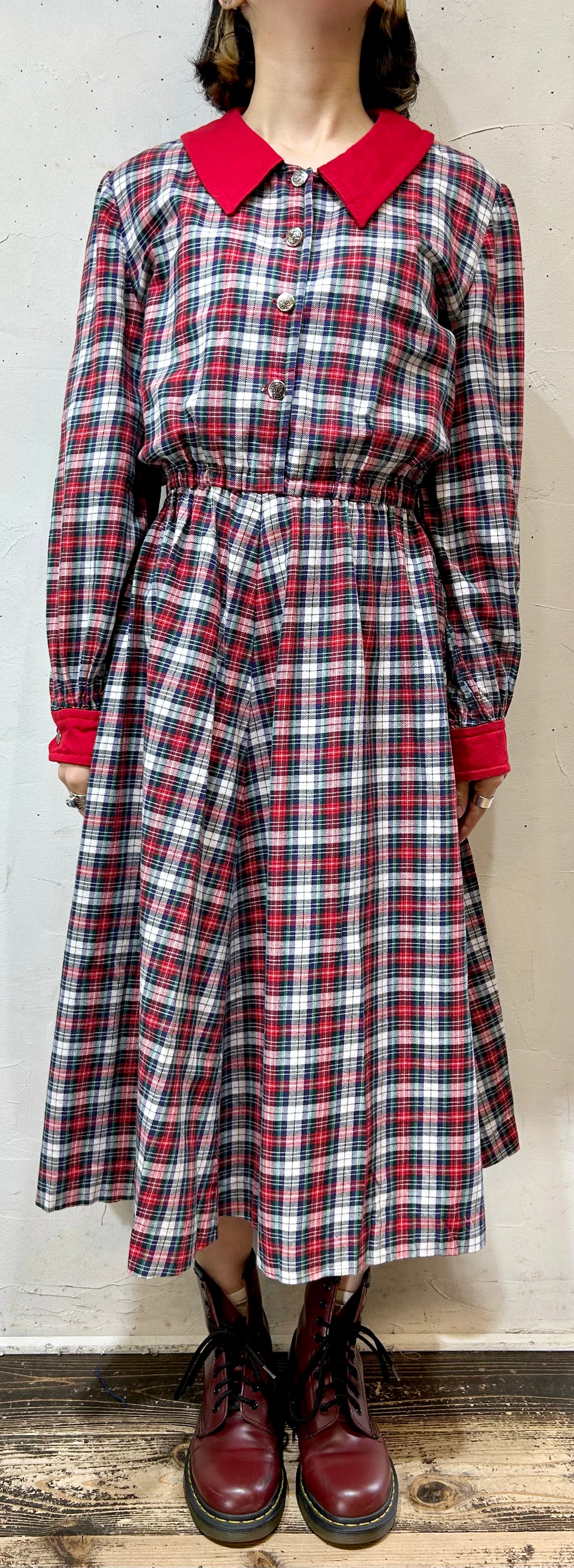 レッドのチェックボディに襟元とカフスのレッドカラーの生地がアクセントになった可愛らしい一着。