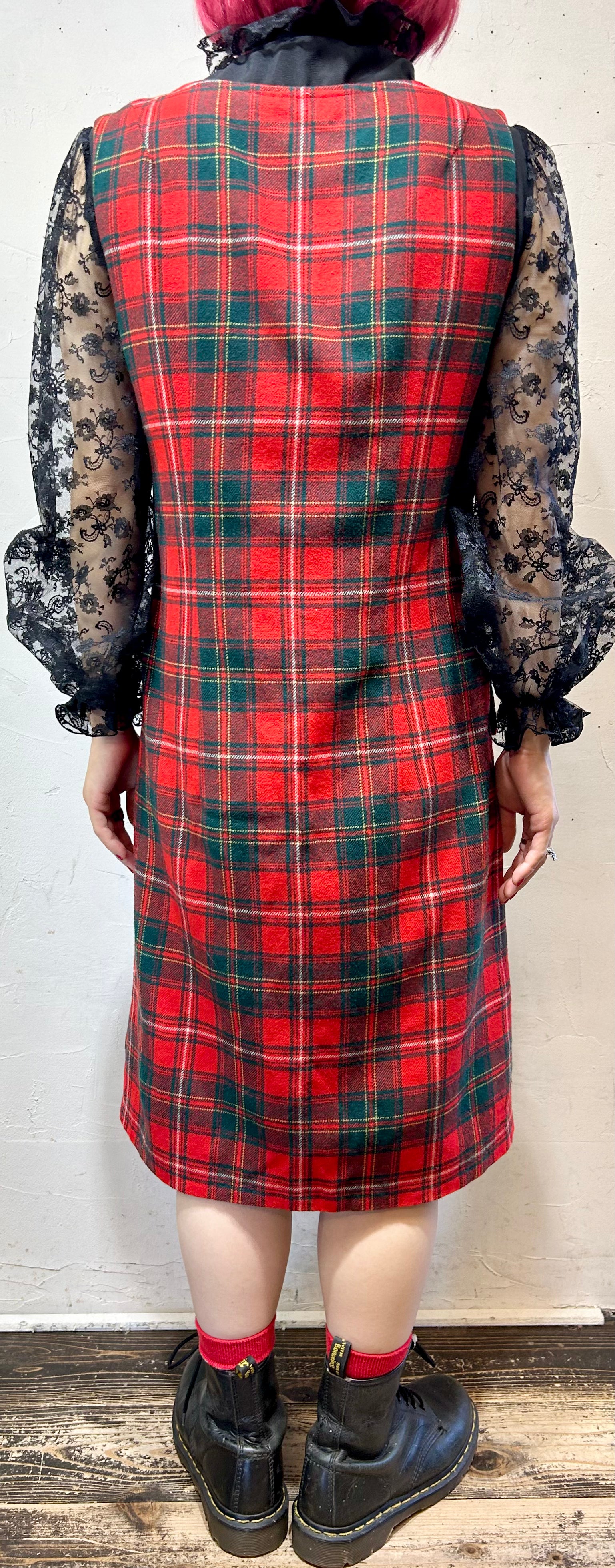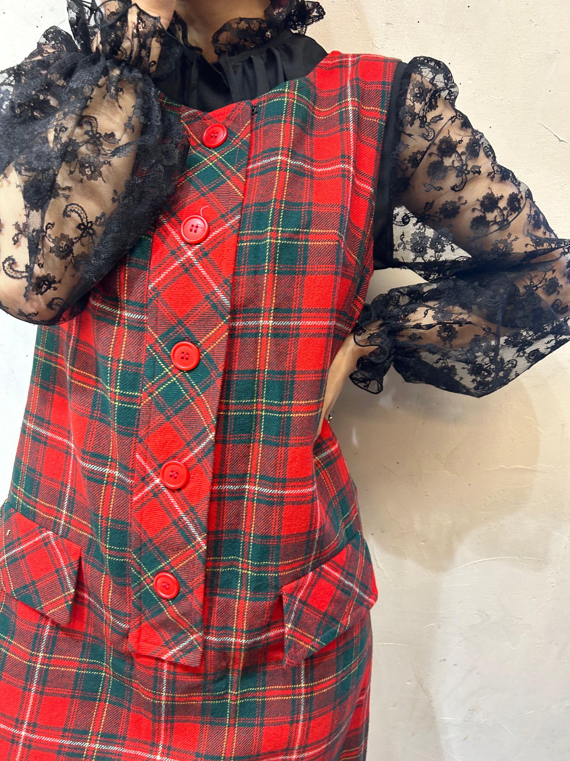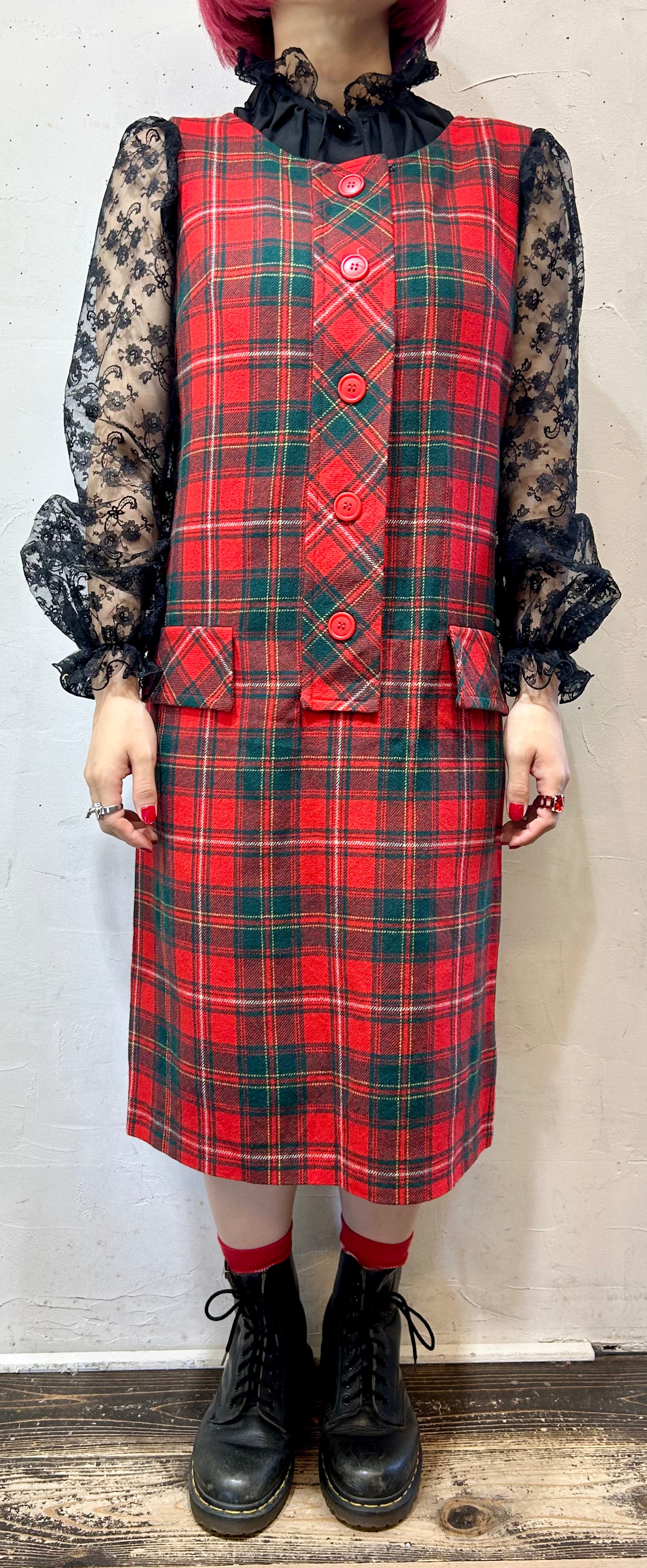 こちらはレッドとモスグリーンのタータンチェックボディが可愛らしい一着。