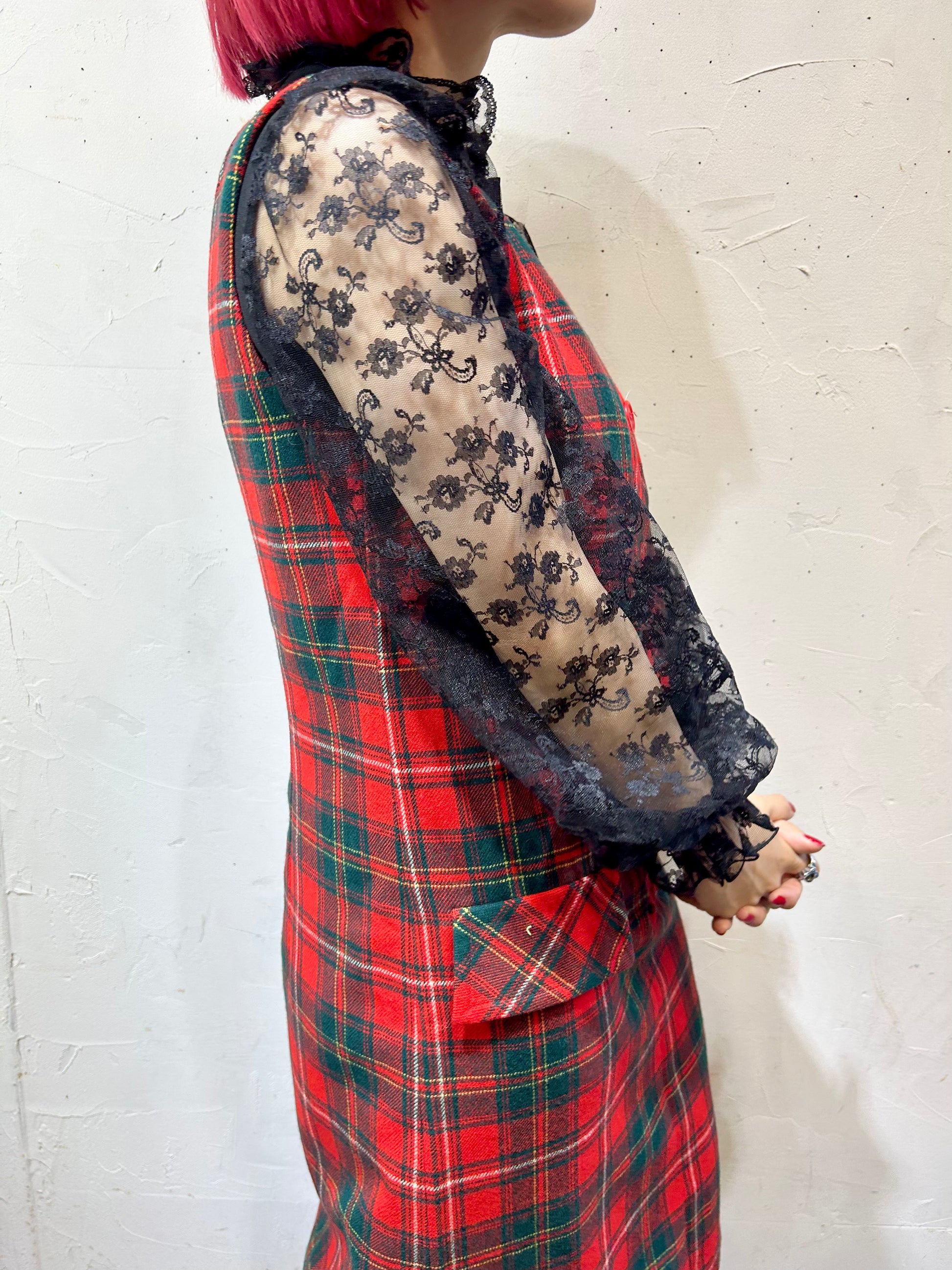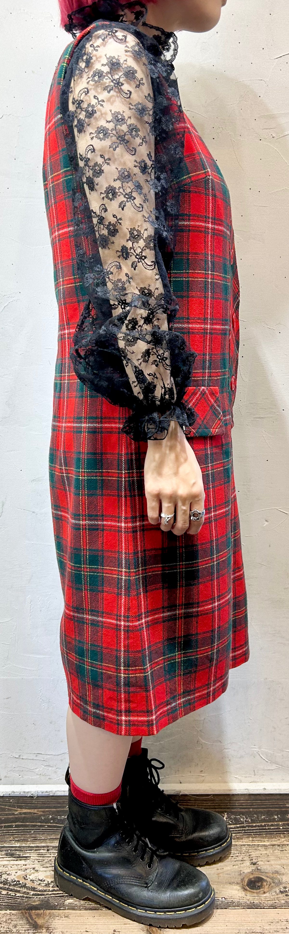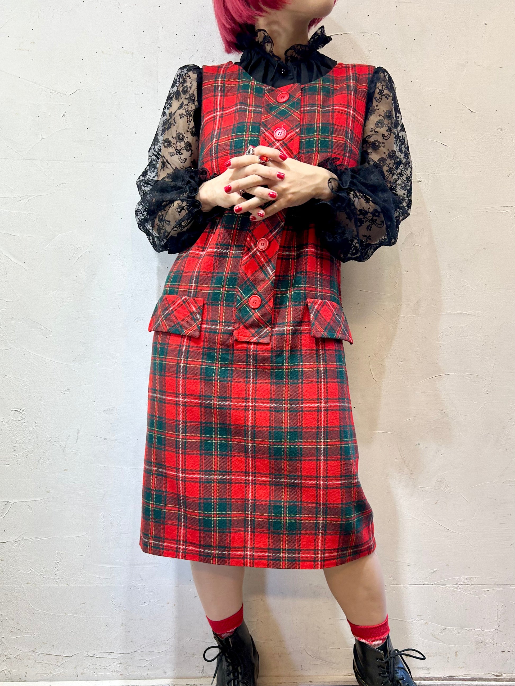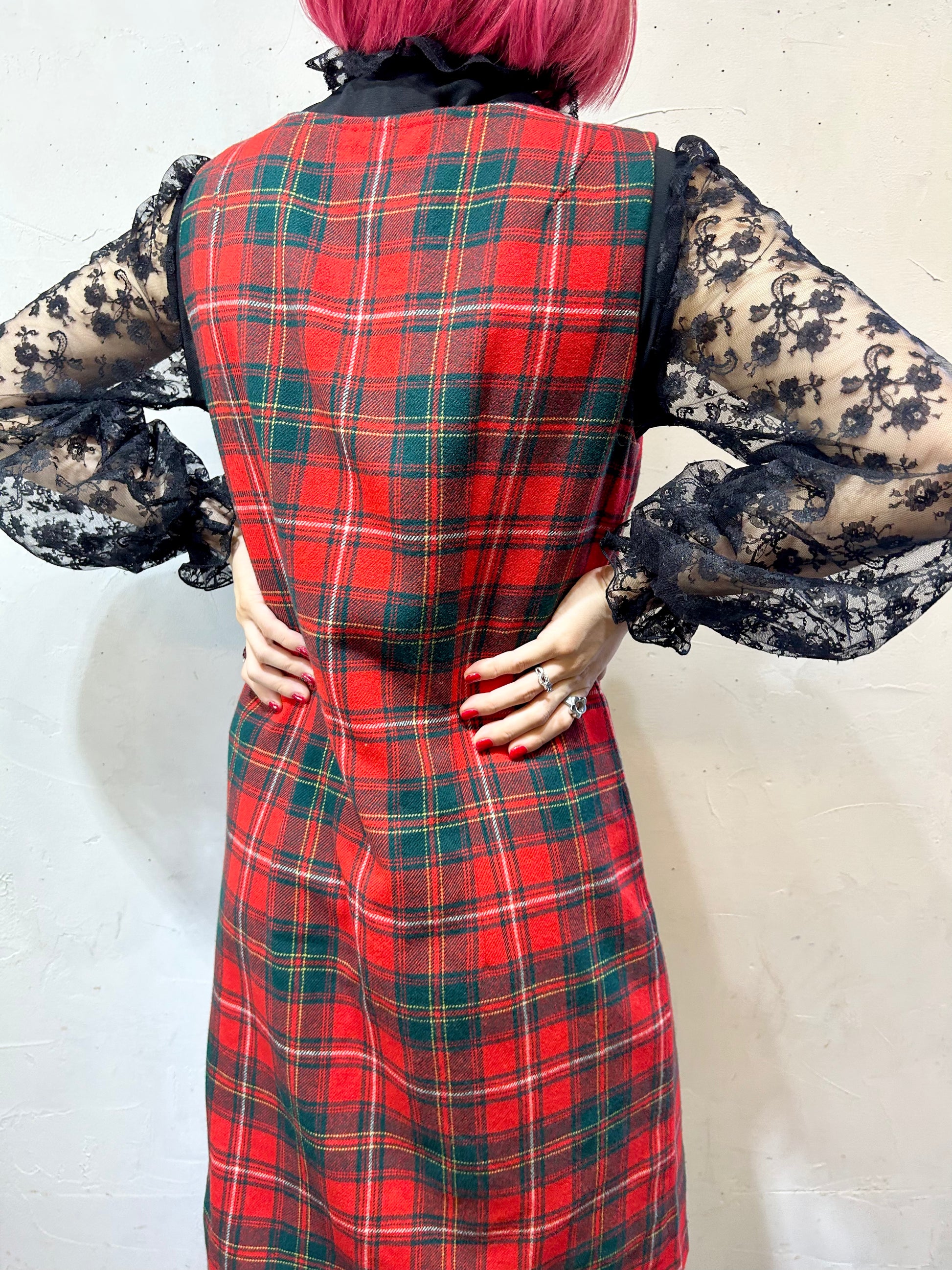 こちらはレッドとモスグリーンのタータンチェックボディが可愛らしい一着。