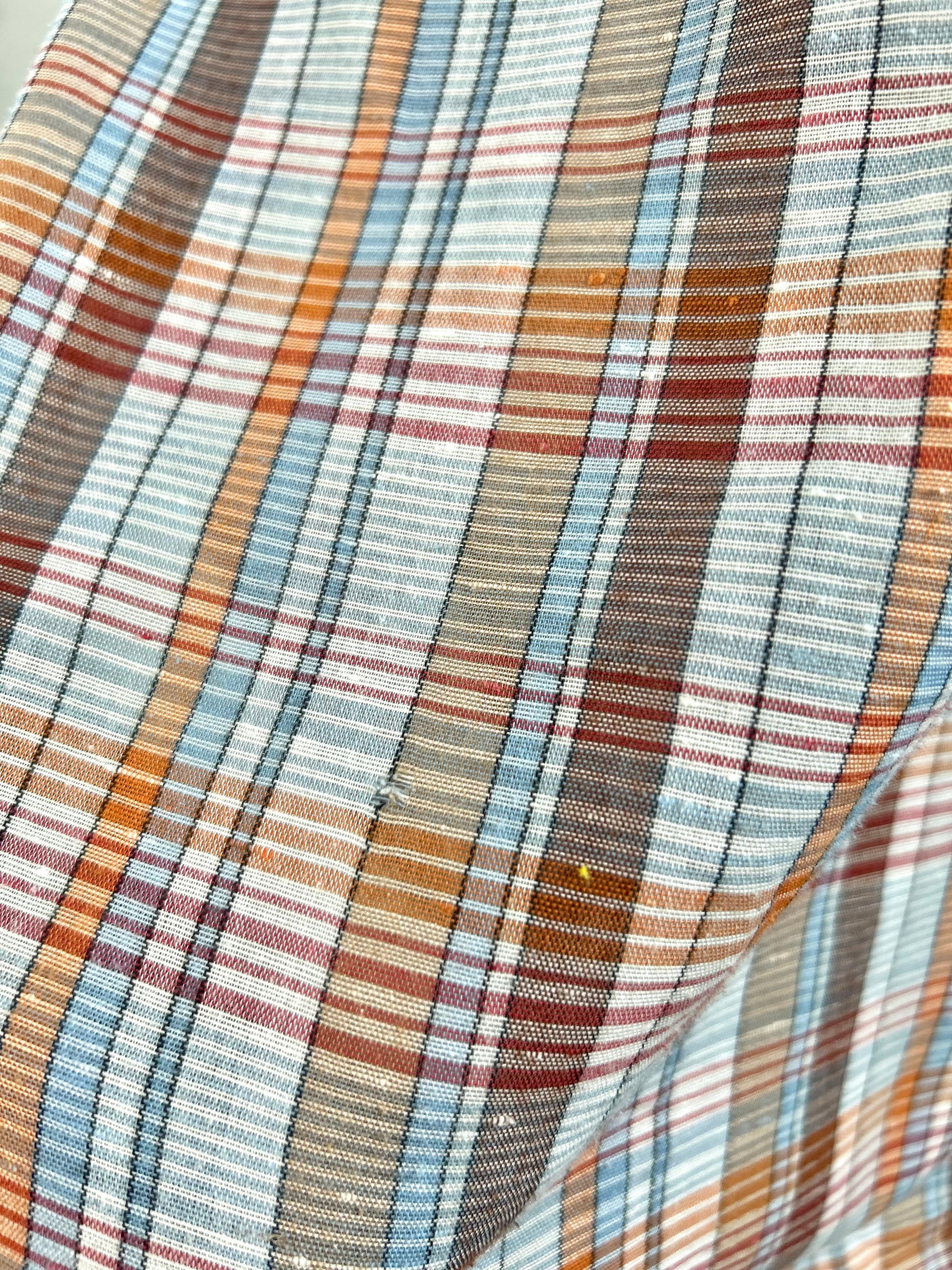 暖色カラーを基調とした温かみのあるチェックパターンがシンプルな印象の1着。