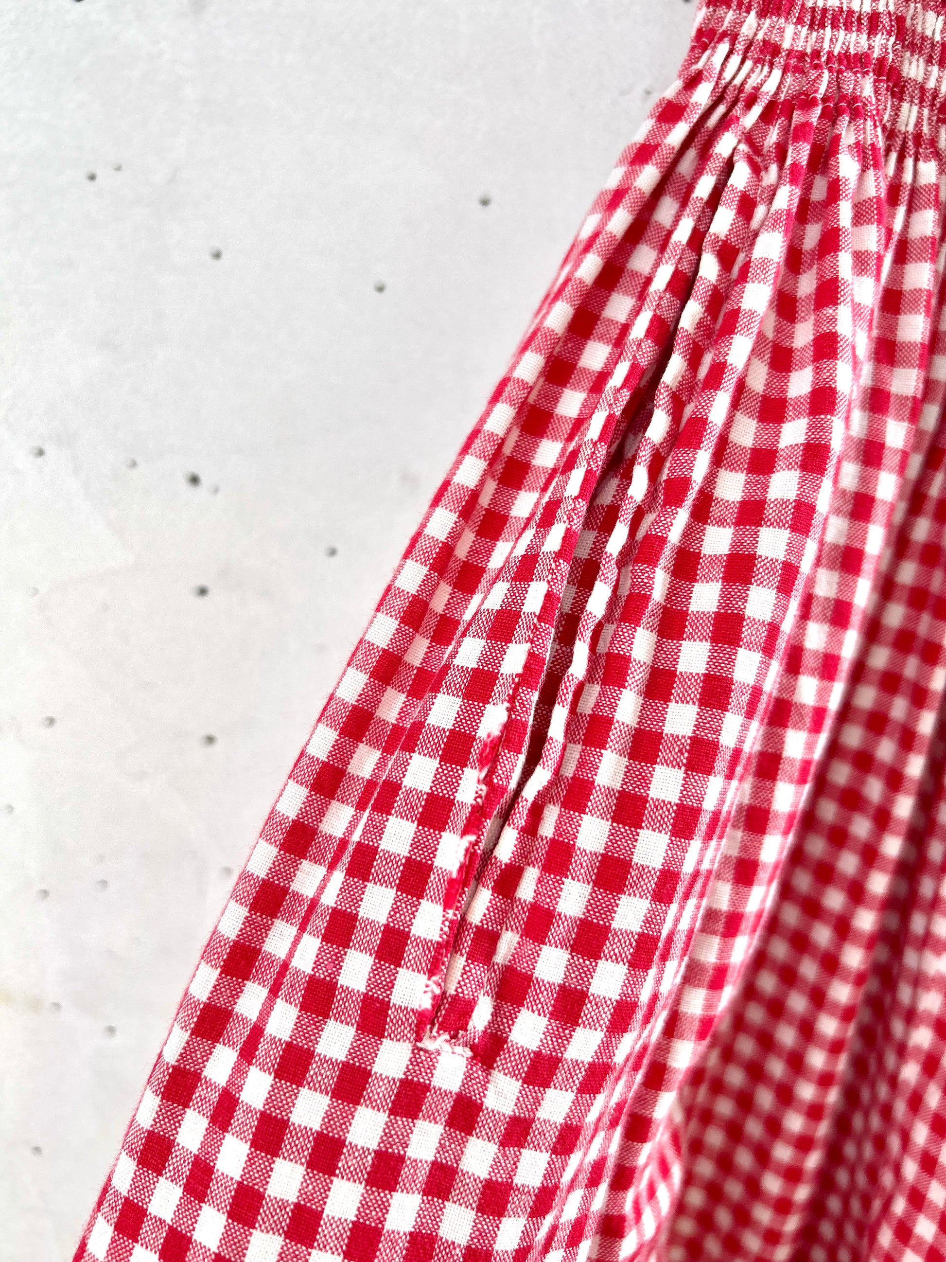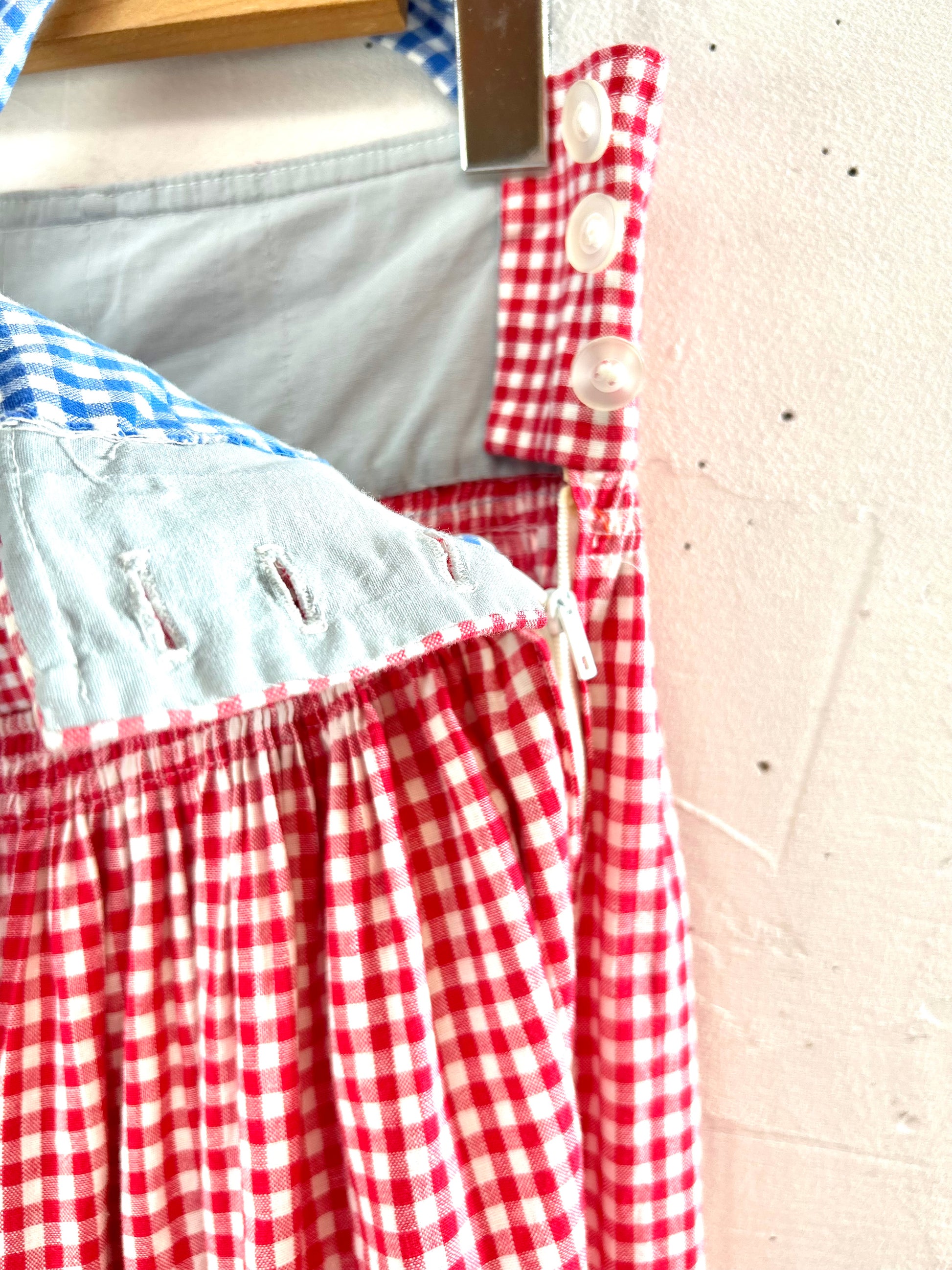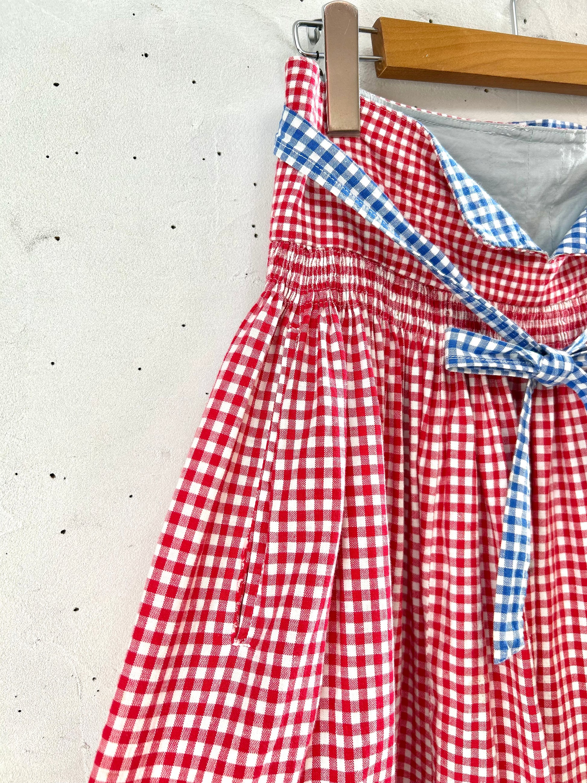 レッド&ブルーの伝統的なギンガムチェックでアメリカンな雰囲気が可愛い1着。