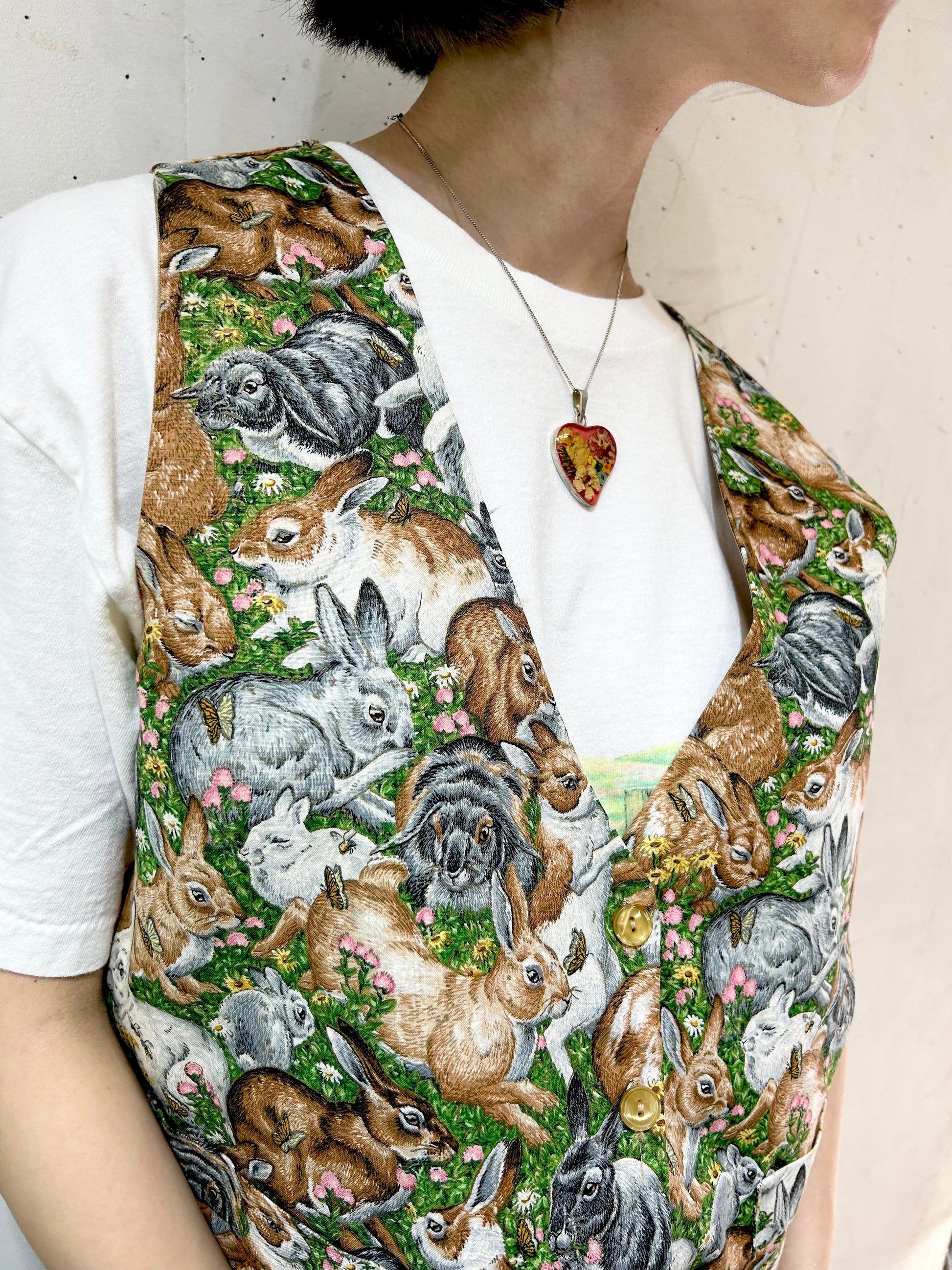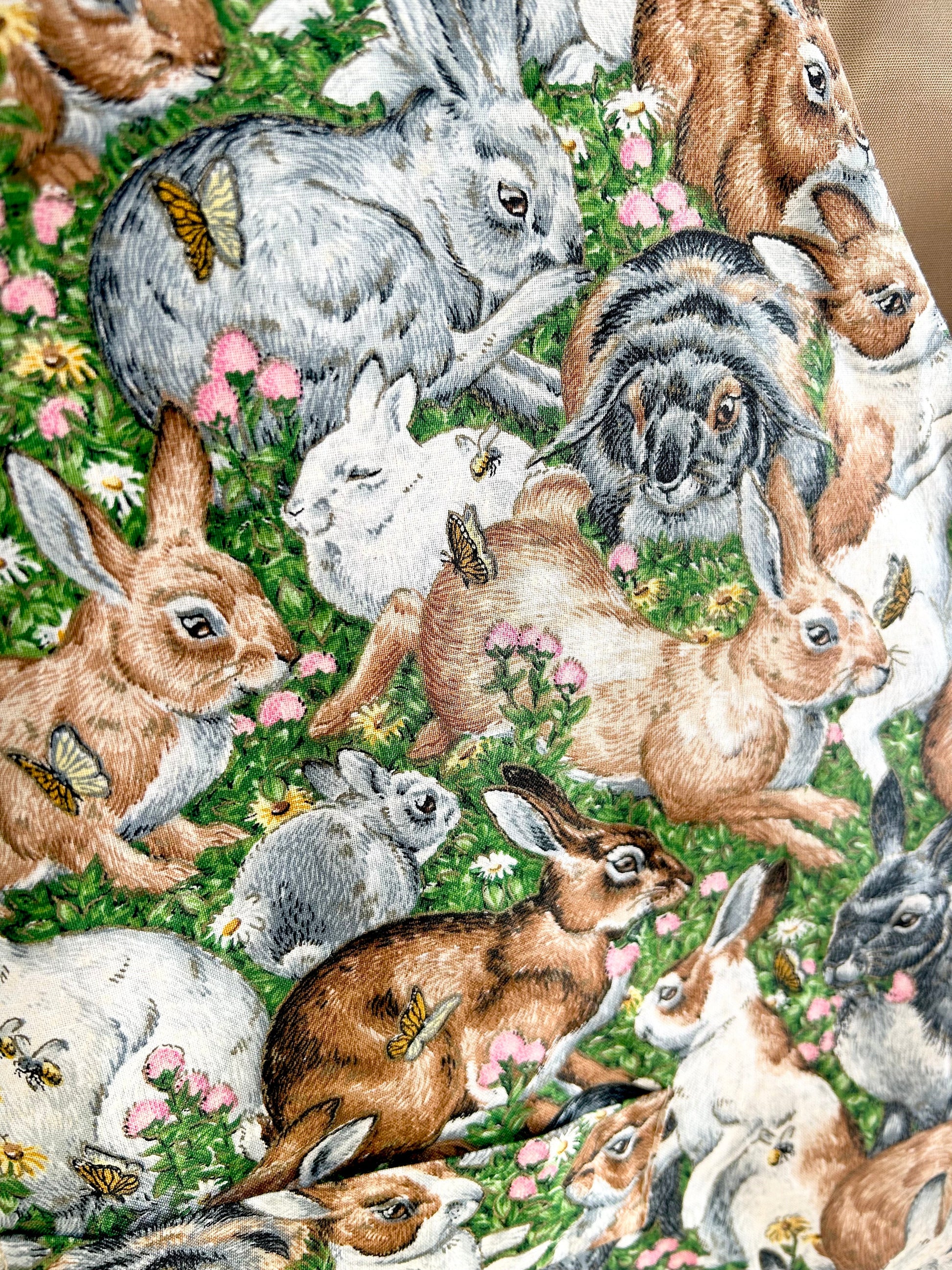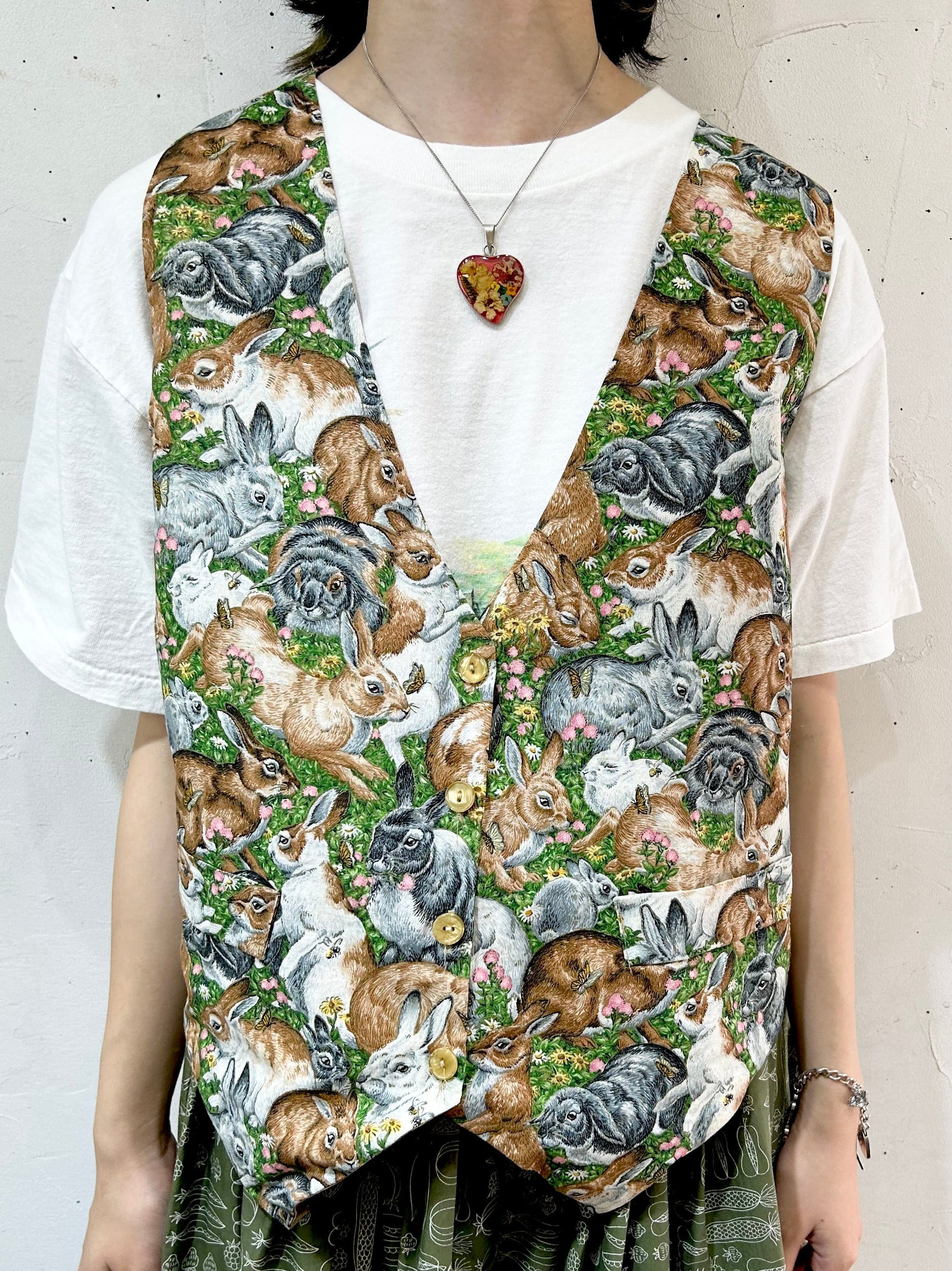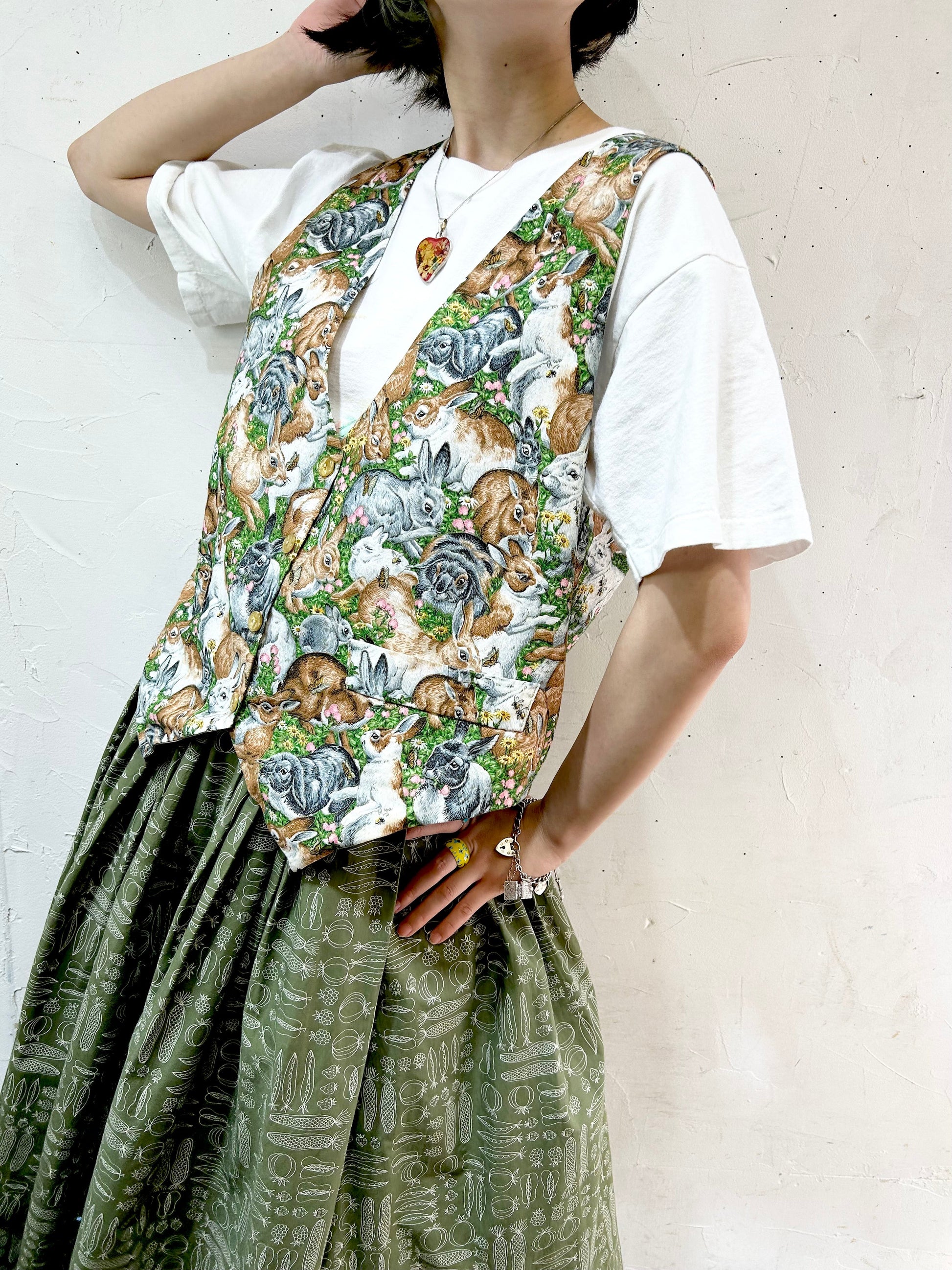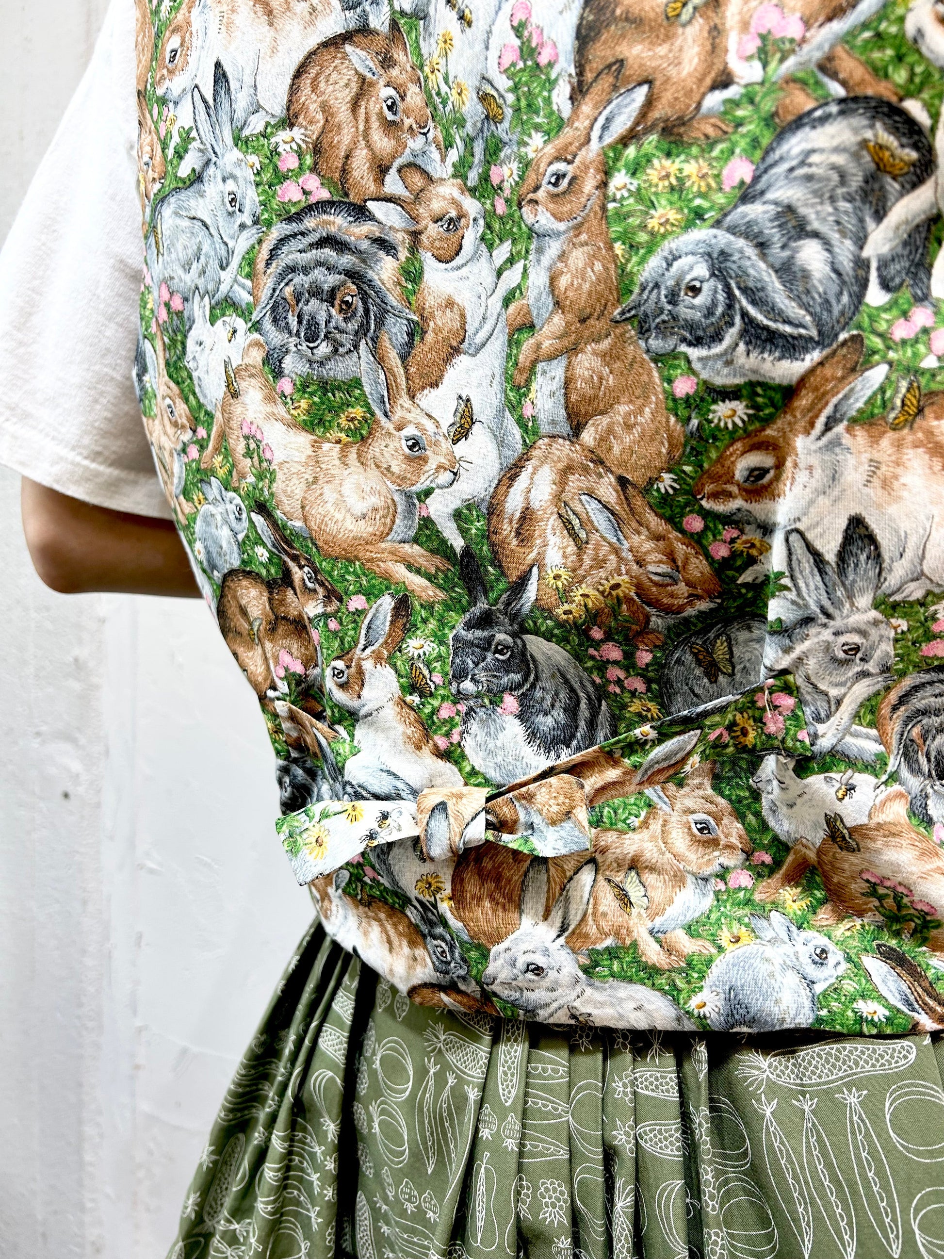 前後にぎっしりプリントされたうさぎがとても可愛らしい1着。
