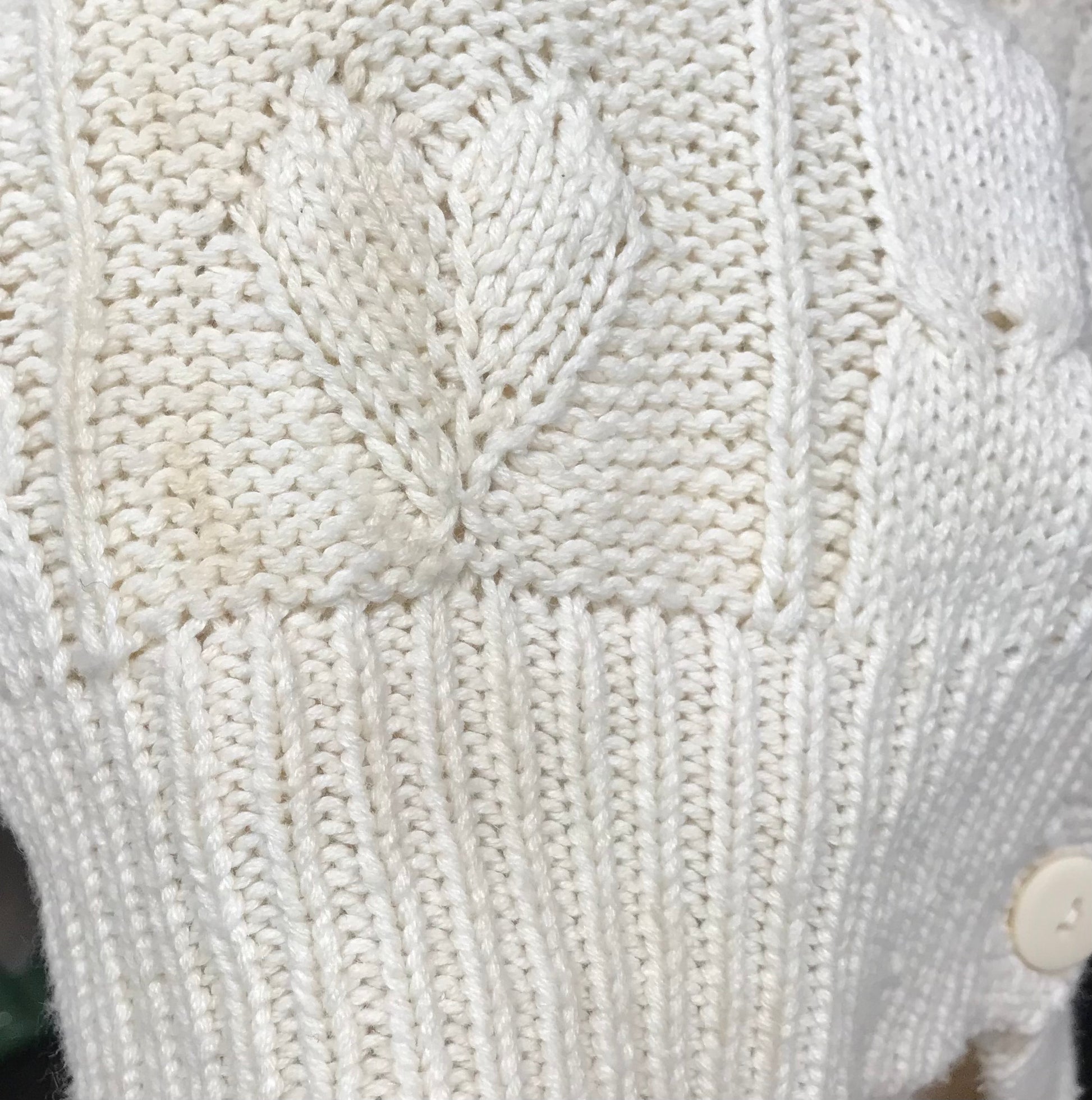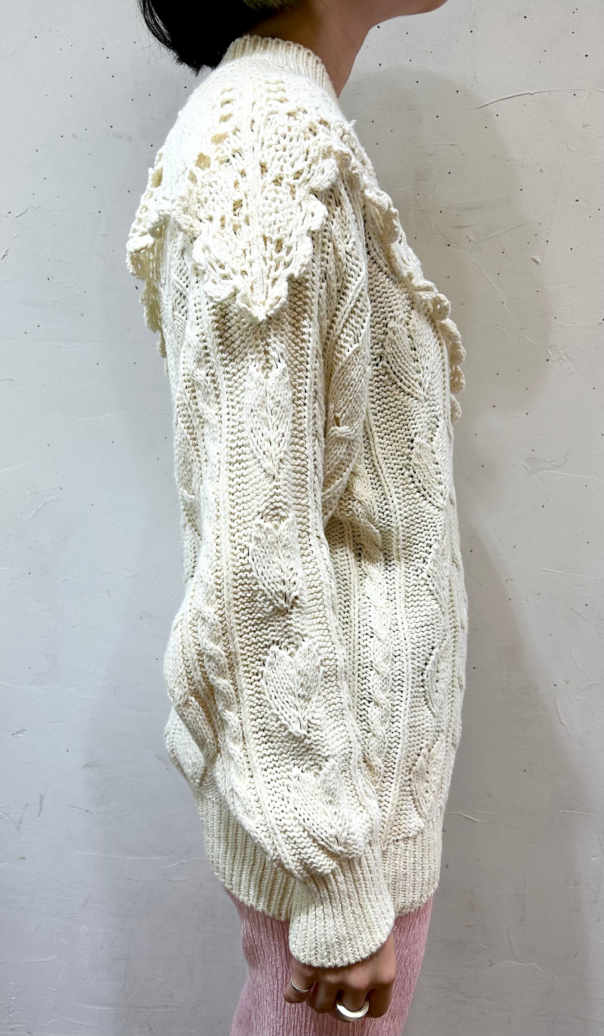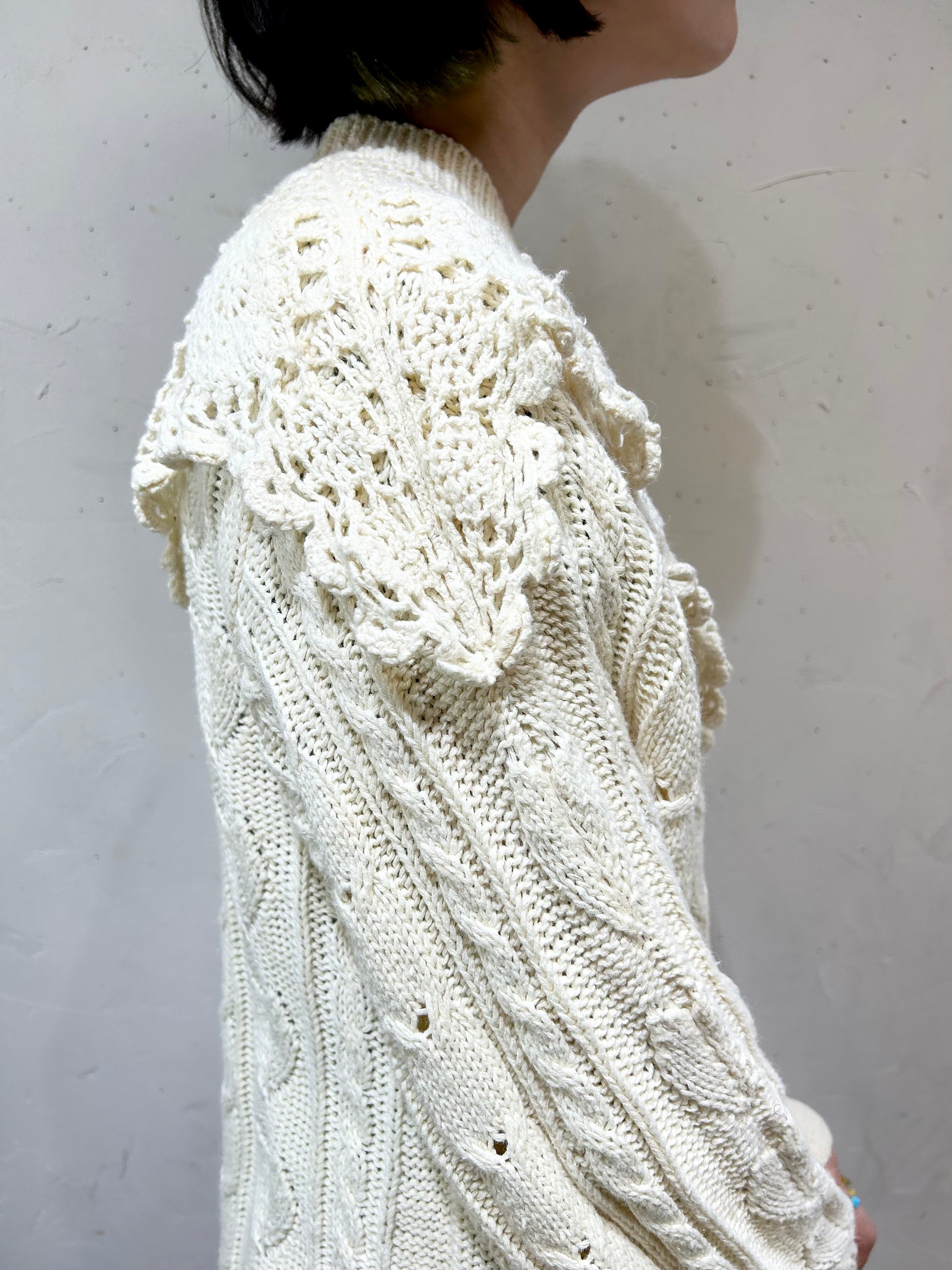 ケーブル編みやハートのような編み地との組み合わせもとても可愛らしく、ラミーコットン素材ですので長い季節ご着用頂けるのも魅力的です。