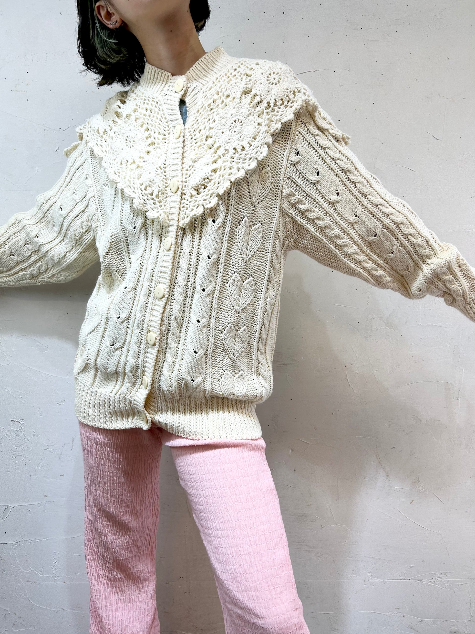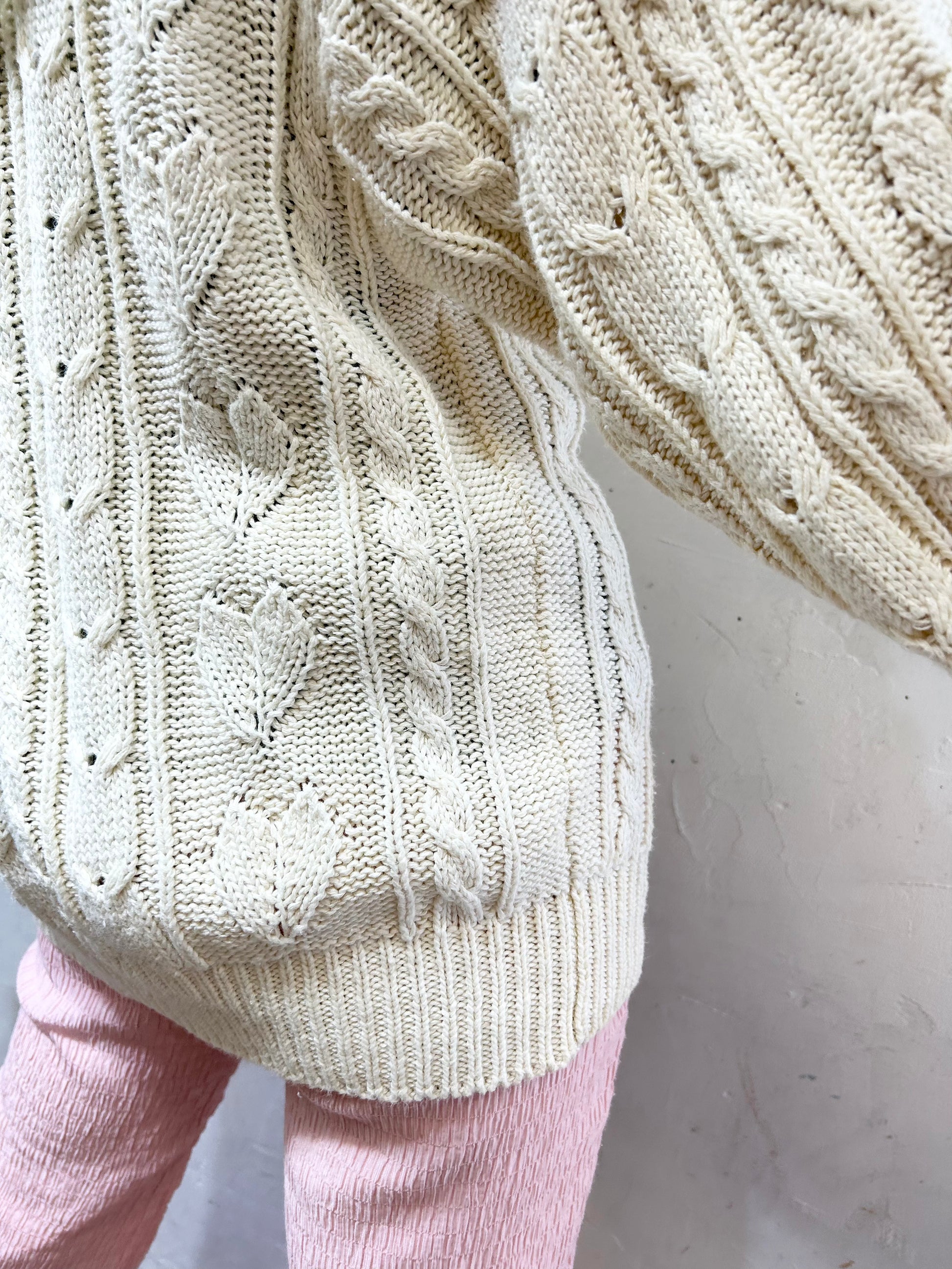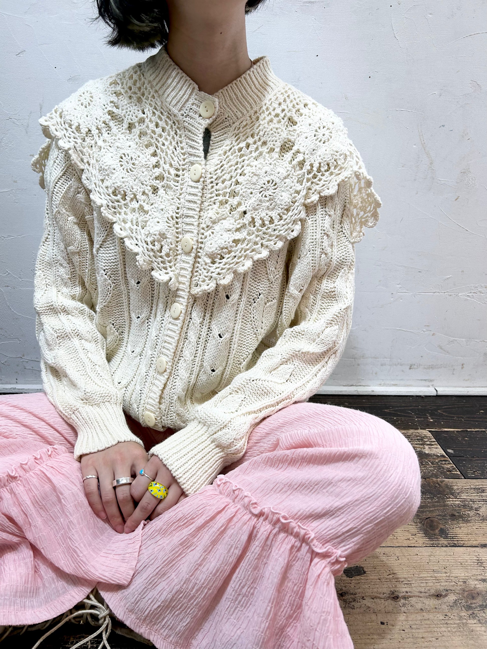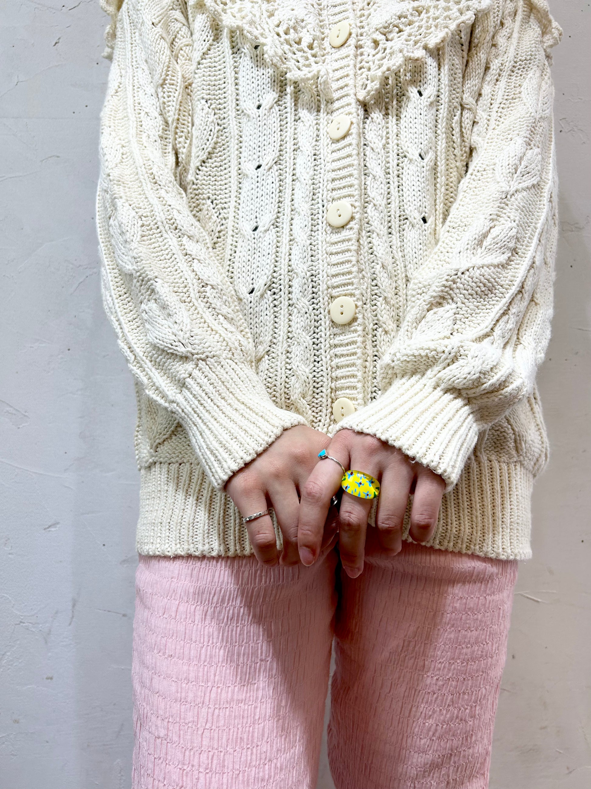ケーブル編みやハートのような編み地との組み合わせもとても可愛らしく、ラミーコットン素材ですので長い季節ご着用頂けるのも魅力的です。