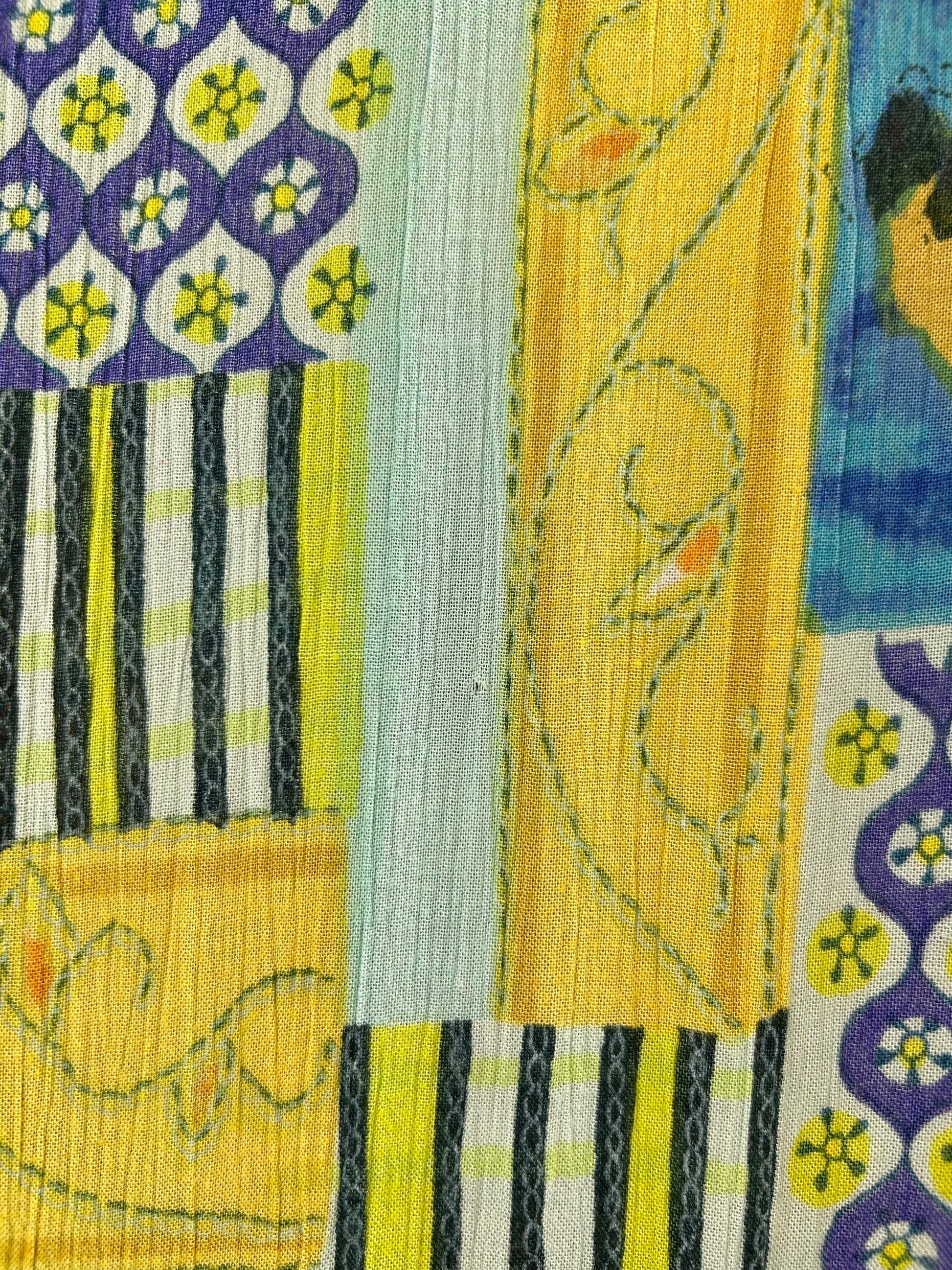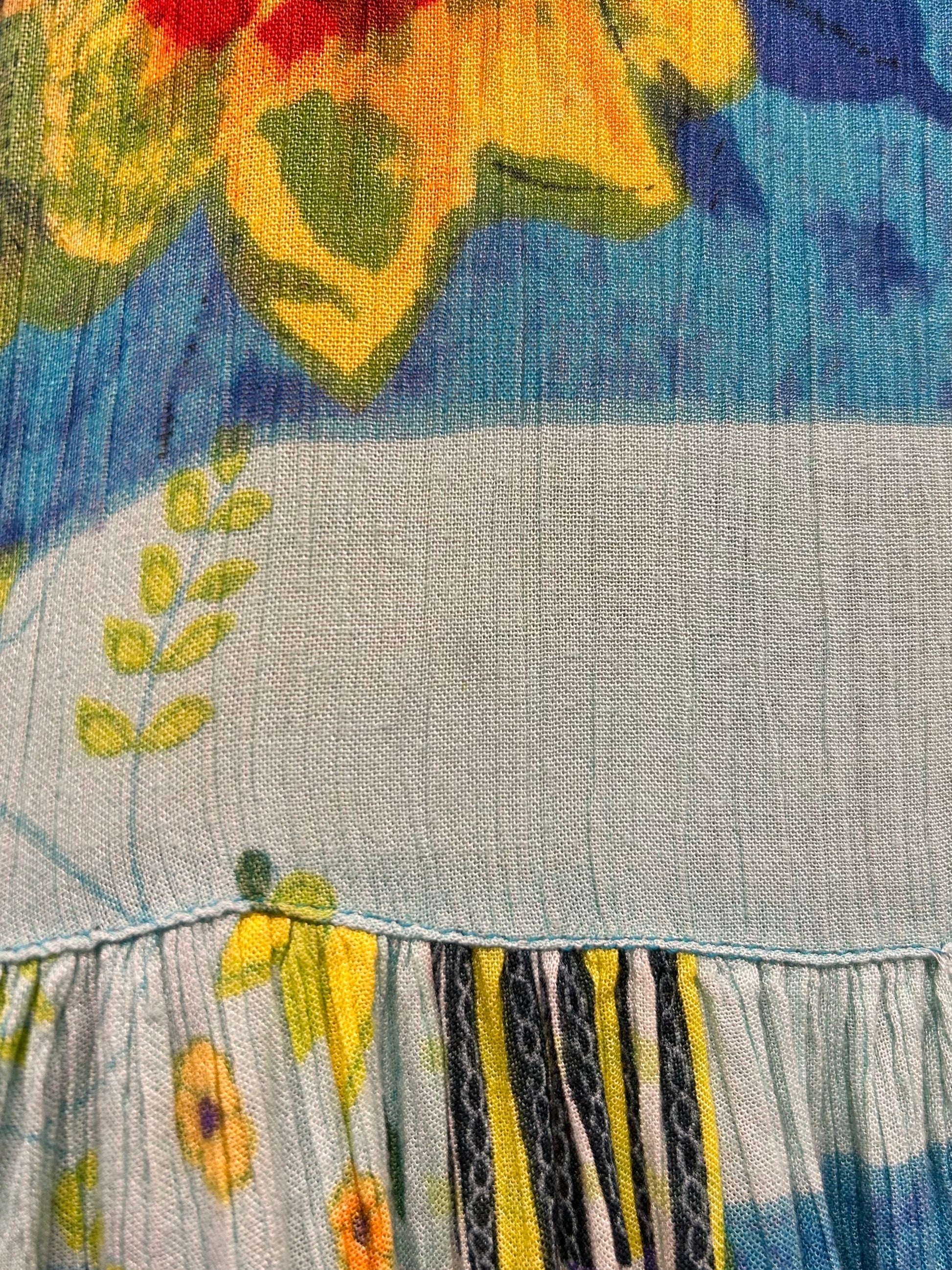 爽やかなカラーのテキスタイルがこれからの季節にぴったりな1着。