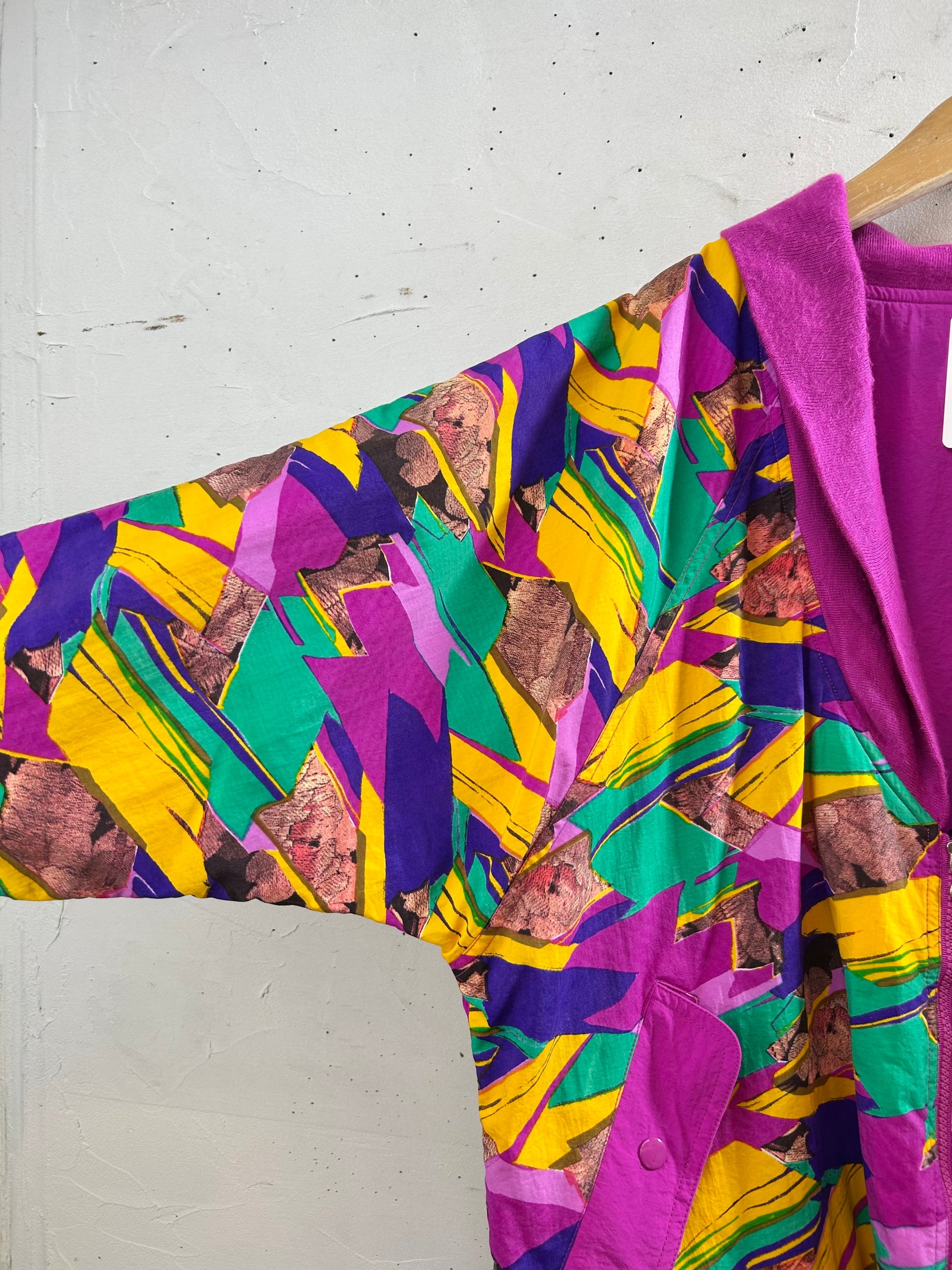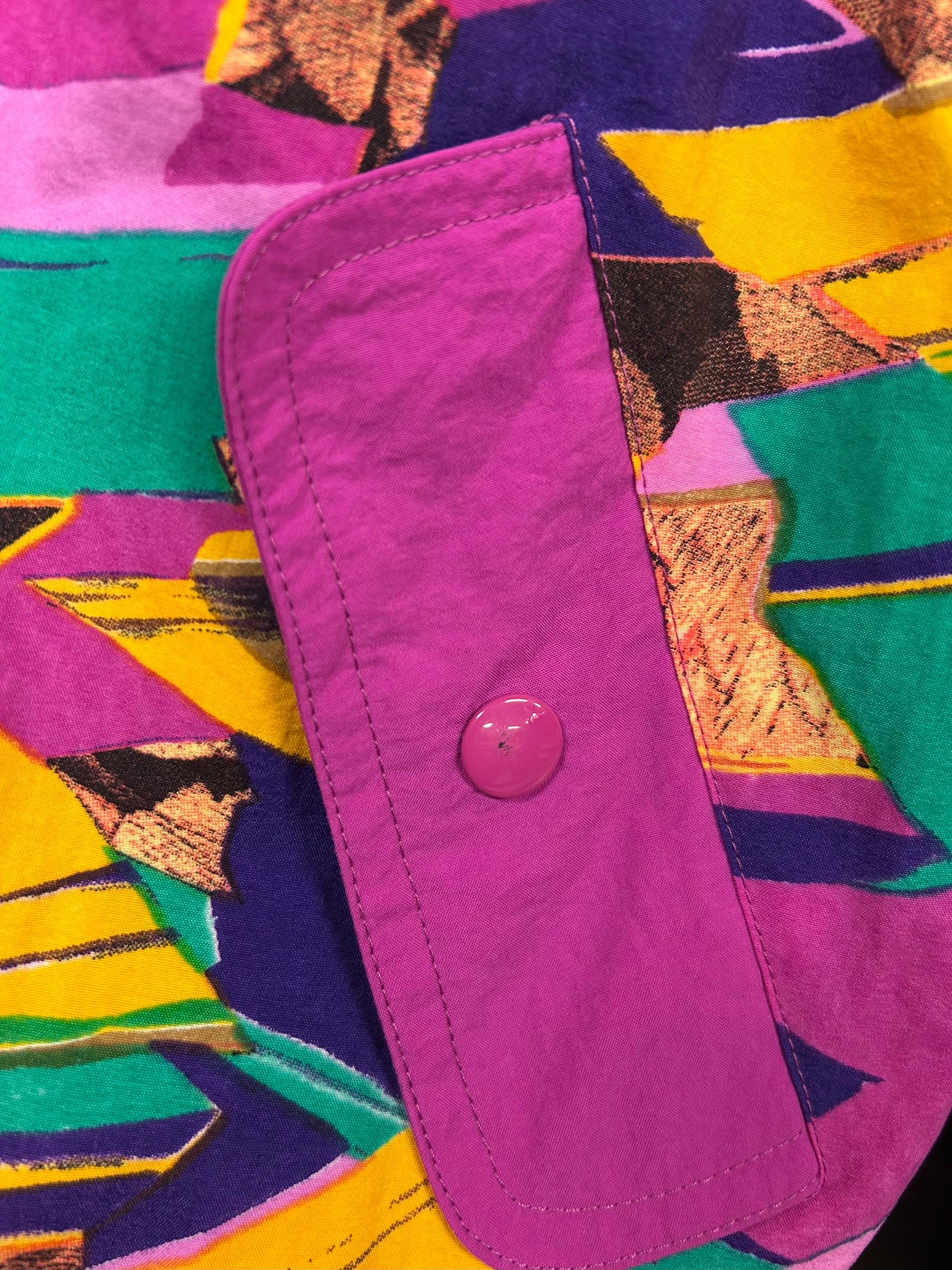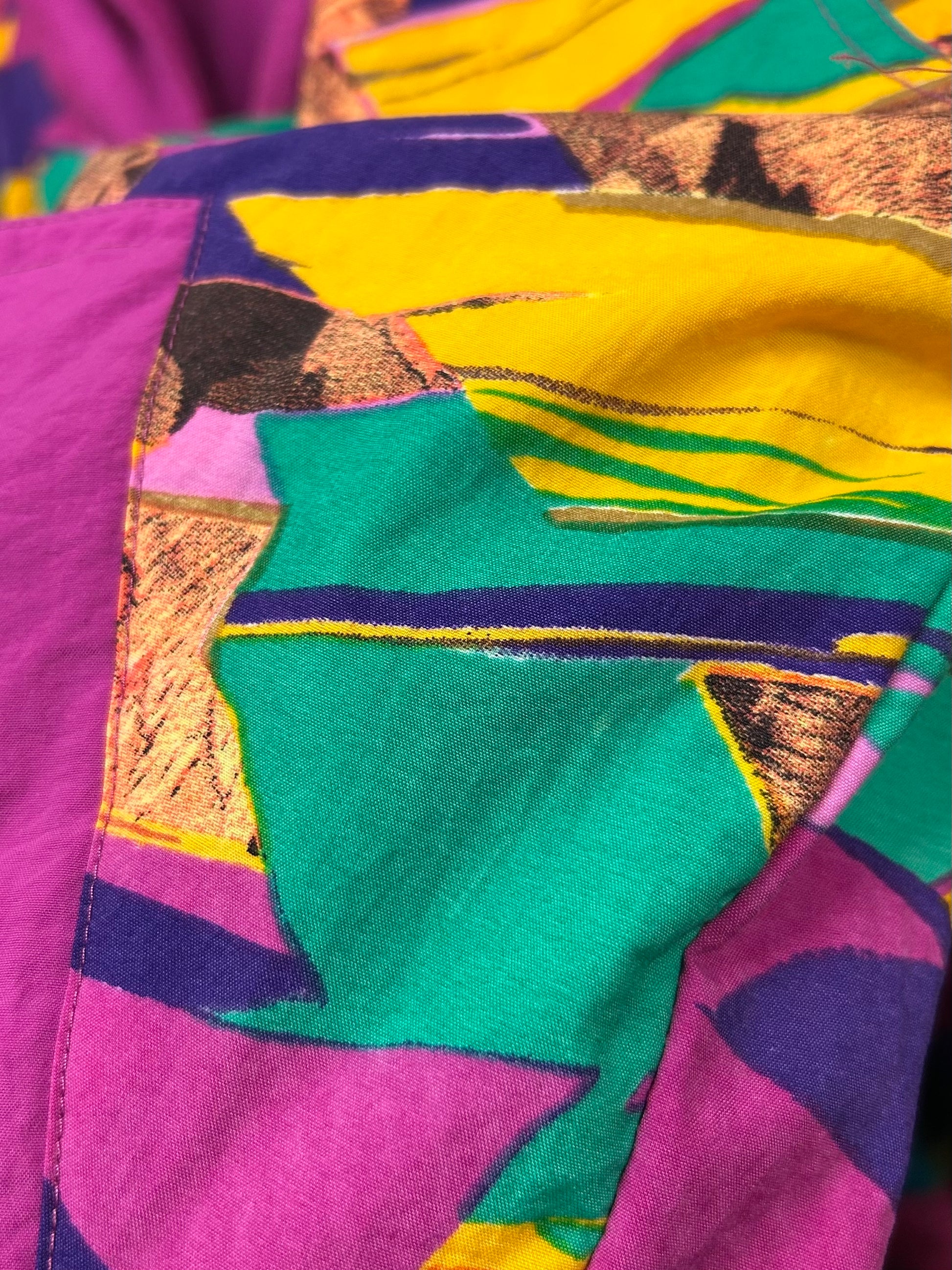コンディション:柄の面ポケットボタンに剥げ、左サイドと左袖に汚れ、単色の面フロントにシミがございますが、ビンテージにご理解いただいている方でしたら、気にせずご着用頂ける程度かと思われます。