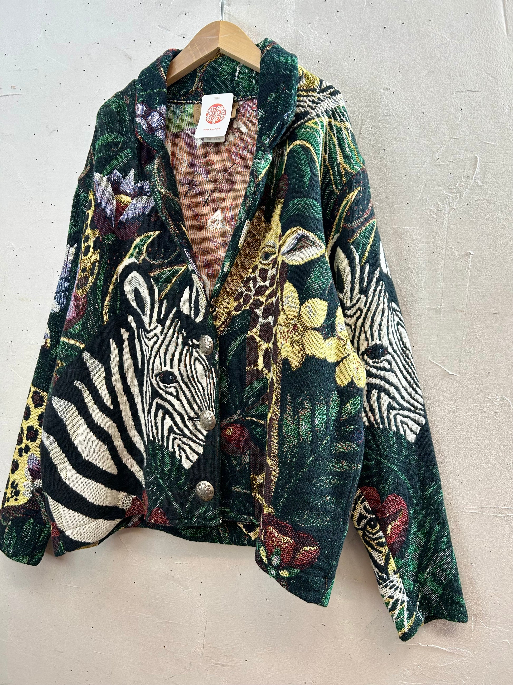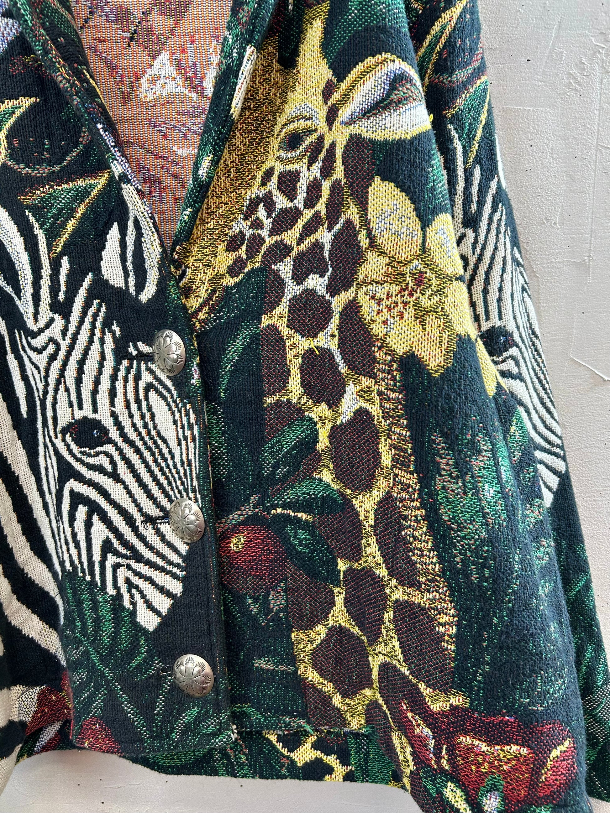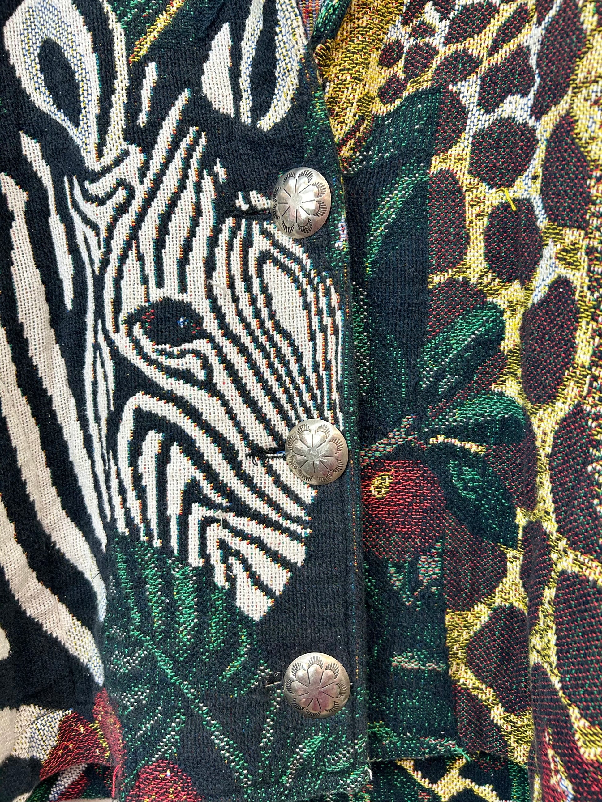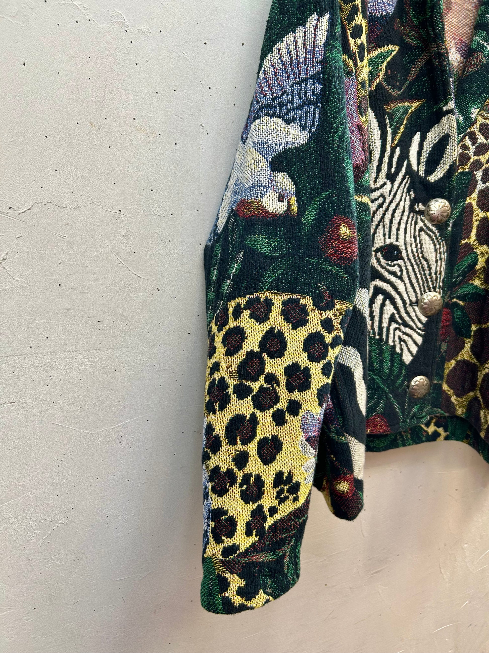 シマウマやキリンなど様々なアニマルたちがインパクト抜群で、大きなコンチョボタンもアクセントになり目を引きます。