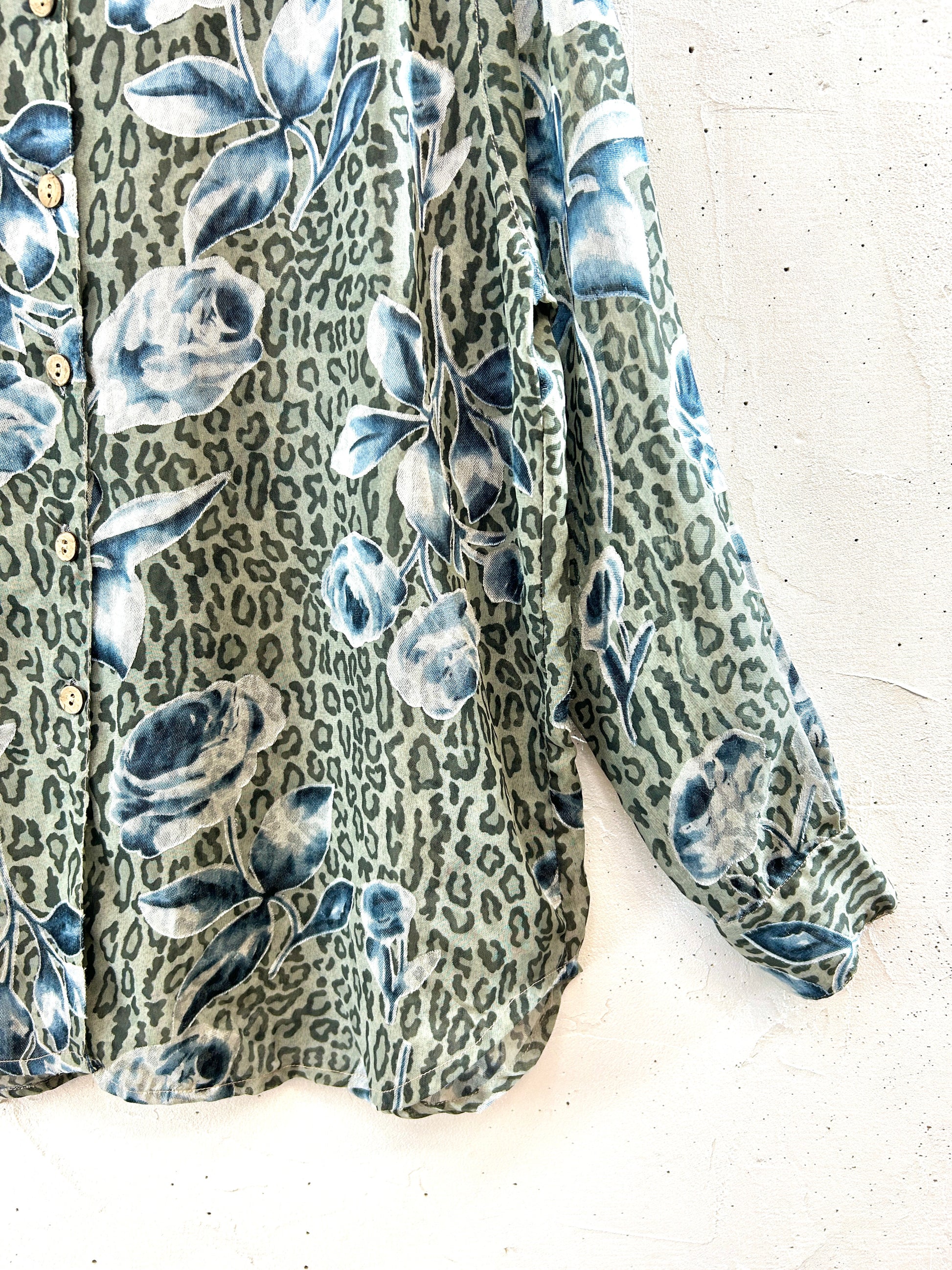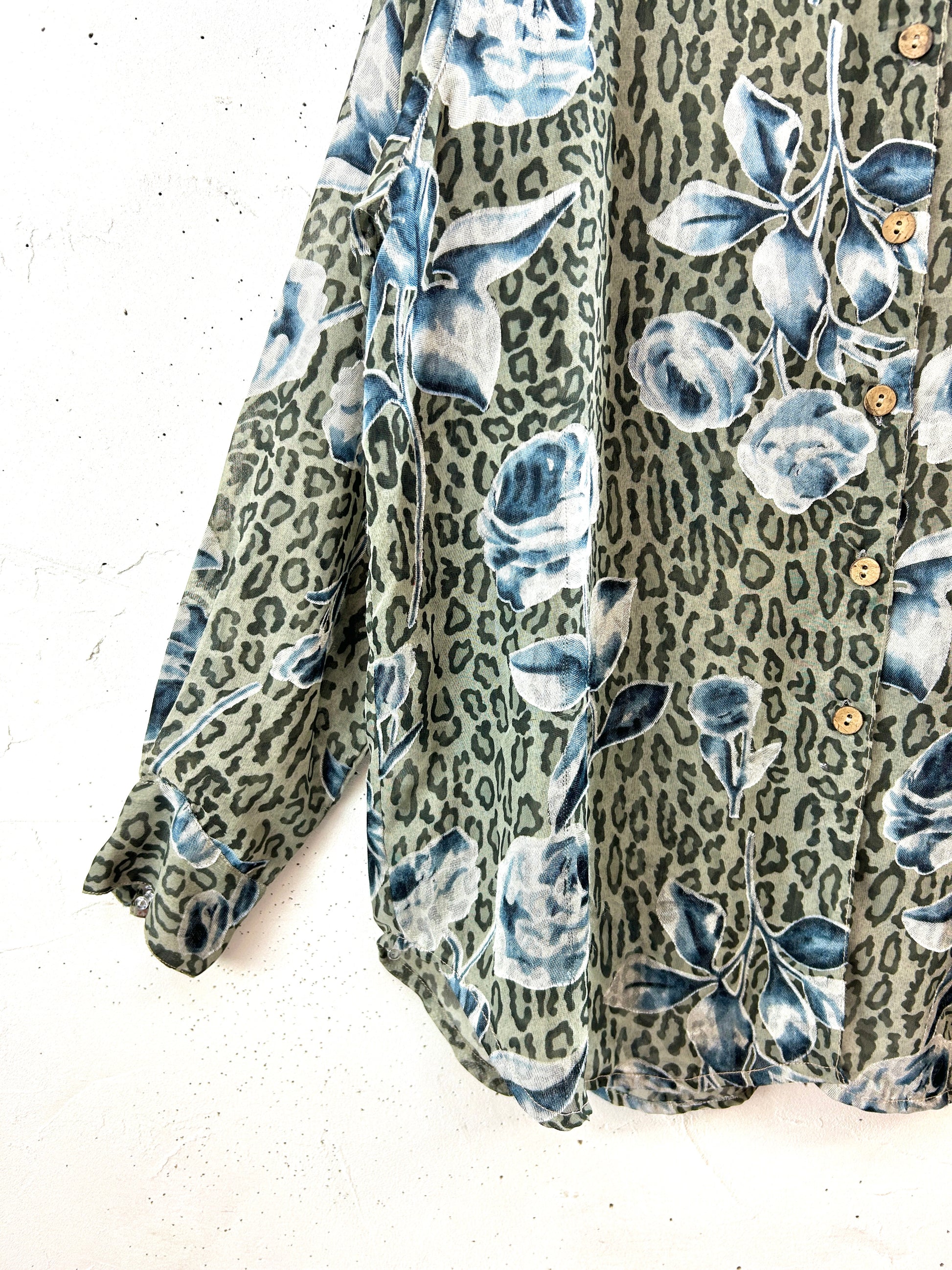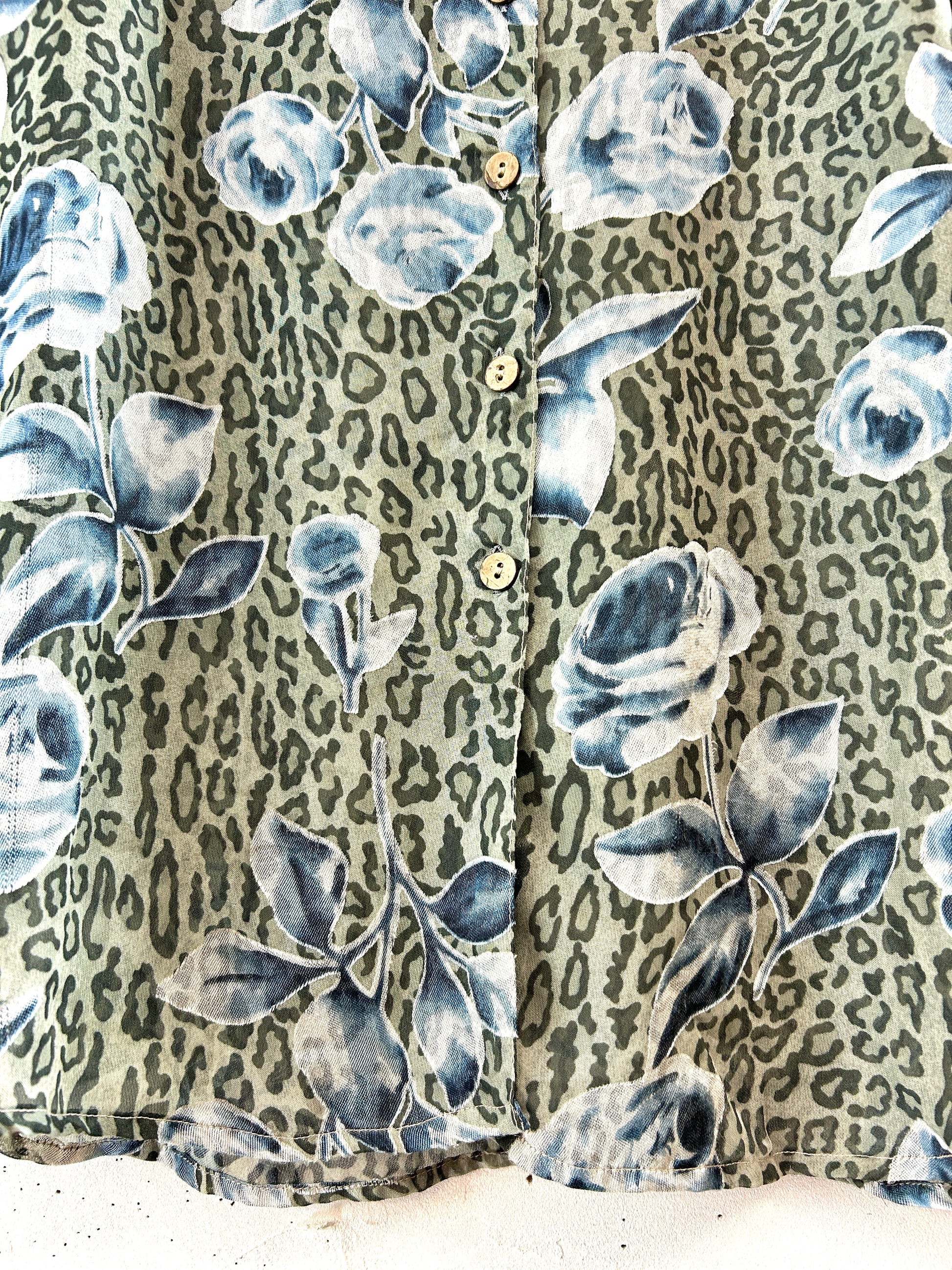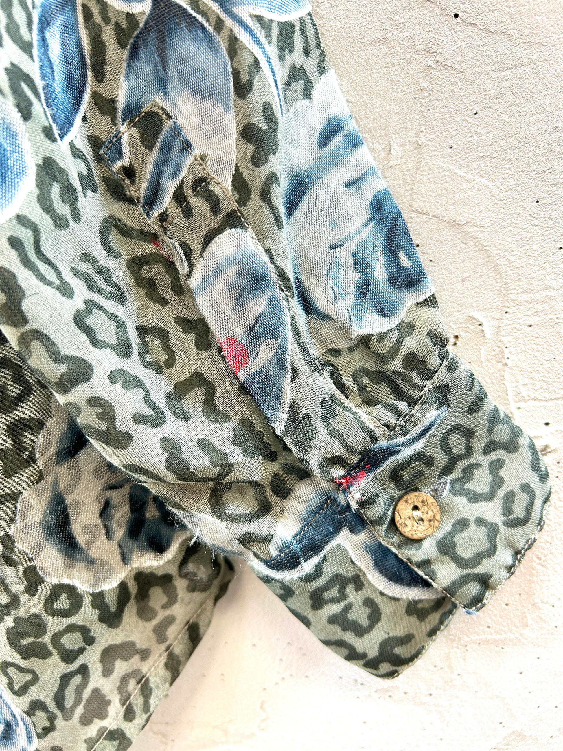 バラとヒョウ柄のシースルー切替がとても面白いデザインの一着。
