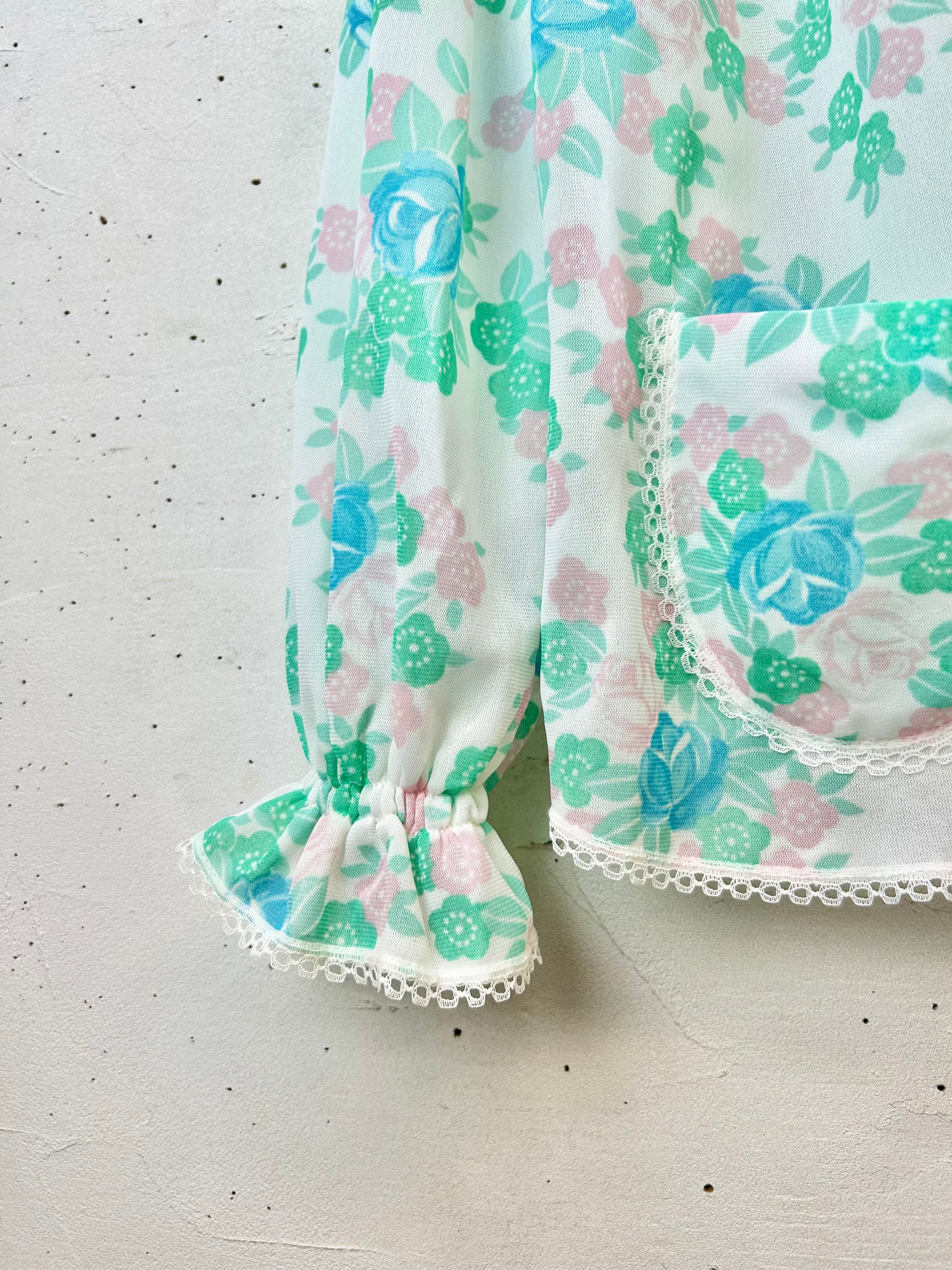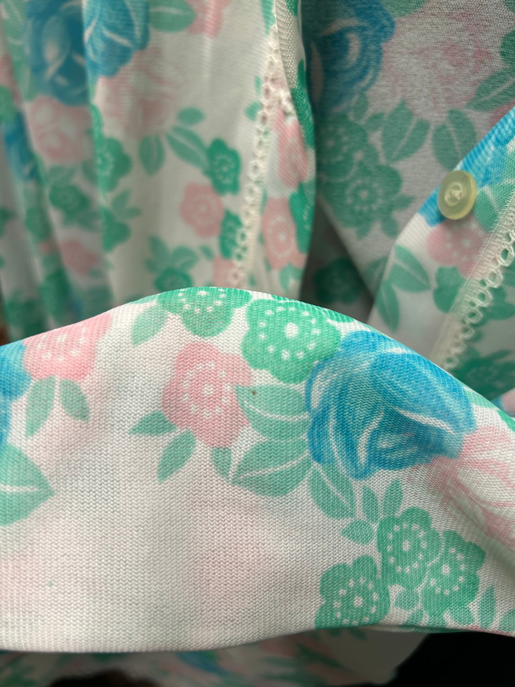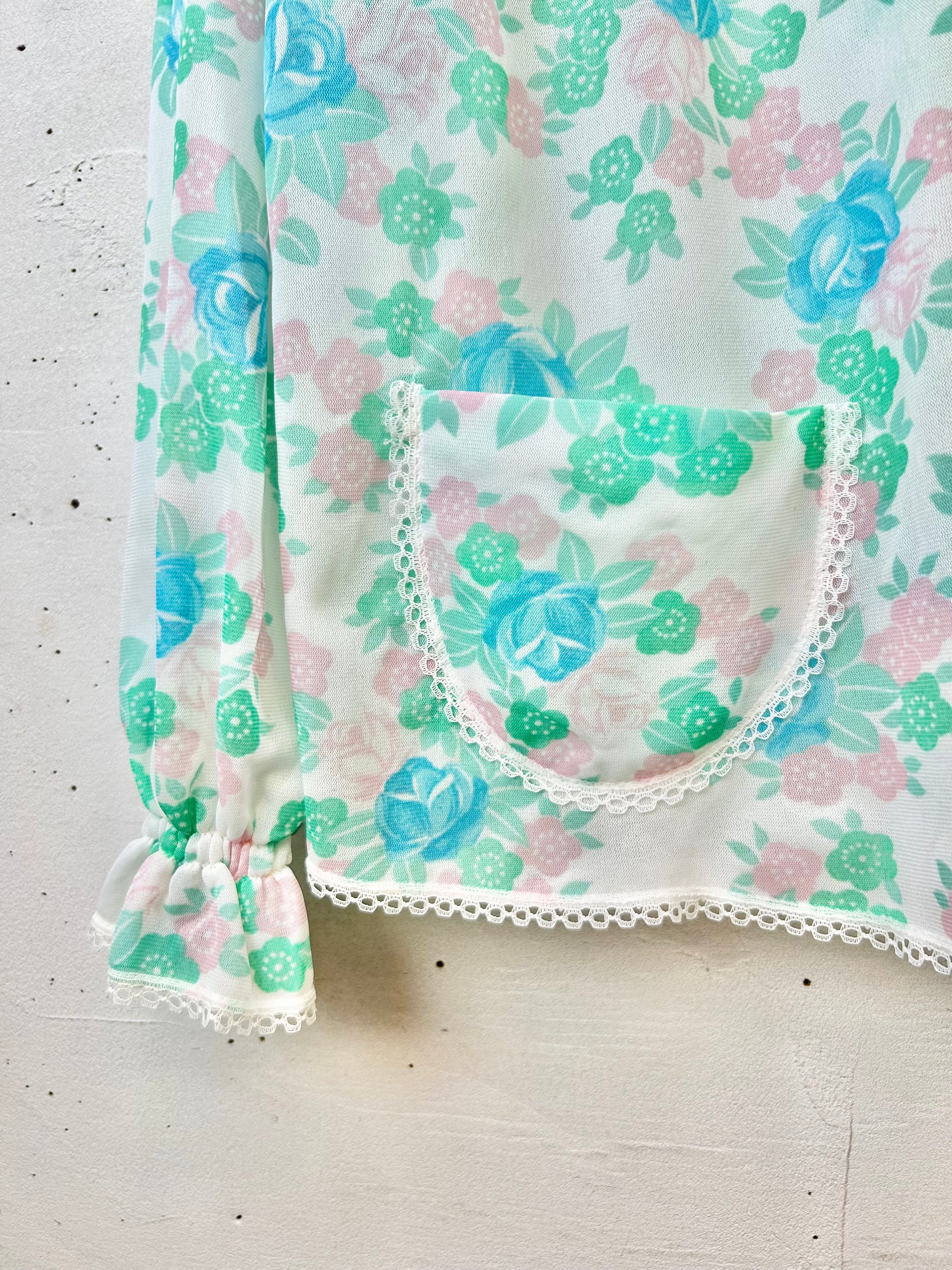 白ボディに水色とピンク、グリーンの爽やかなフラワープリントが目を奪うアイテム。