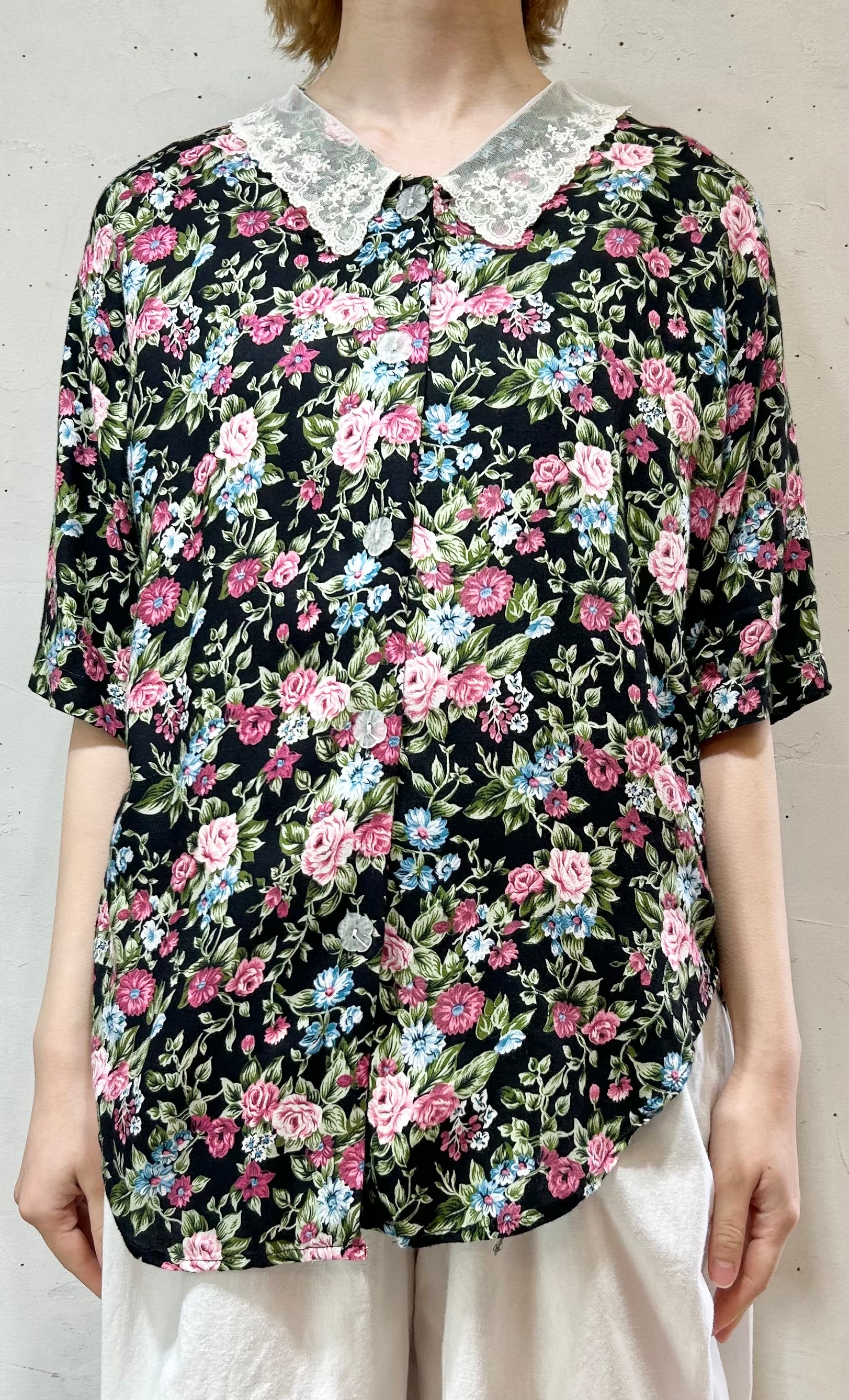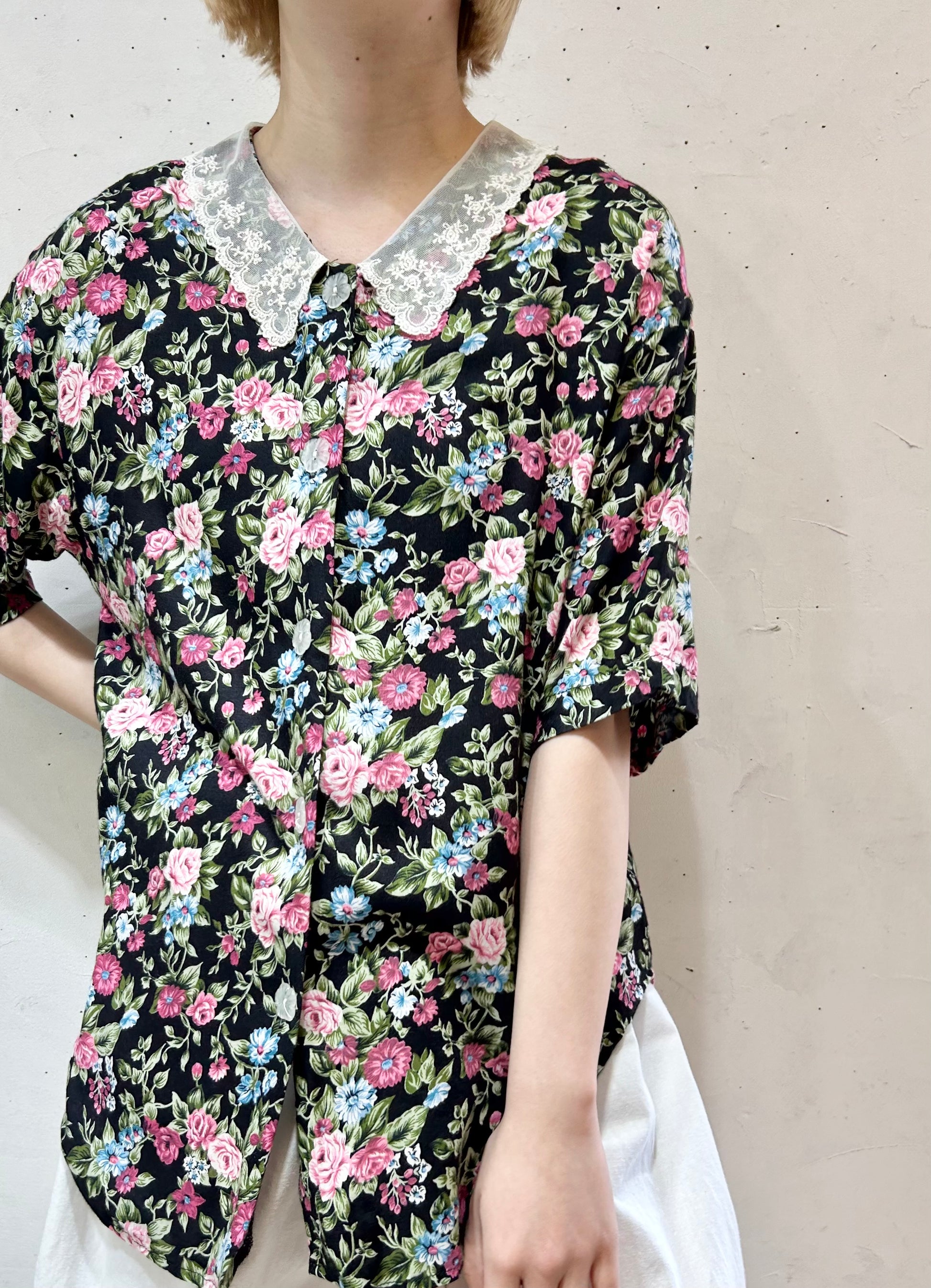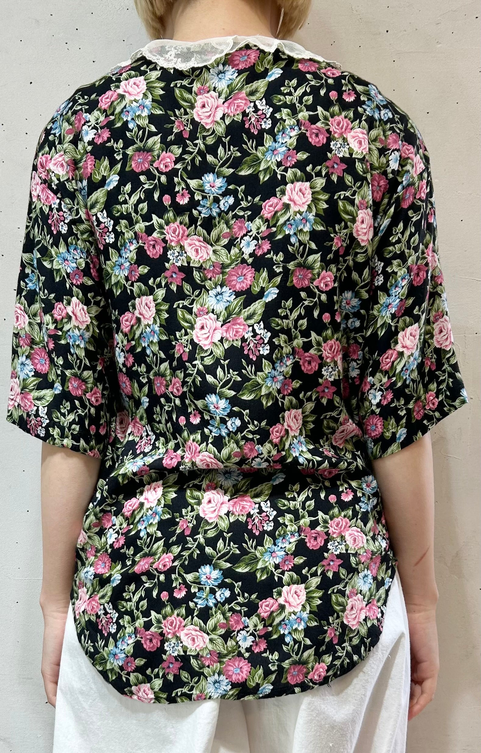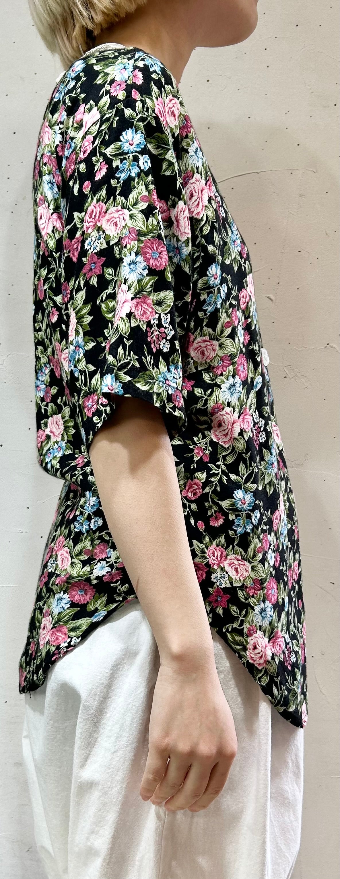 size:表記不明、肩幅47cm、身幅46cm、袖丈23.5cm、着丈66cm