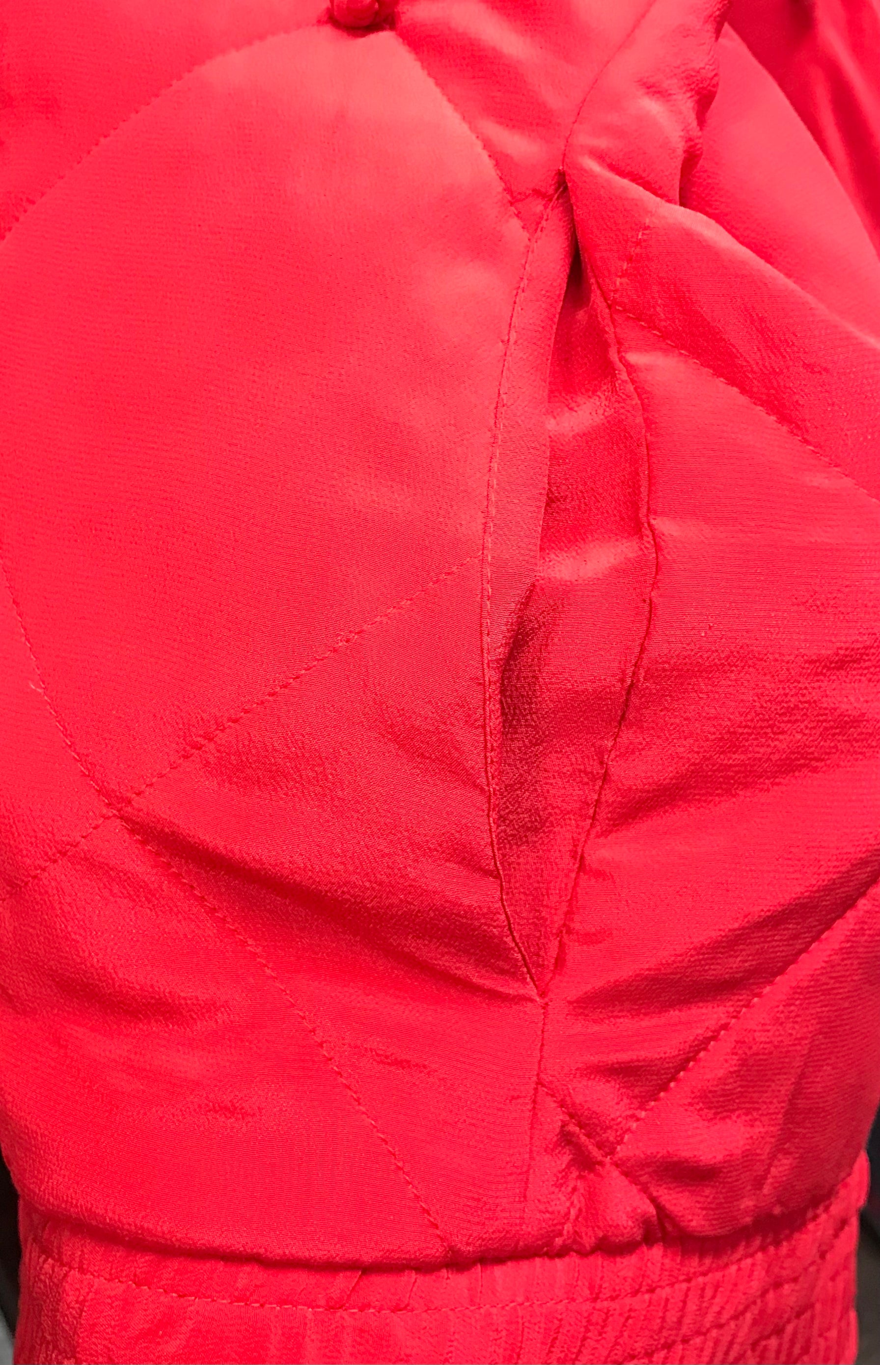 こちらはキルティングに結び目のアクセントが施された遊び心の詰まった1着。
