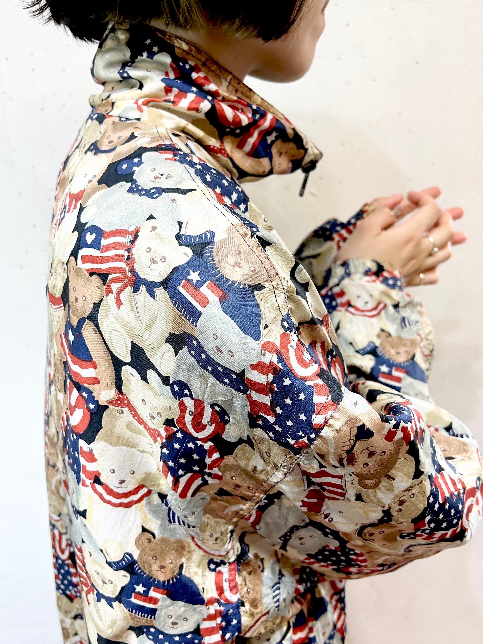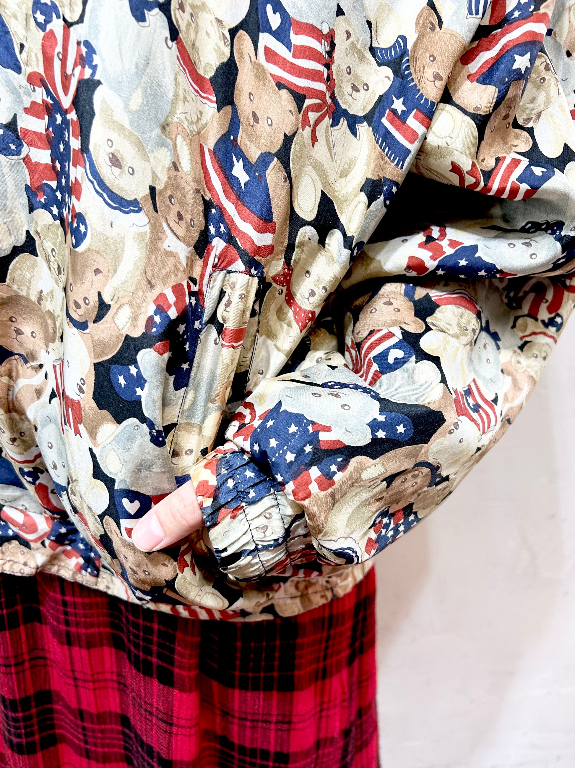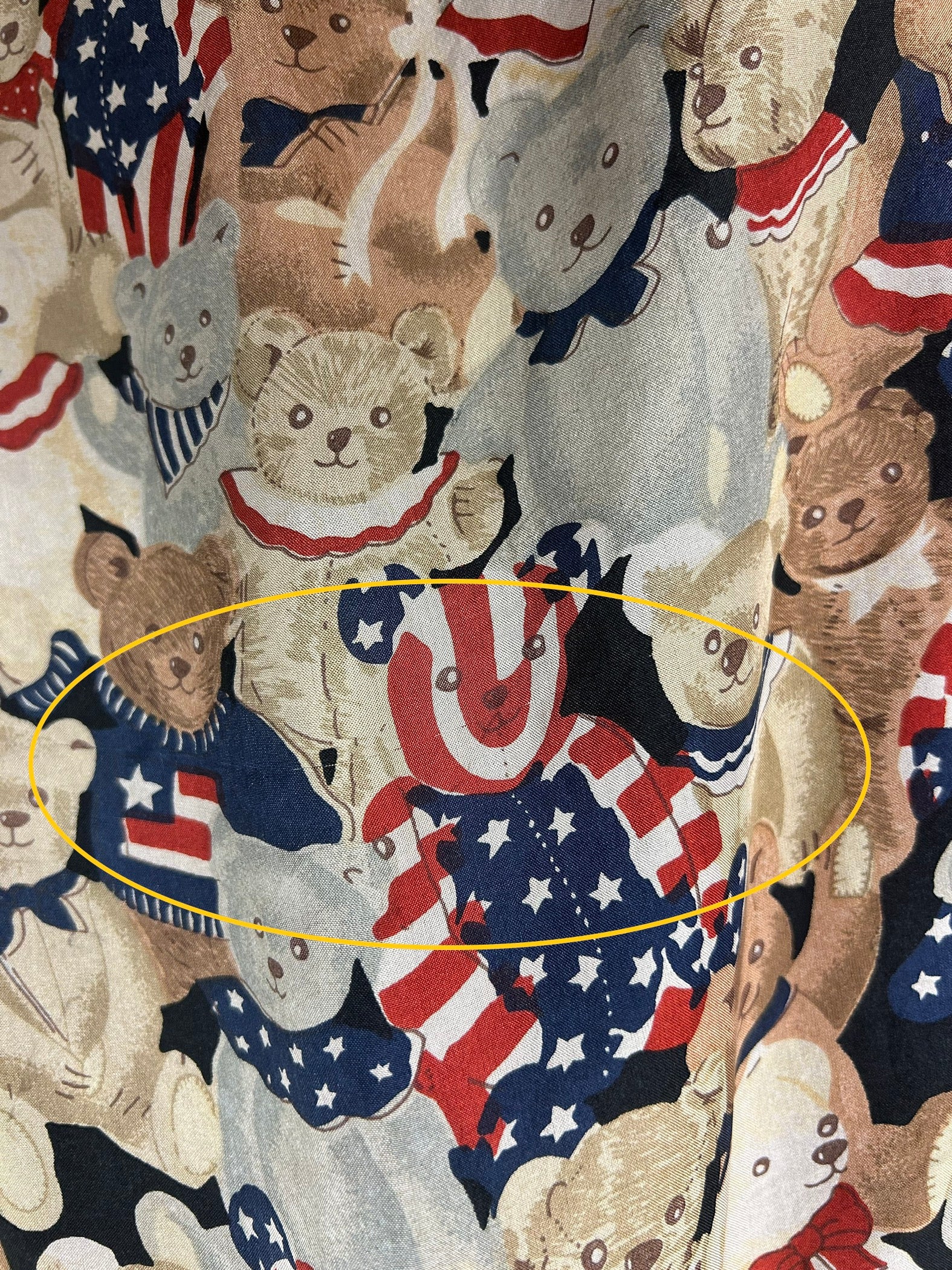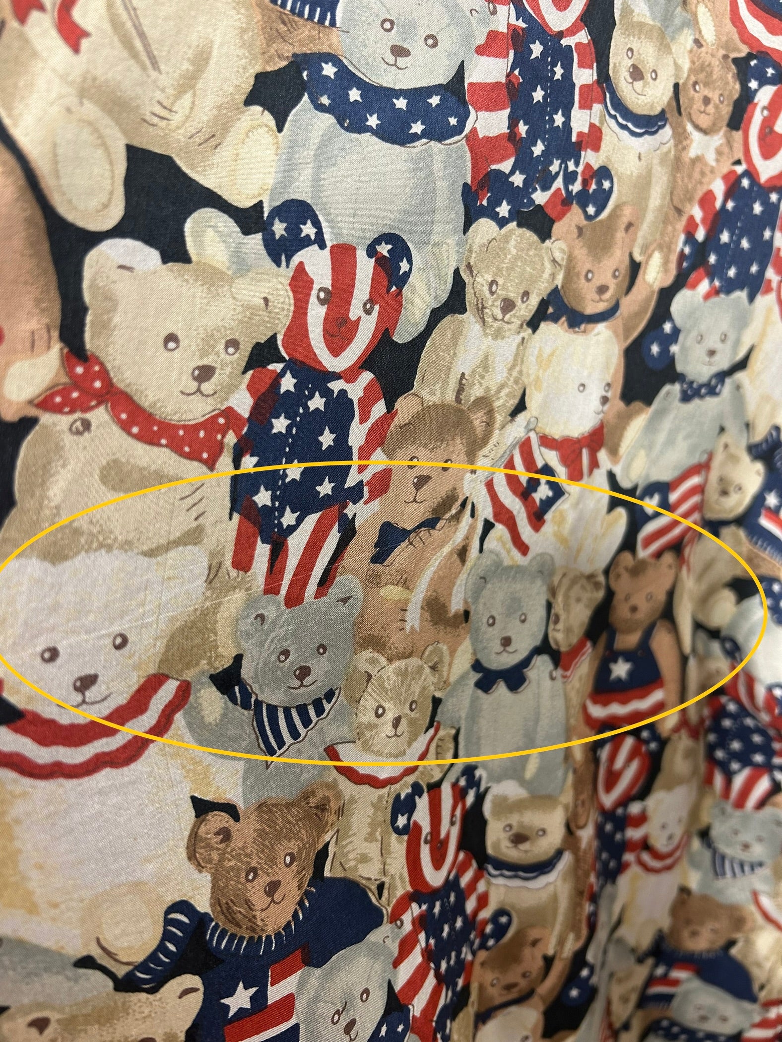 星条旗の服や柄のテディベアがぎっしりとプリントされ360度どこから見てもお楽しみいただけます。