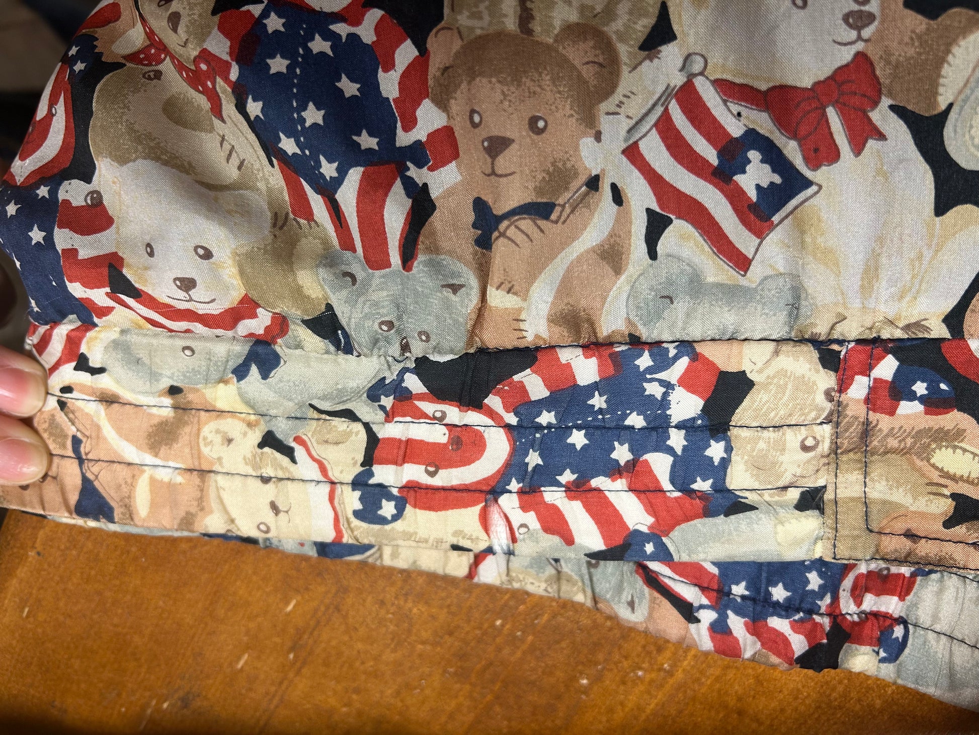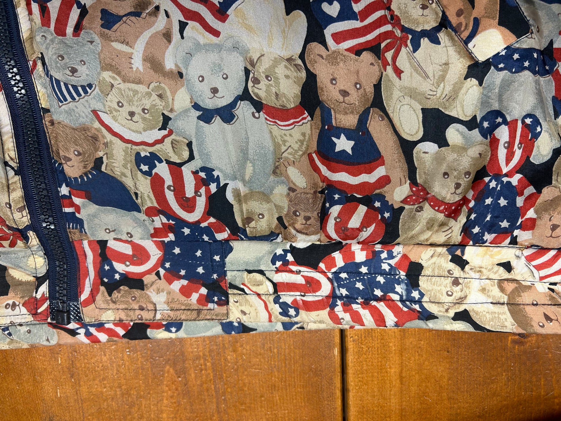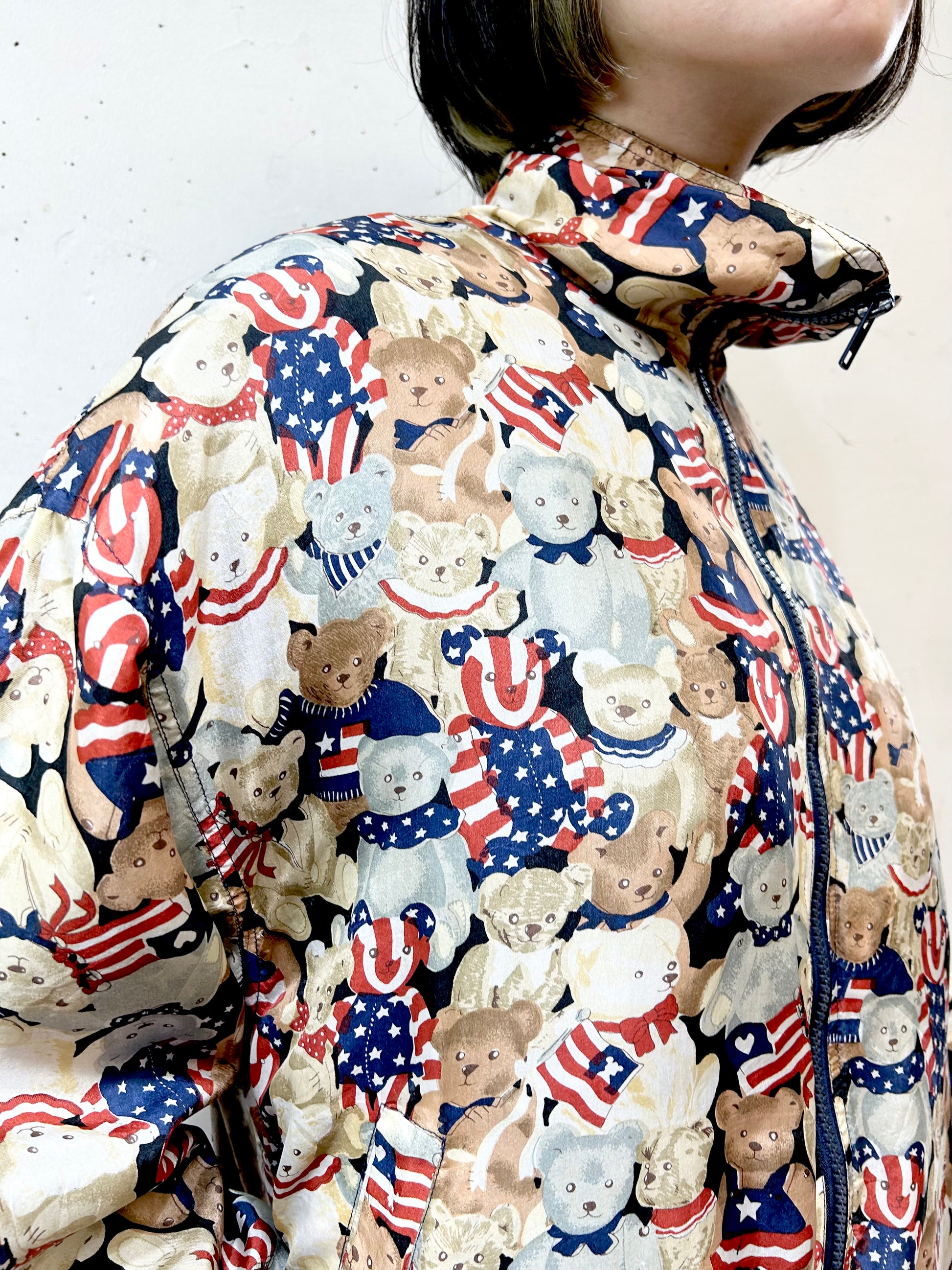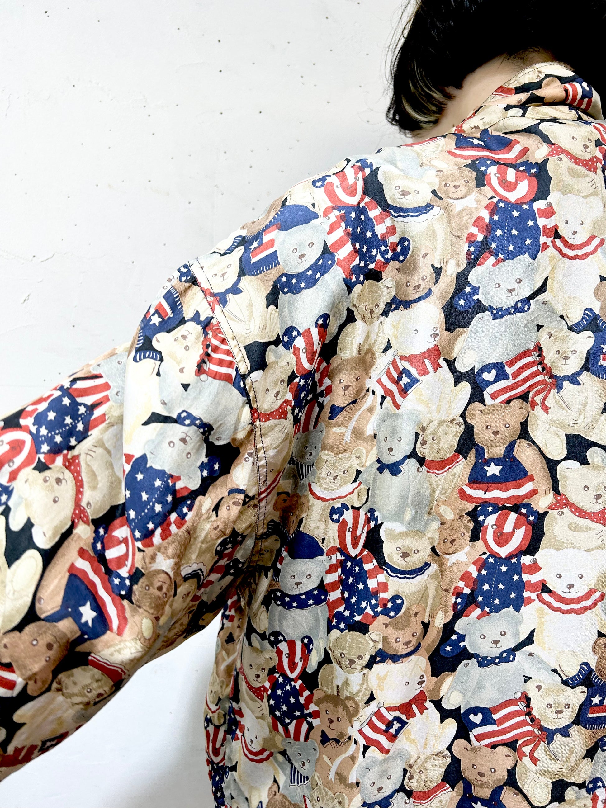 星条旗の服や柄のテディベアがぎっしりとプリントされ360度どこから見てもお楽しみいただけます。