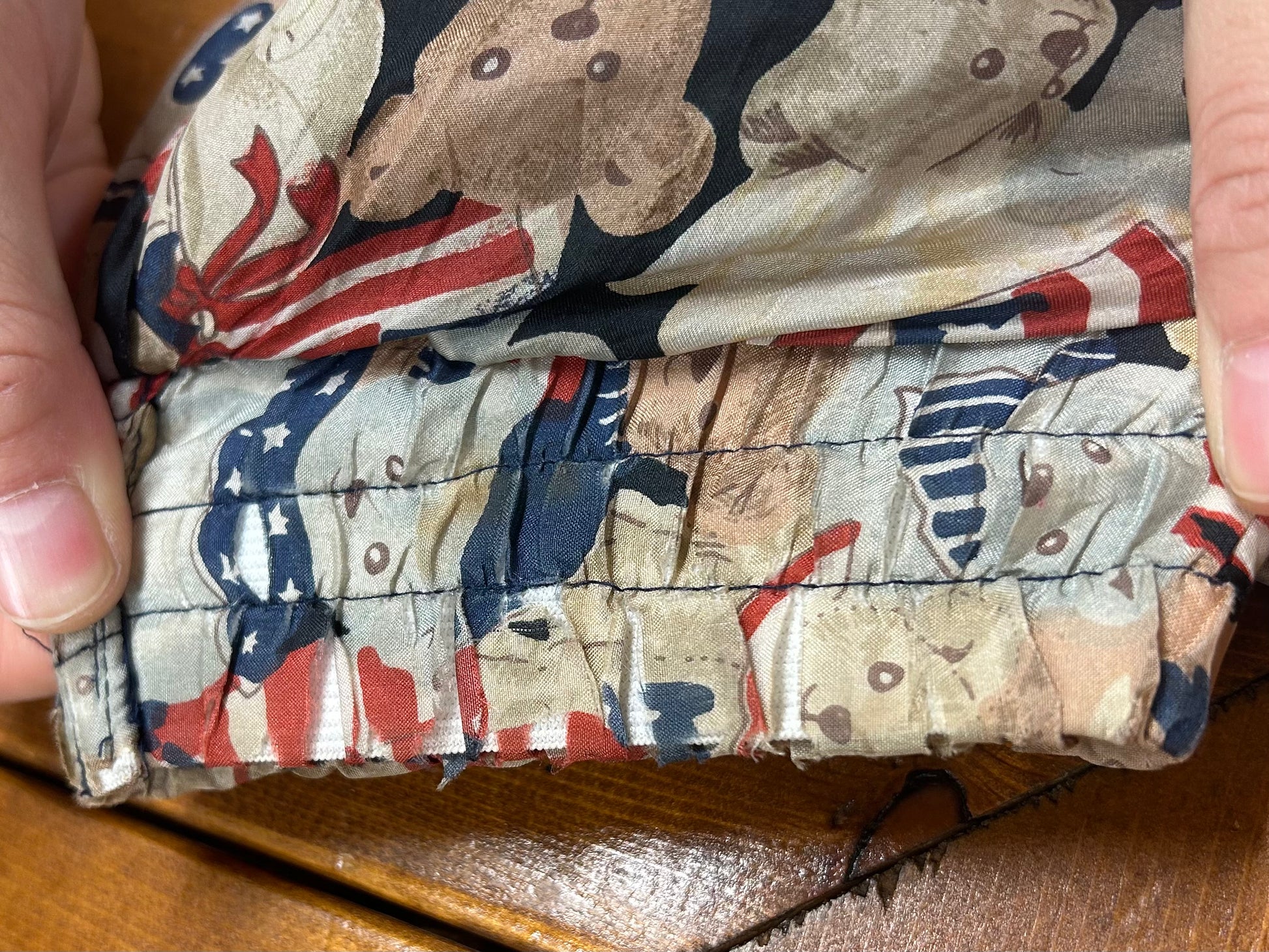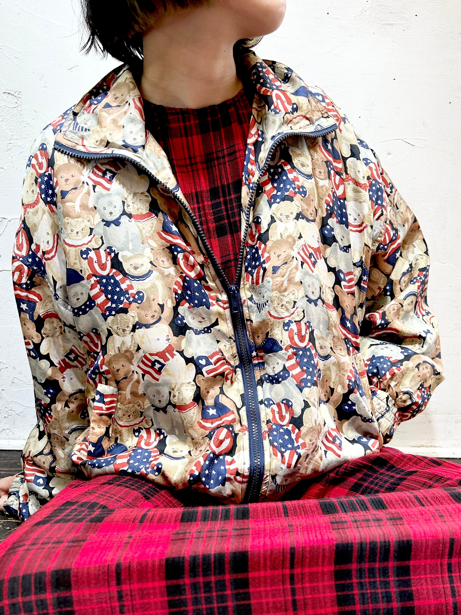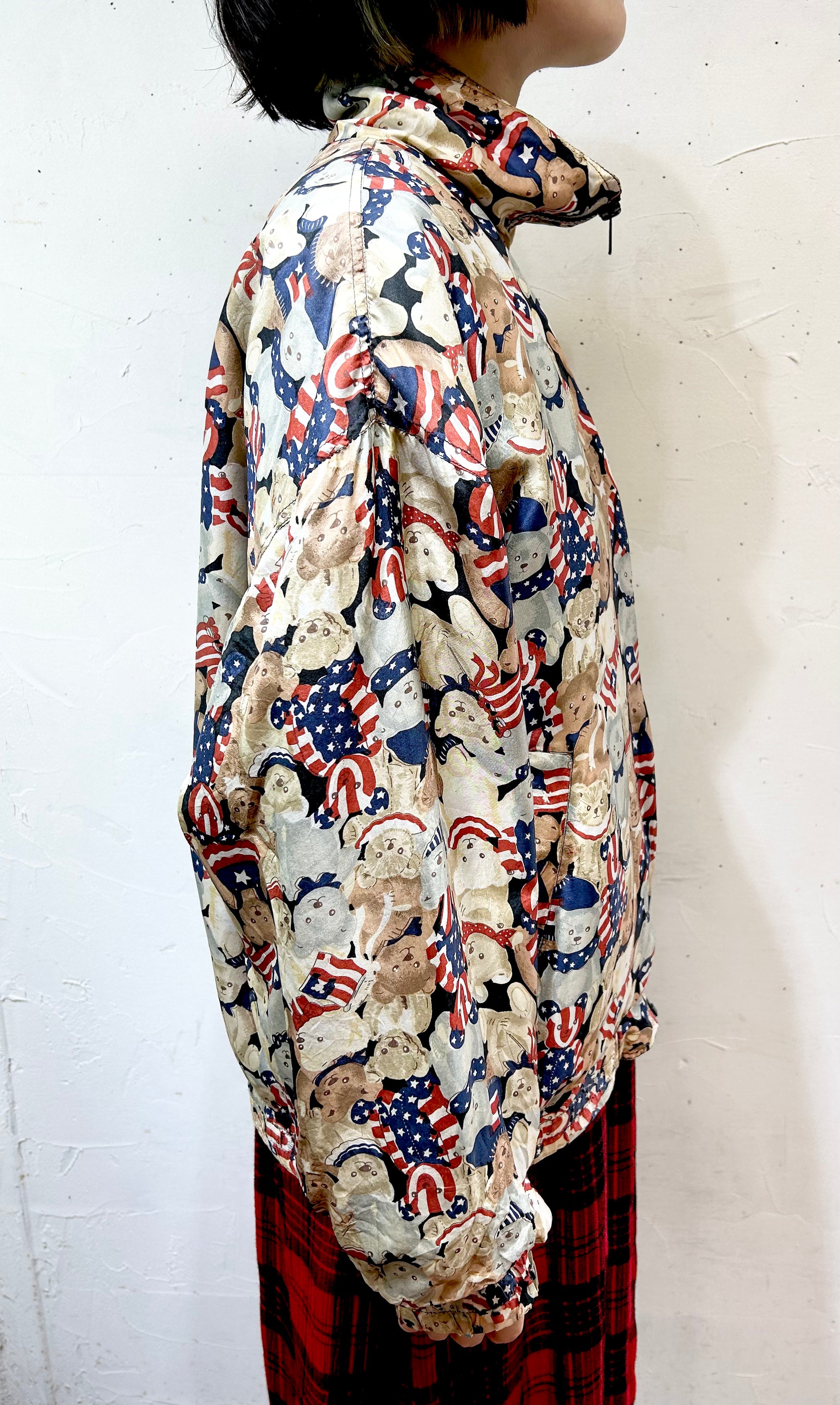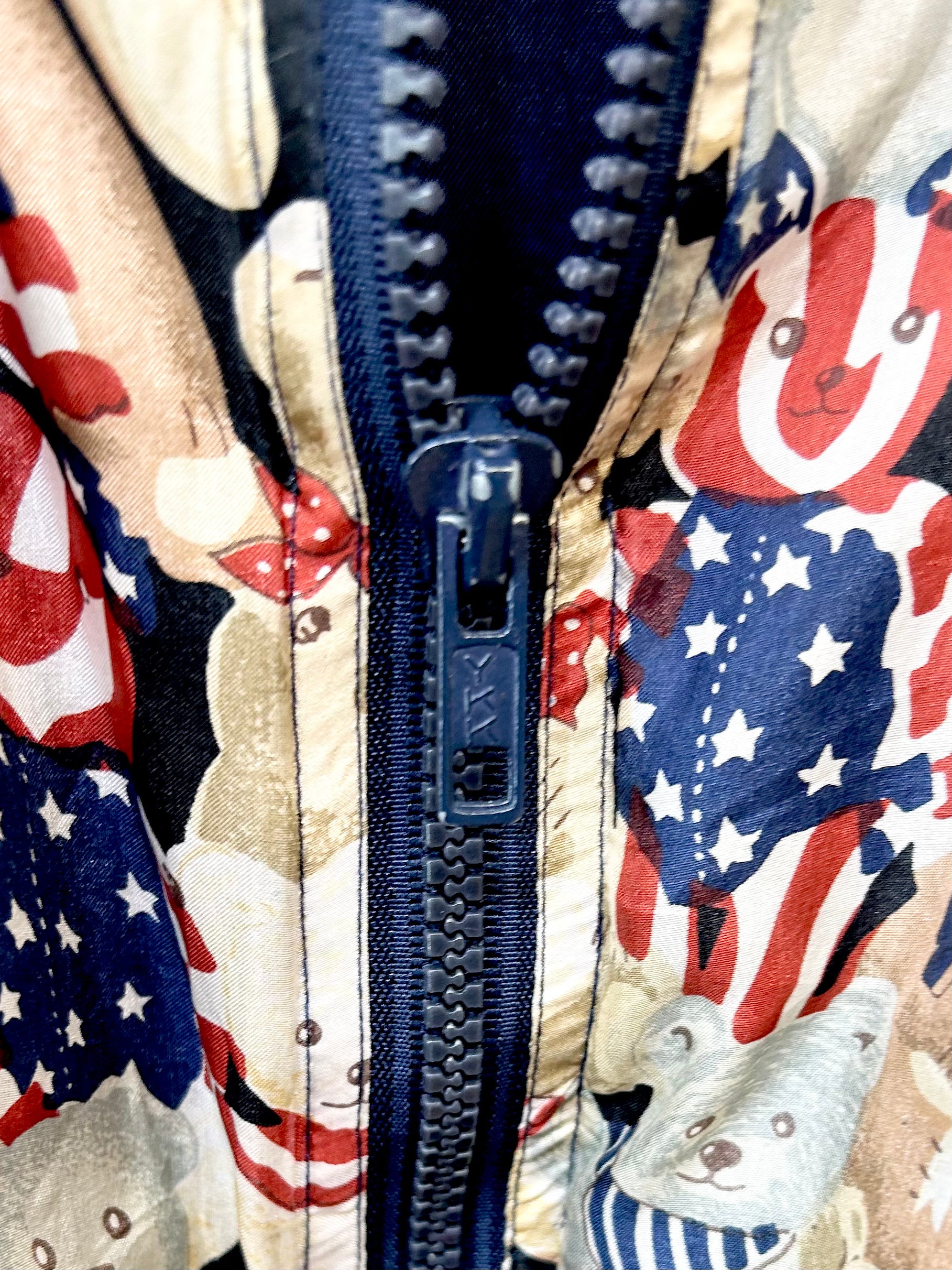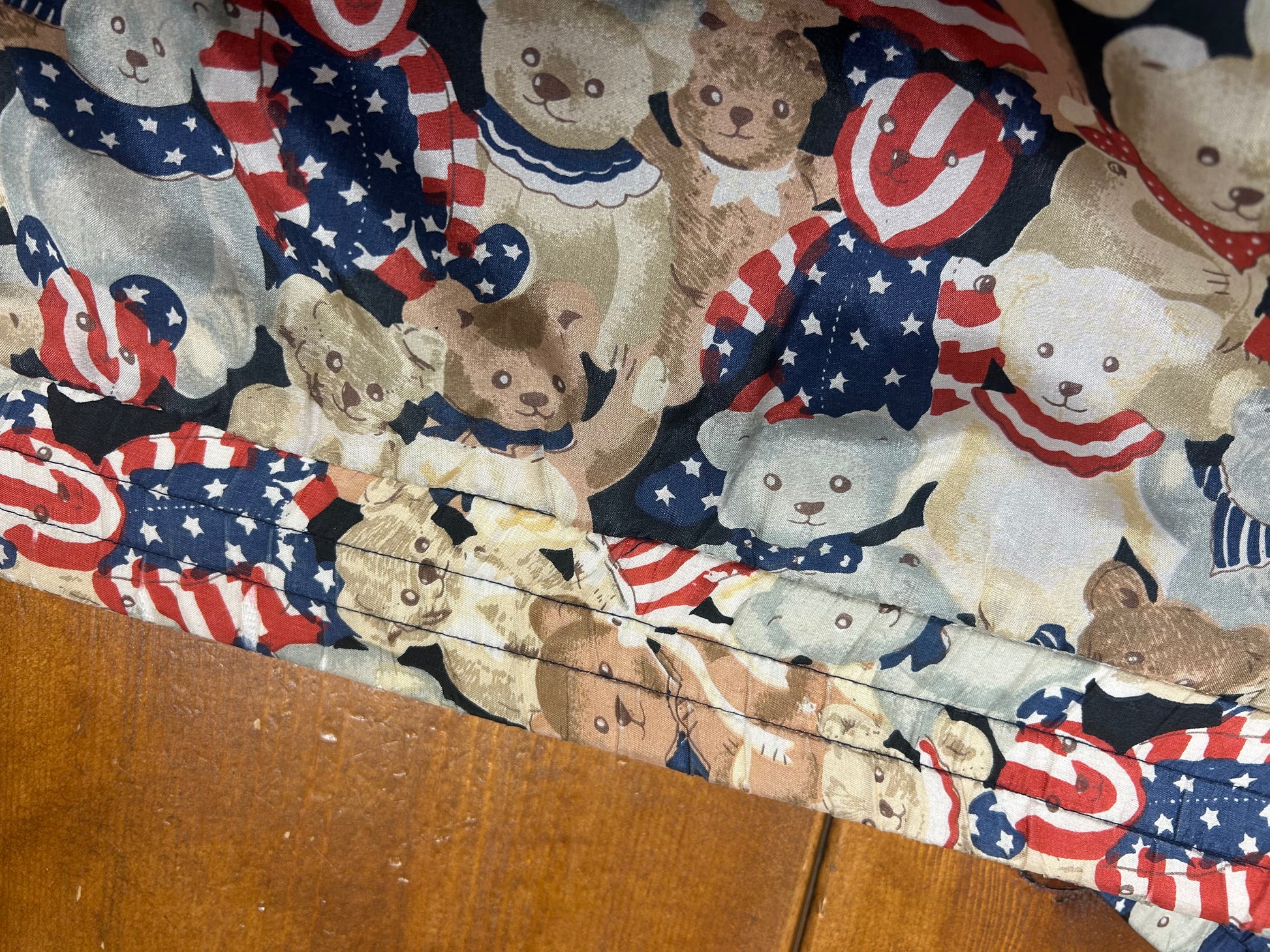 星条旗の服や柄のテディベアがぎっしりとプリントされ360度どこから見てもお楽しみいただけます。