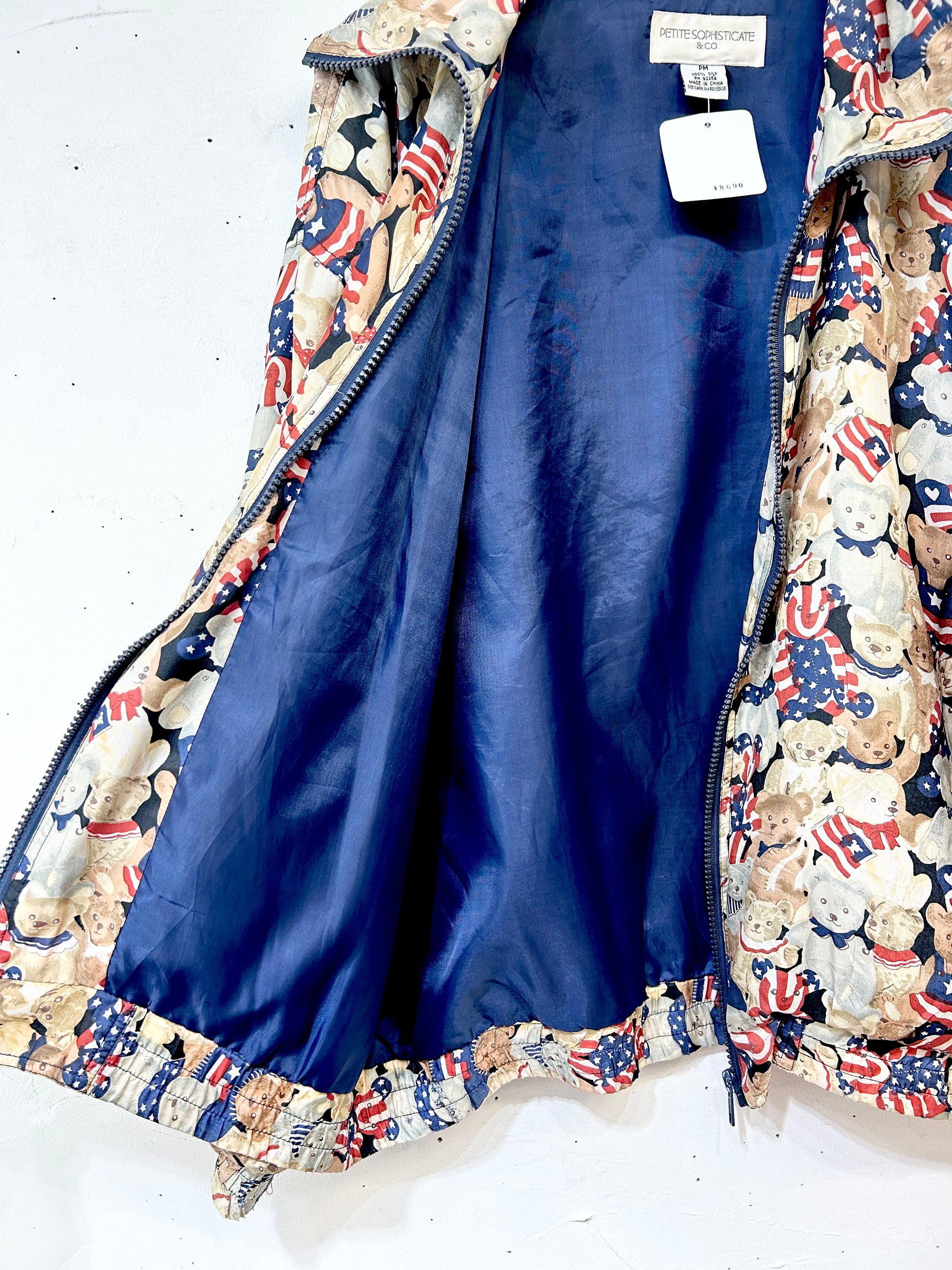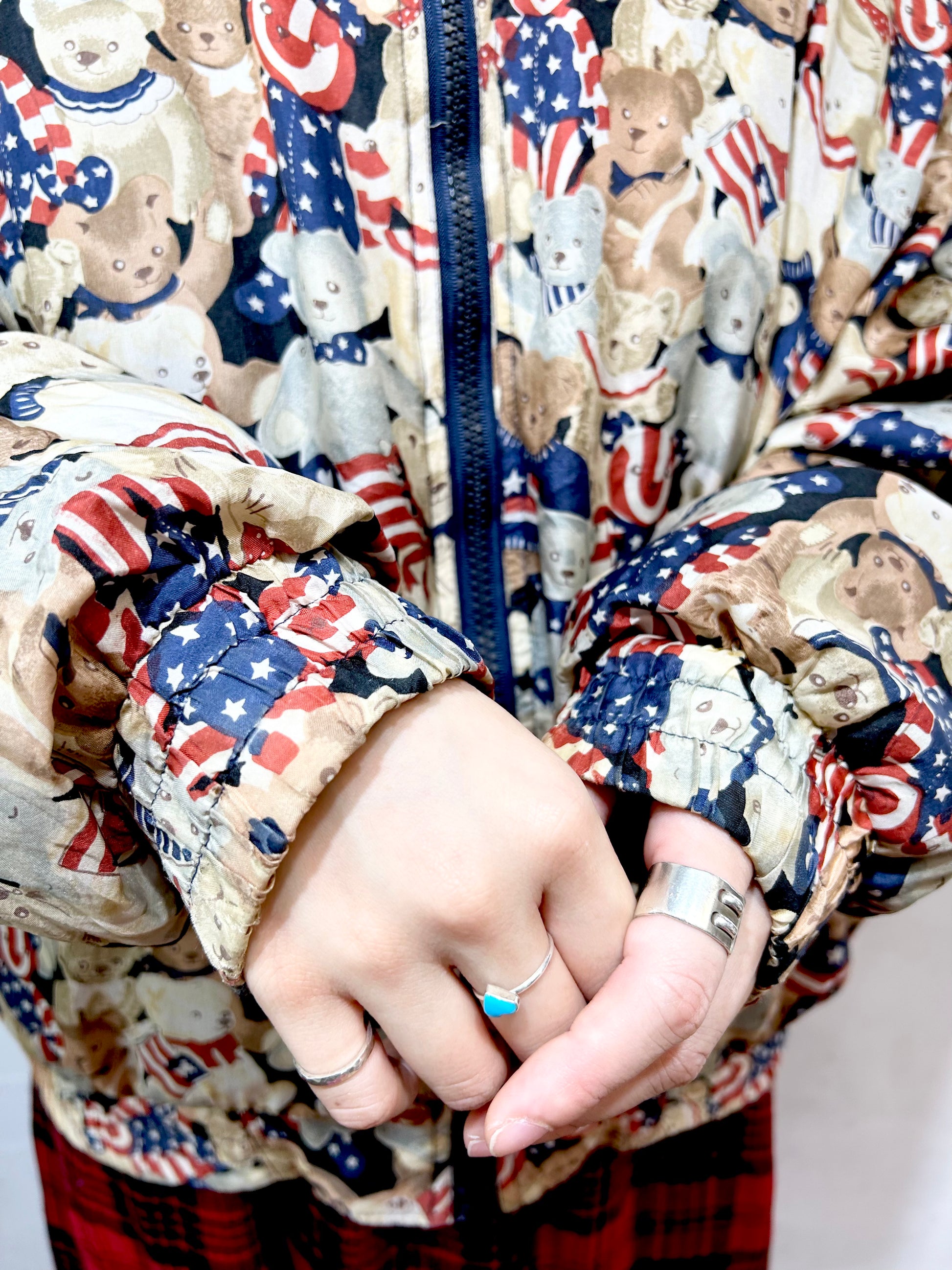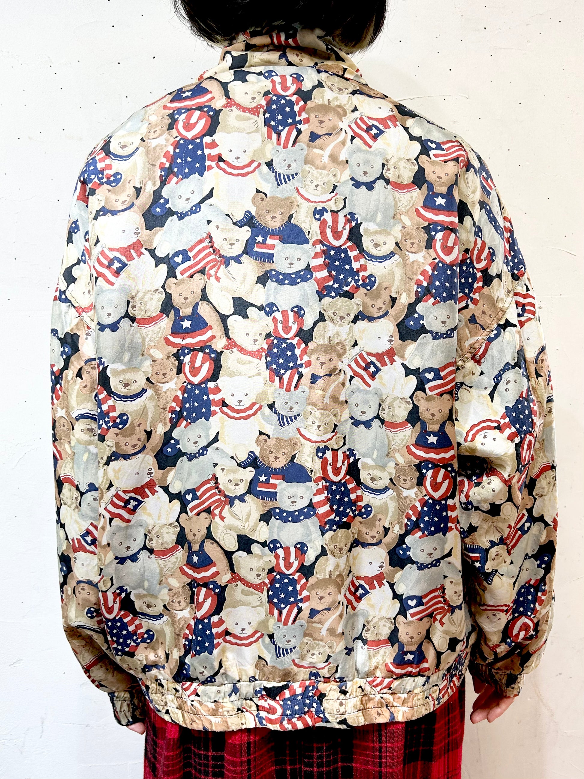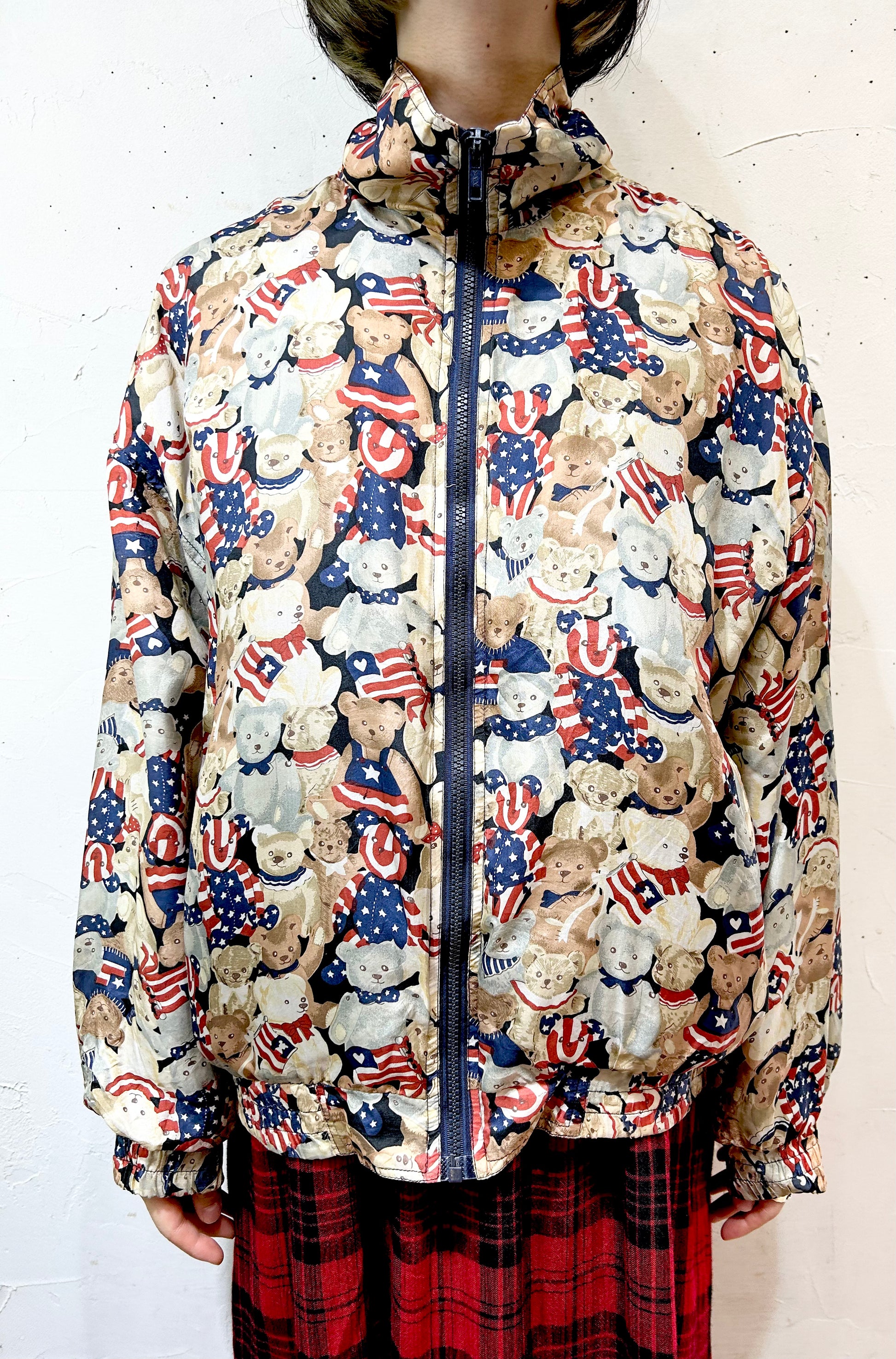 星条旗の服や柄のテディベアがぎっしりとプリントされ360度どこから見てもお楽しみいただけます。