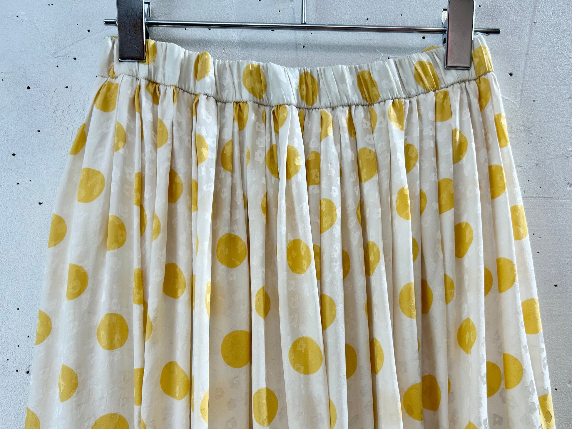 柔らかなイエローカラーのドットプリントが素敵な一着。