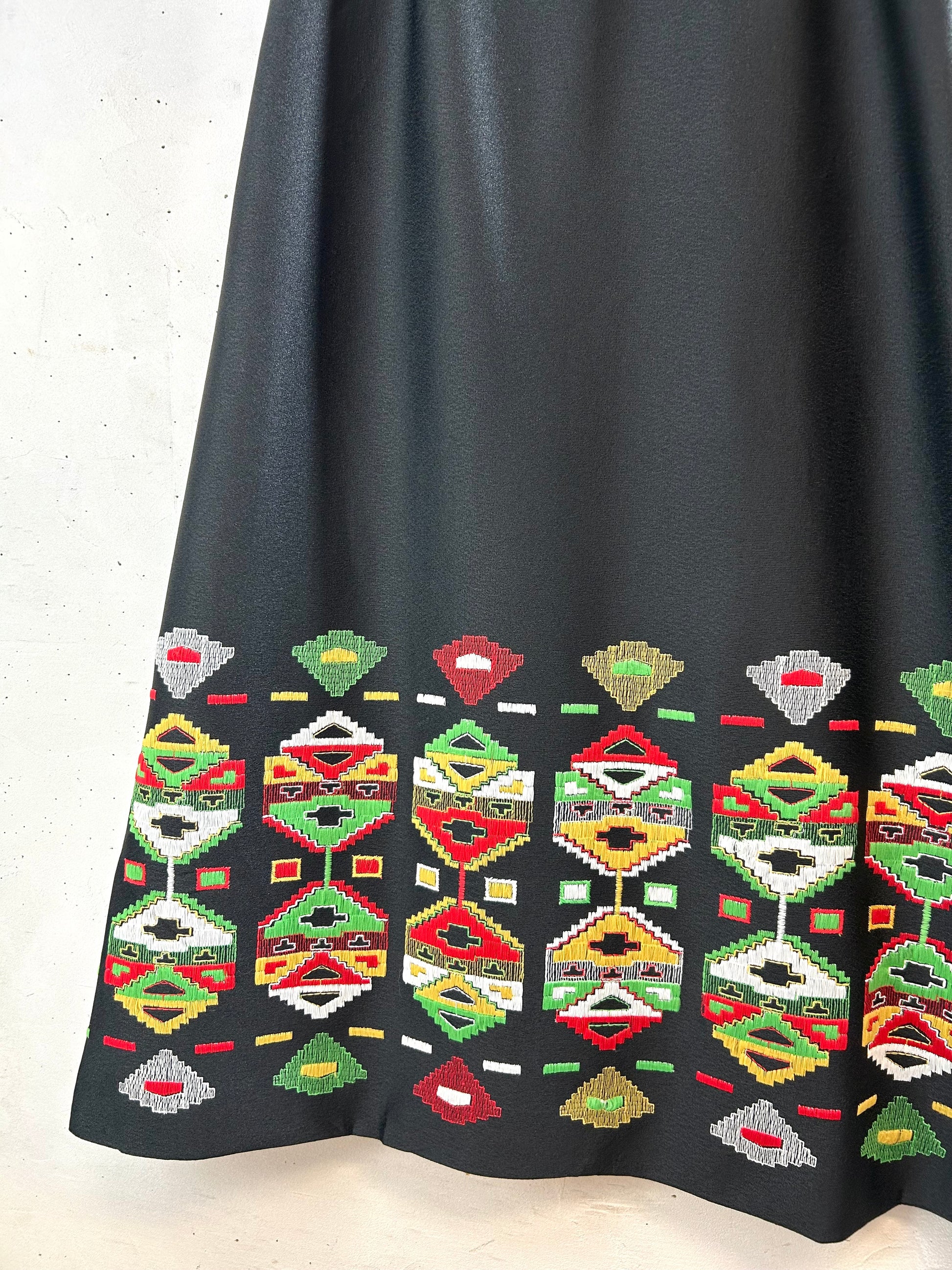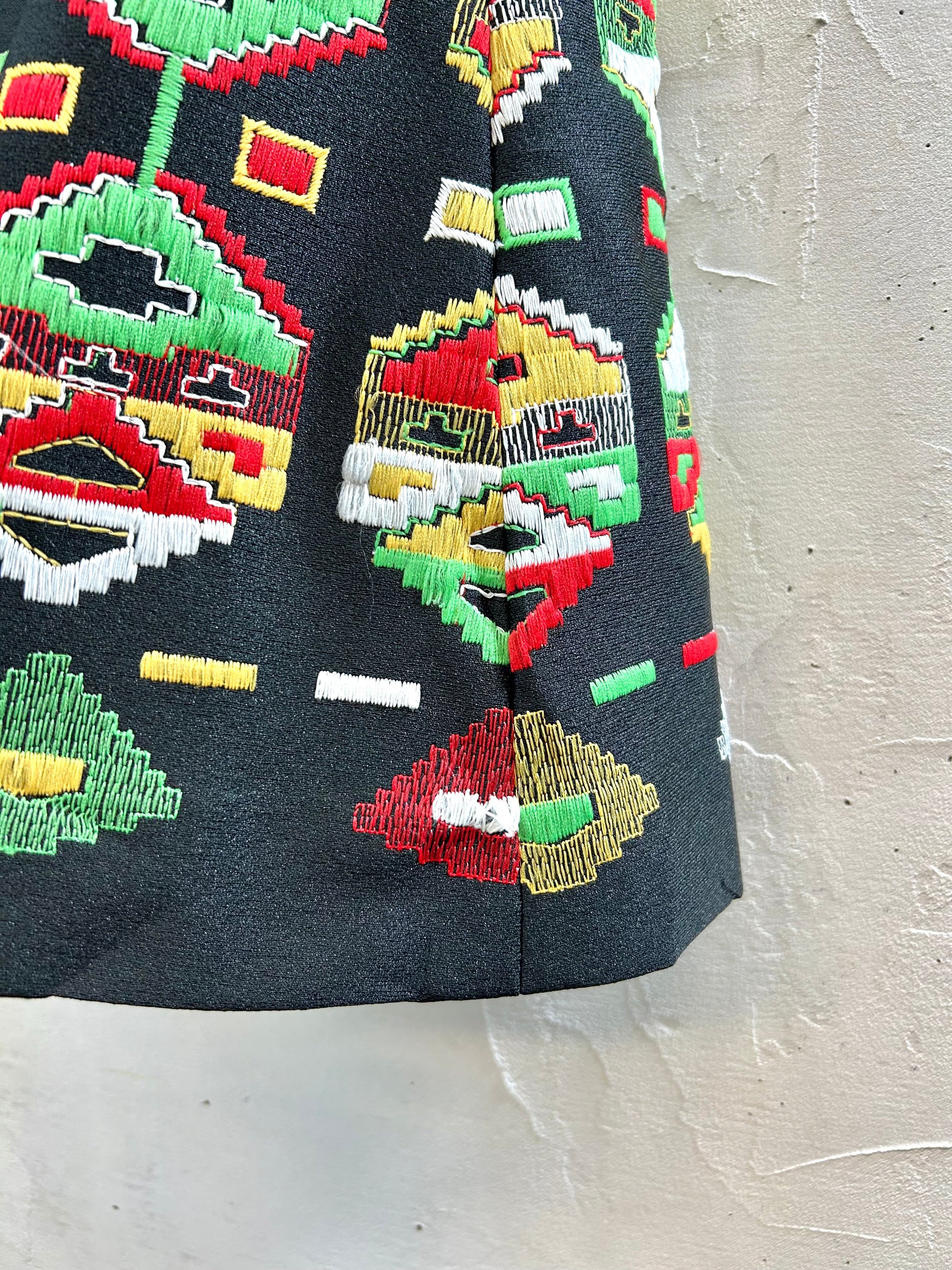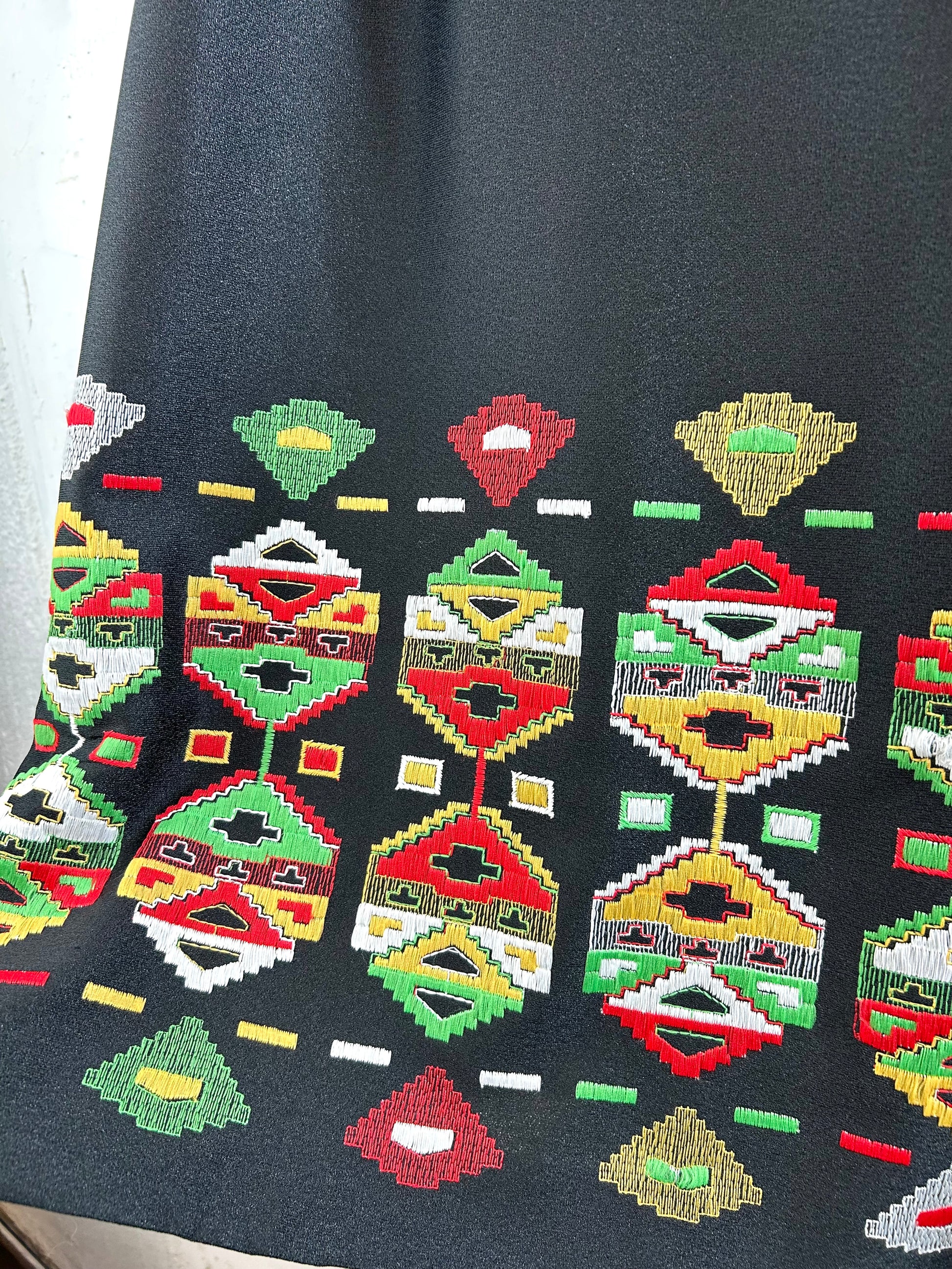 ストレッチの効いたブラックボディに刺繍が施されたネイティブな雰囲気のある一着。