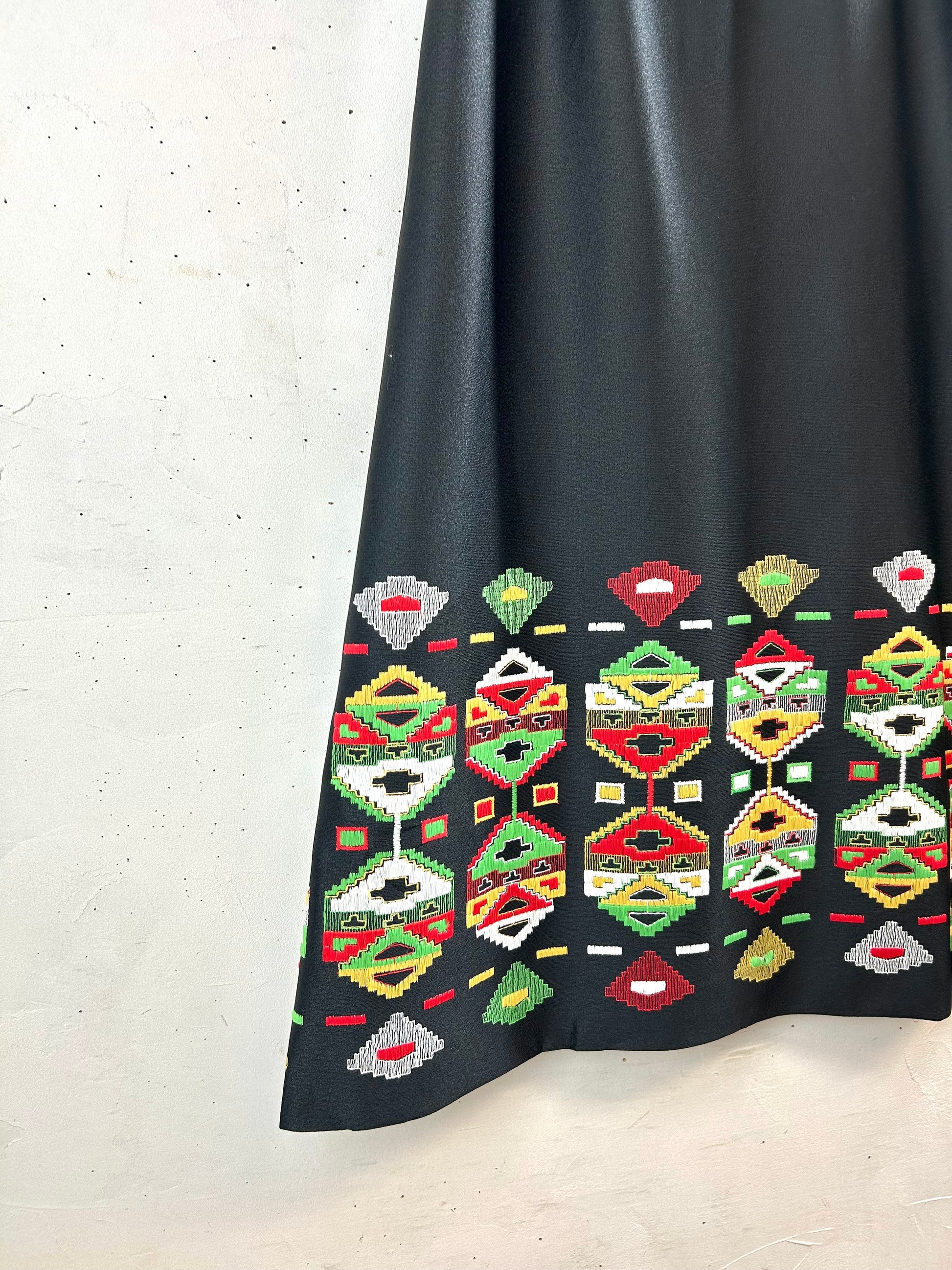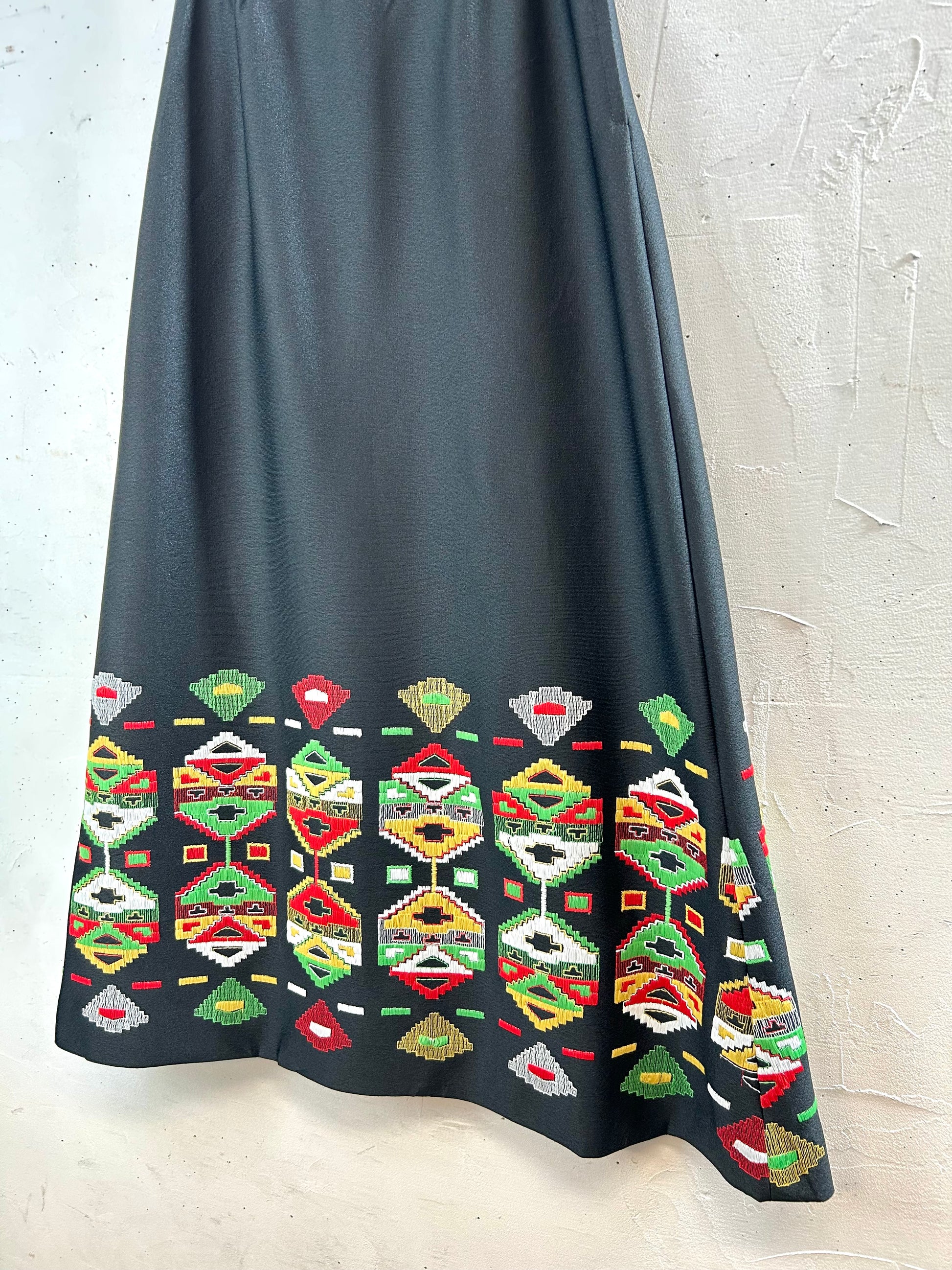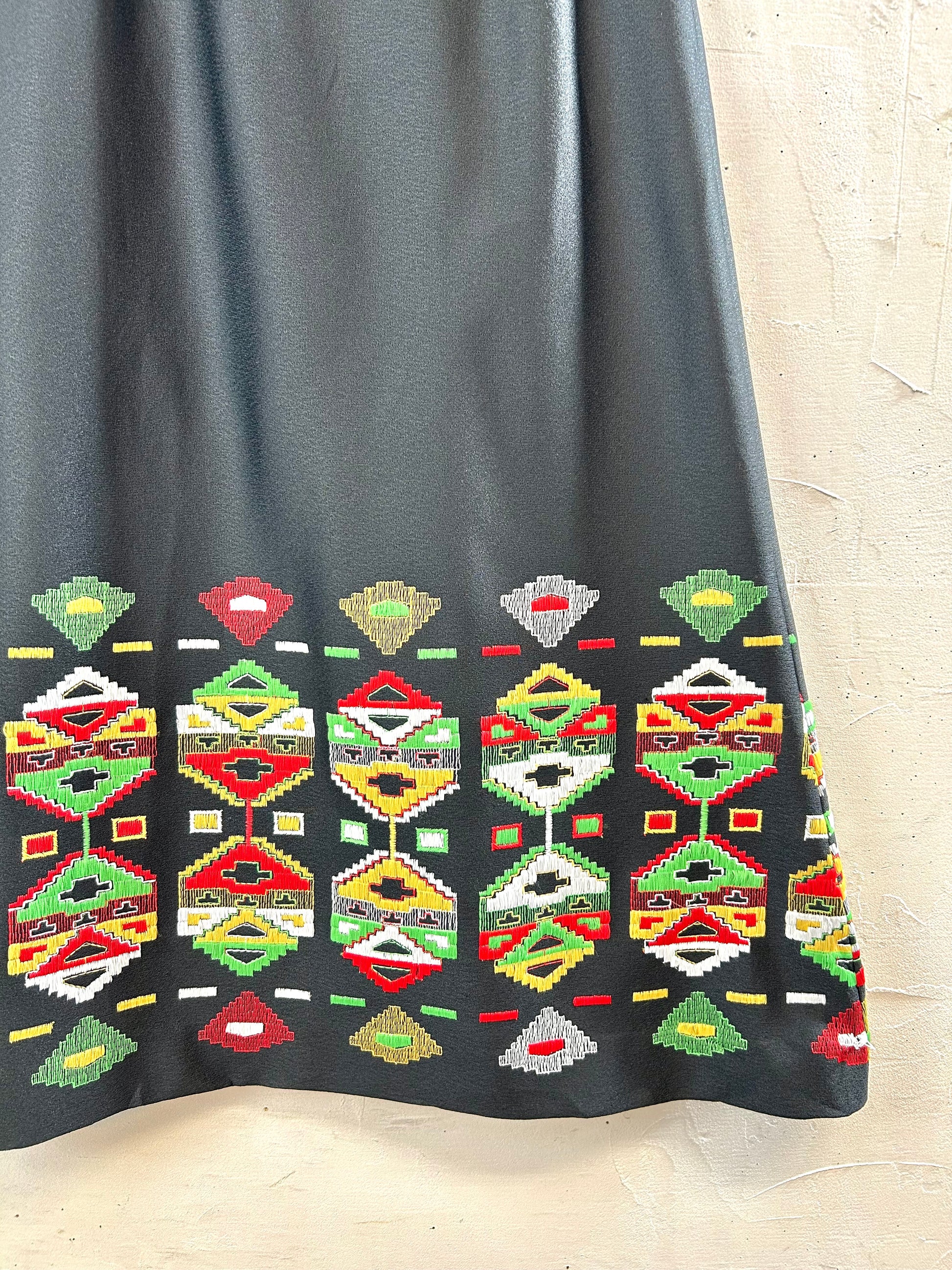 ストレッチの効いたブラックボディに刺繍が施されたネイティブな雰囲気のある一着。