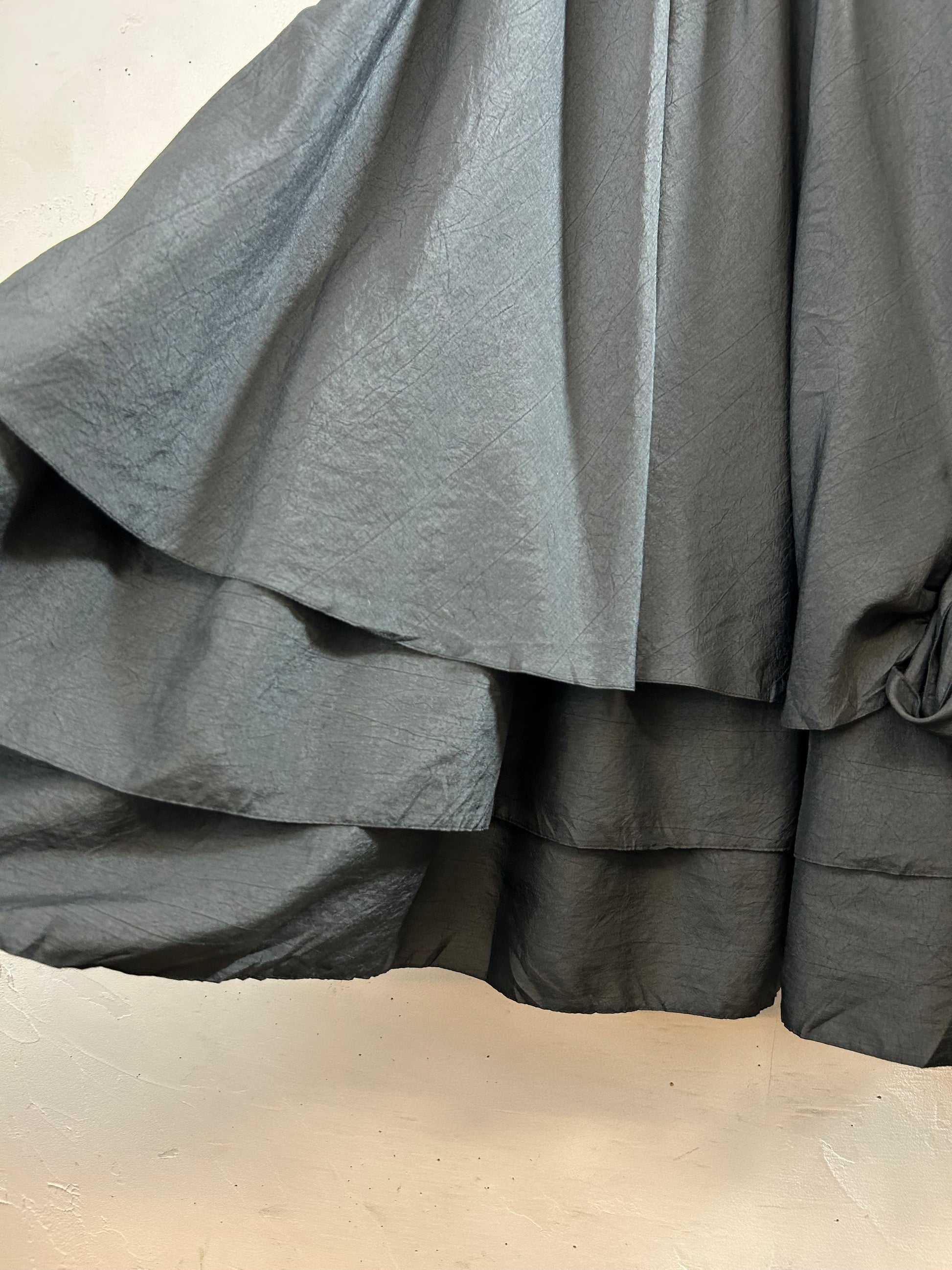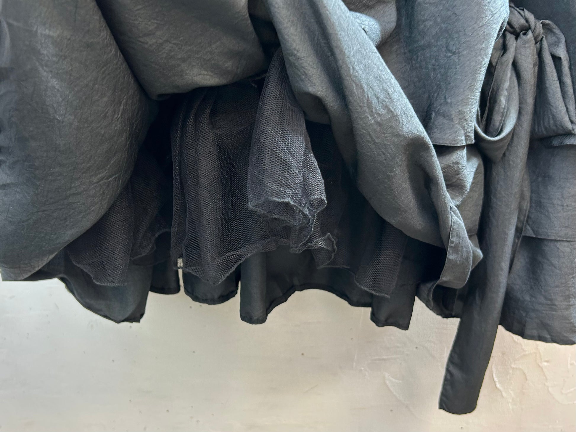 シャリ感のある生地を贅沢に使用したボリューミーなシルエットが可愛い一着。