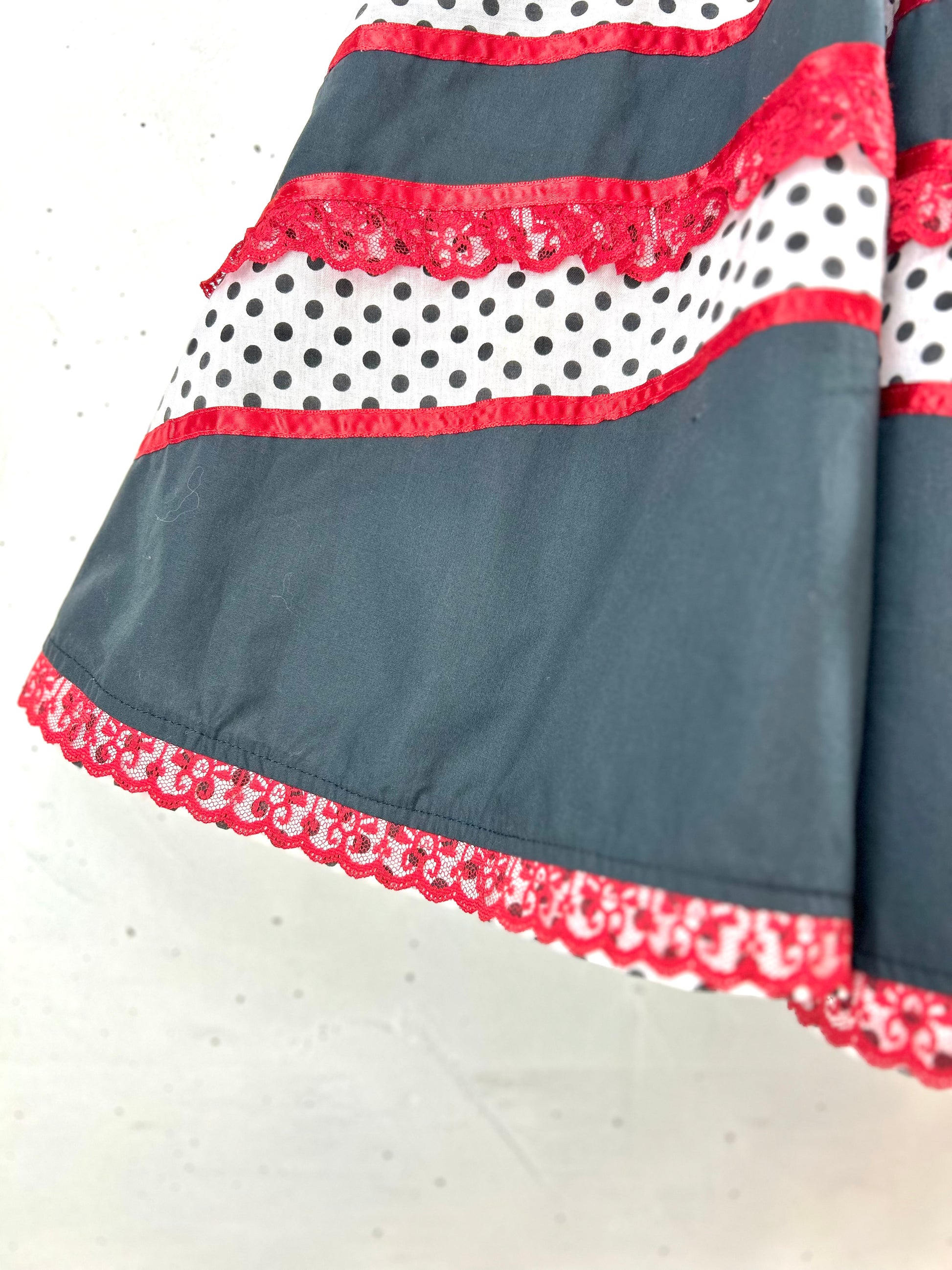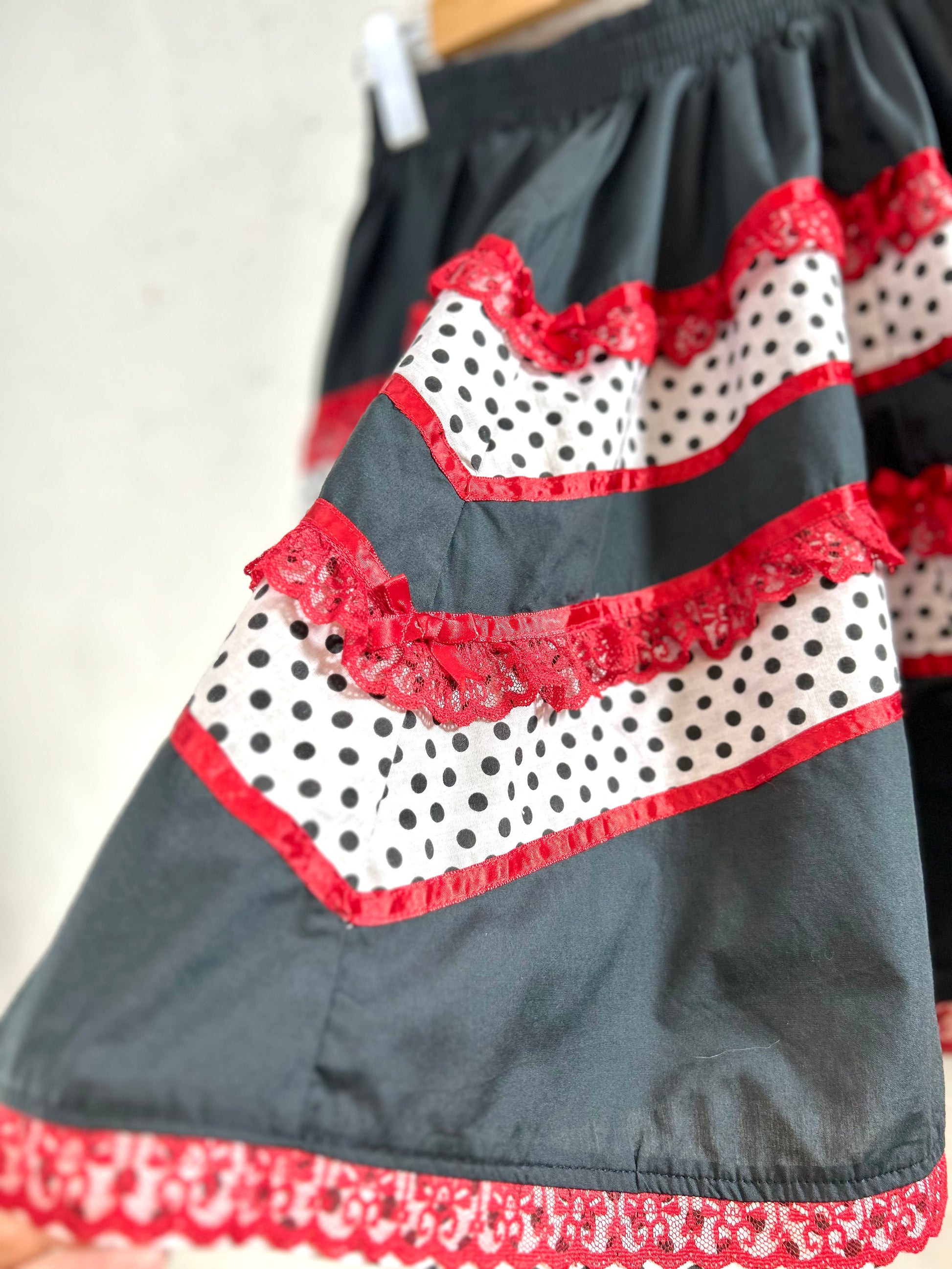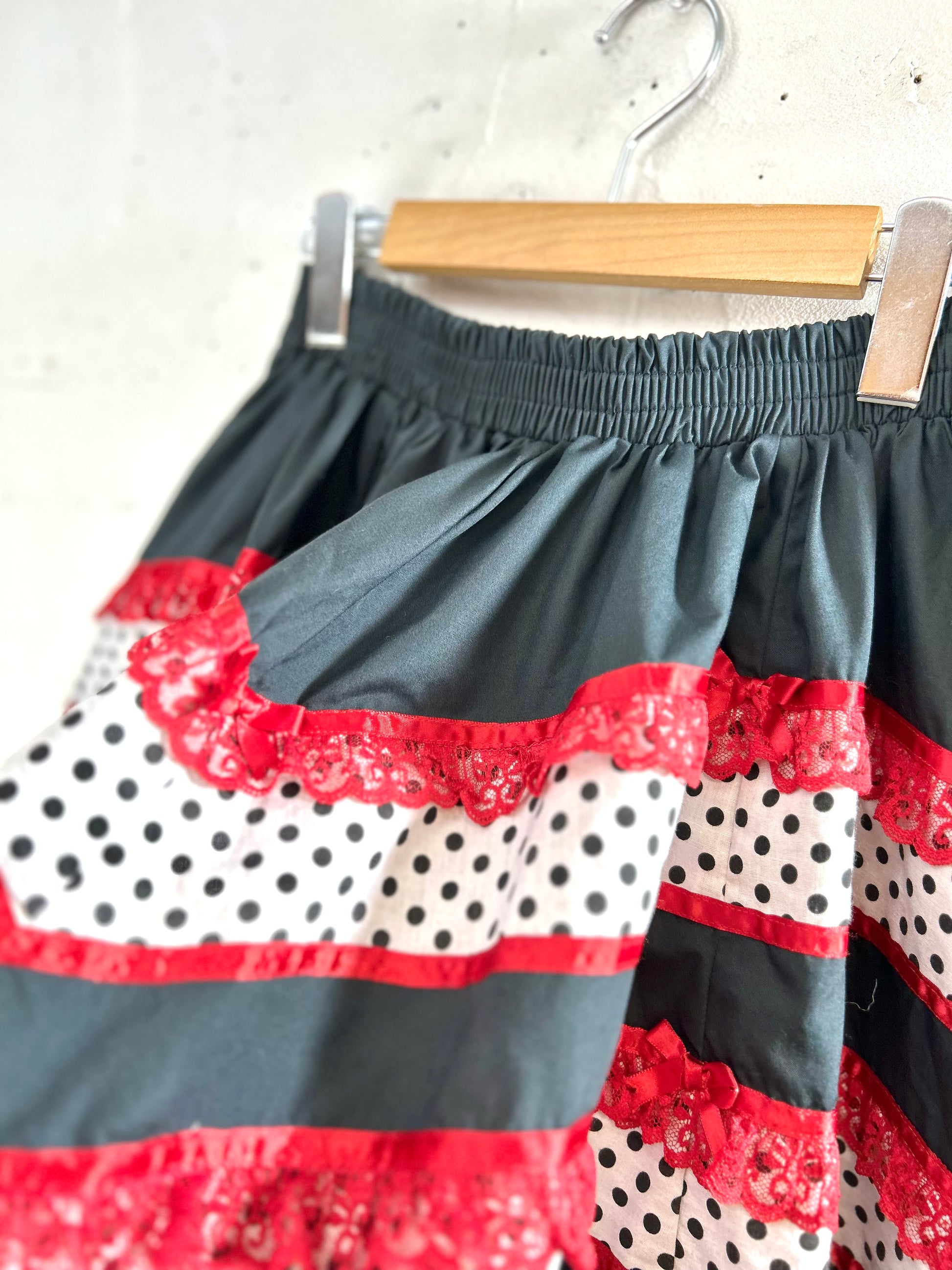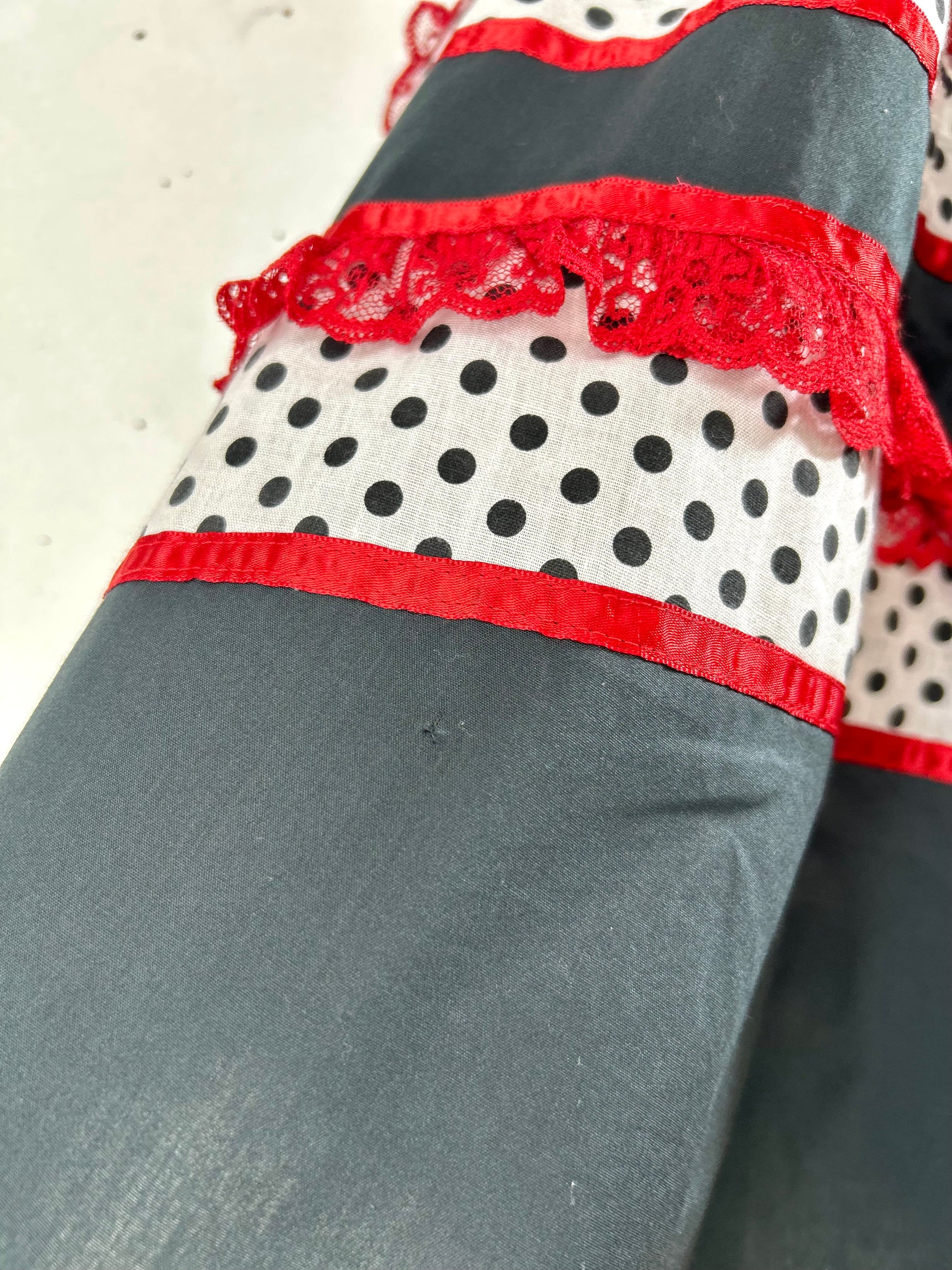 コンディション:生地特有の節、裾のドット生地にレースの赤い色移りがございますが、隠れてしまっている為、ビンテージにご理解頂いている方でしたら比較的程度の良いアイテムかと思われます。