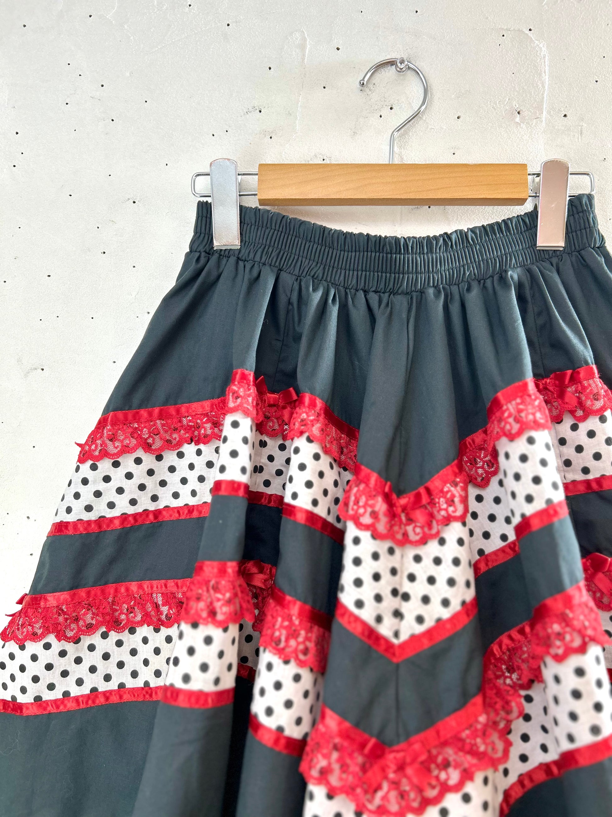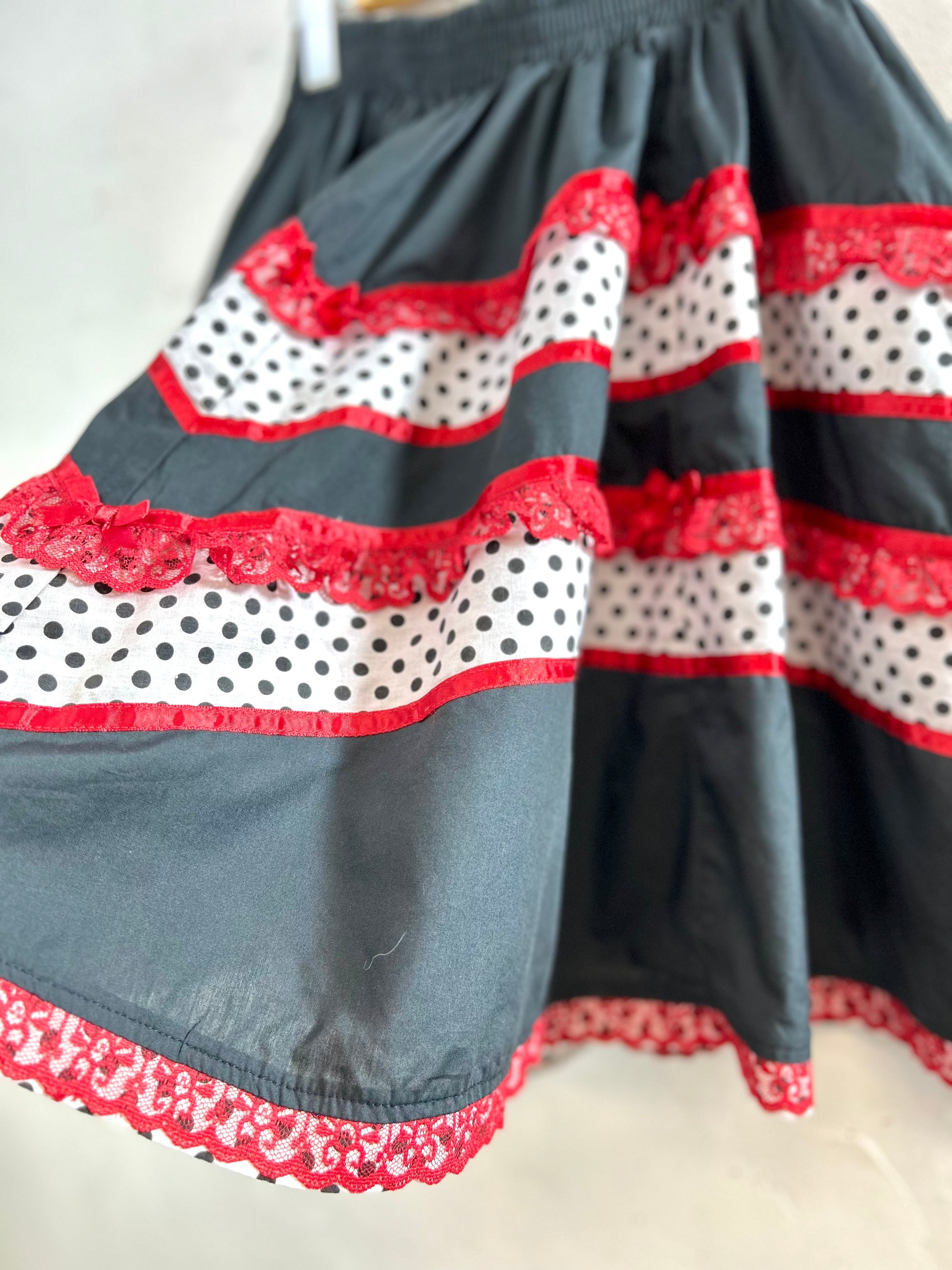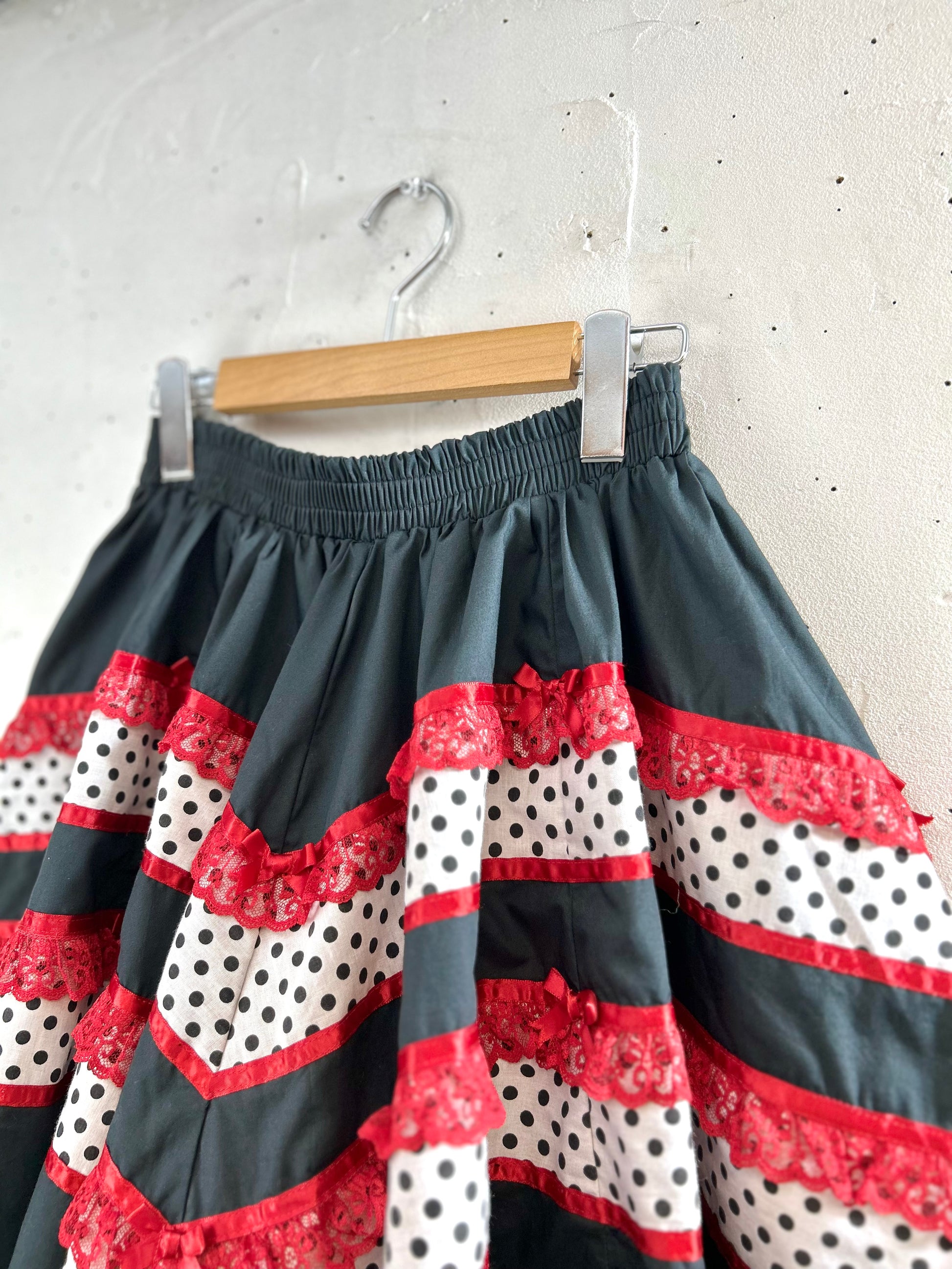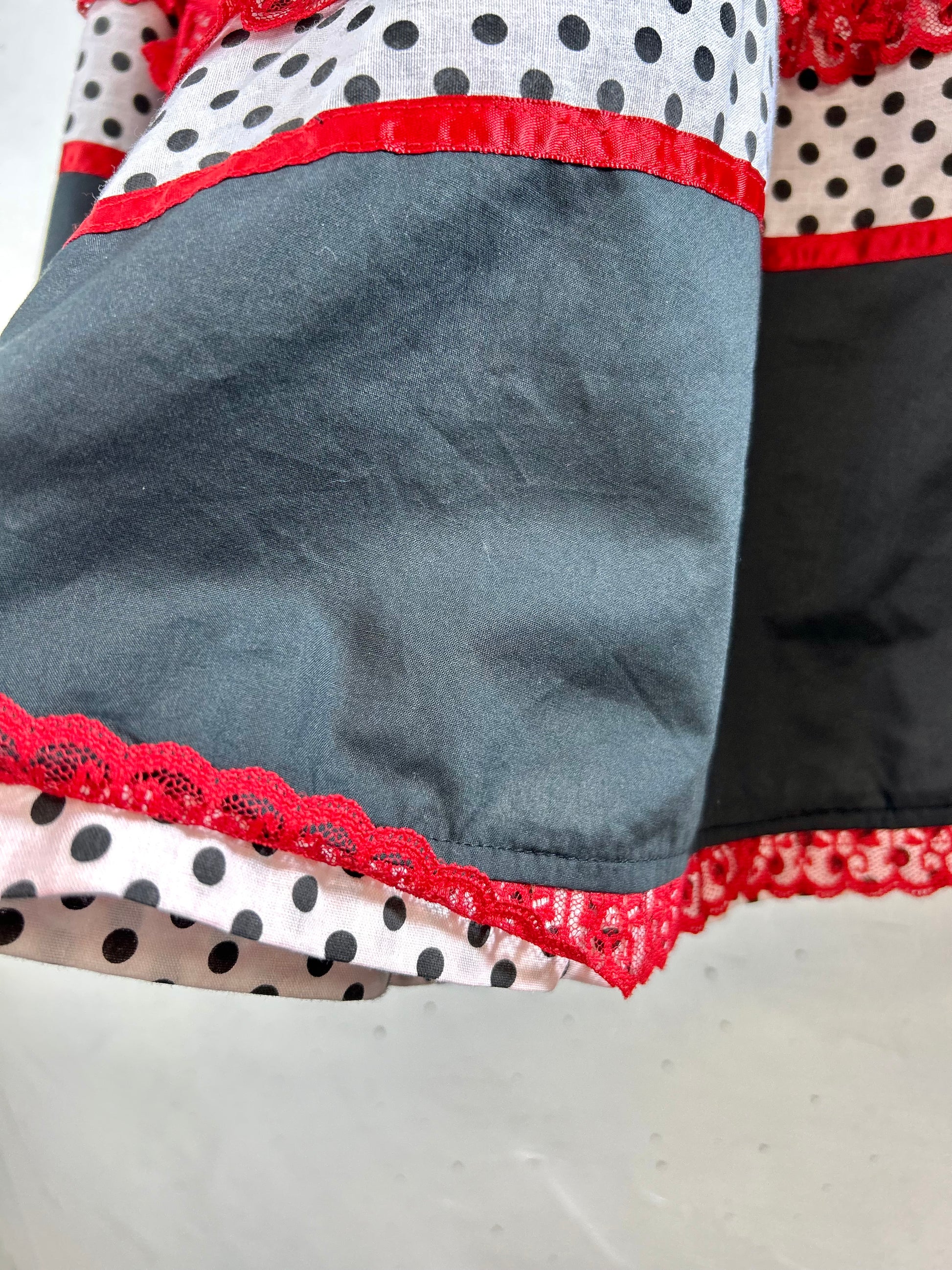 コンディション:生地特有の節、裾のドット生地にレースの赤い色移りがございますが、隠れてしまっている為、ビンテージにご理解頂いている方でしたら比較的程度の良いアイテムかと思われます。