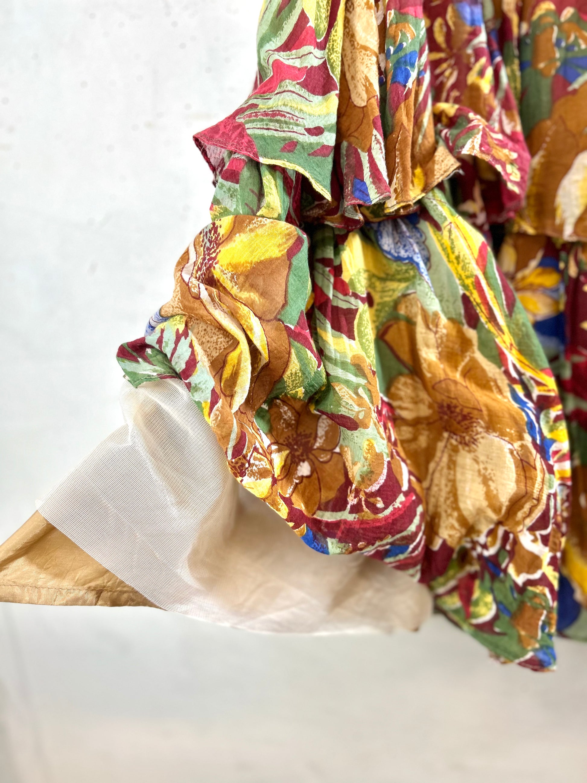 重ねられたシアー感のある柔らかな素材の、風になびく優しい広がりが素敵な1着。