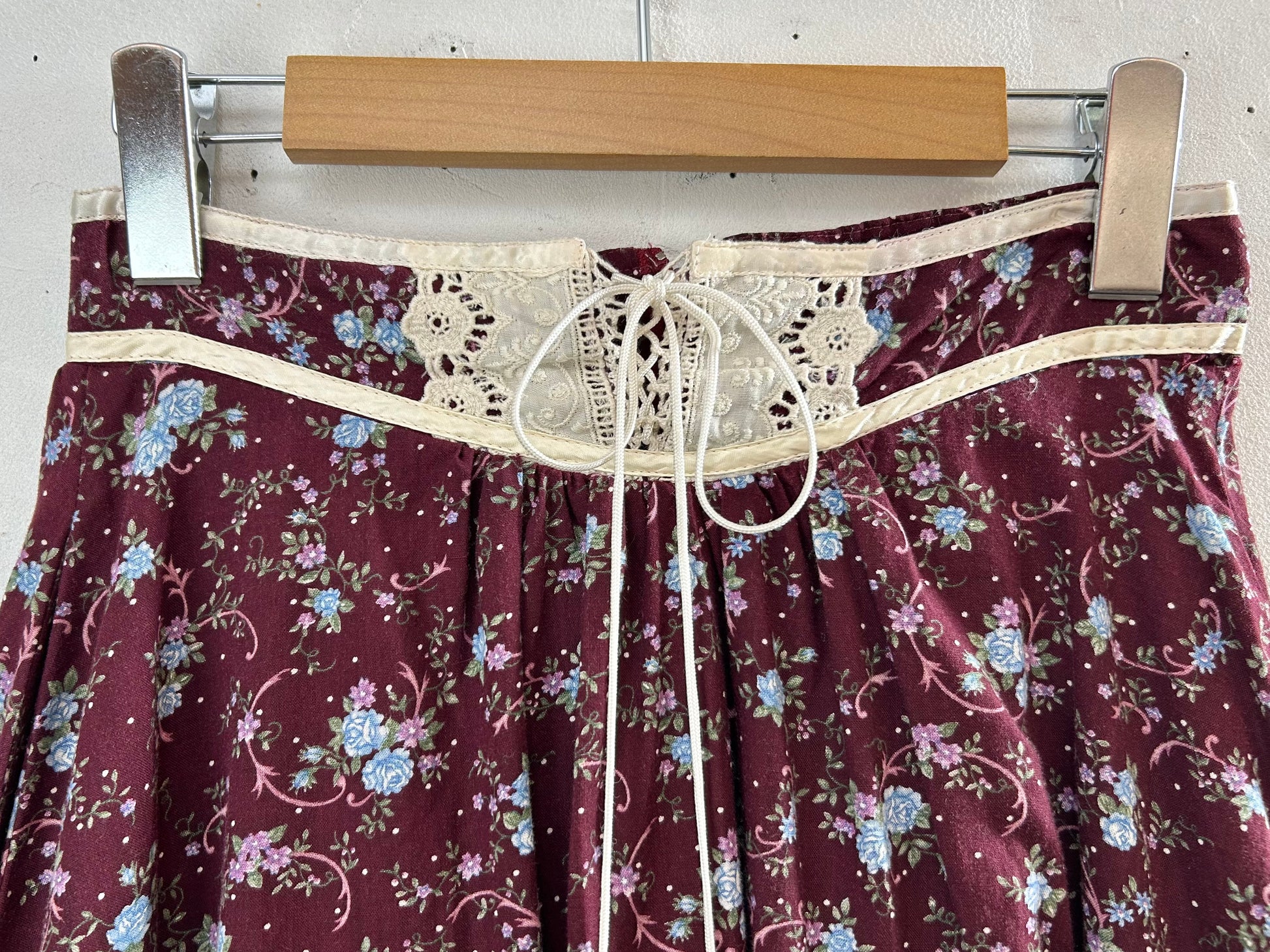 こちらのスカートは、その一つGUNNIESのアイテムで、ロマンティックなフラワーパターンとレースを組み合わせたGUNNIESらしいガーリーな1着。
