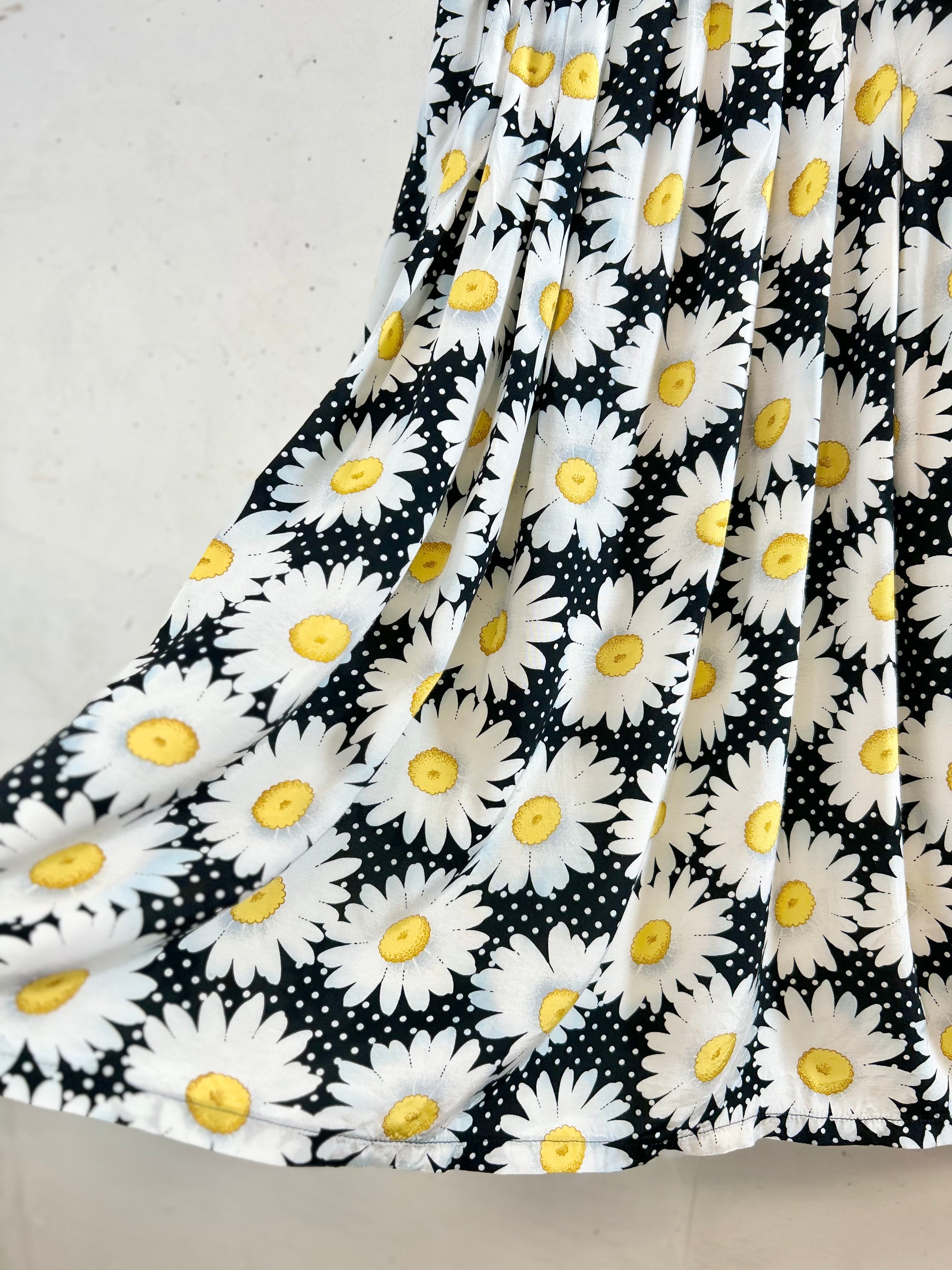 モノトーンのドットにデイジーが華やかで可愛らしい一着。