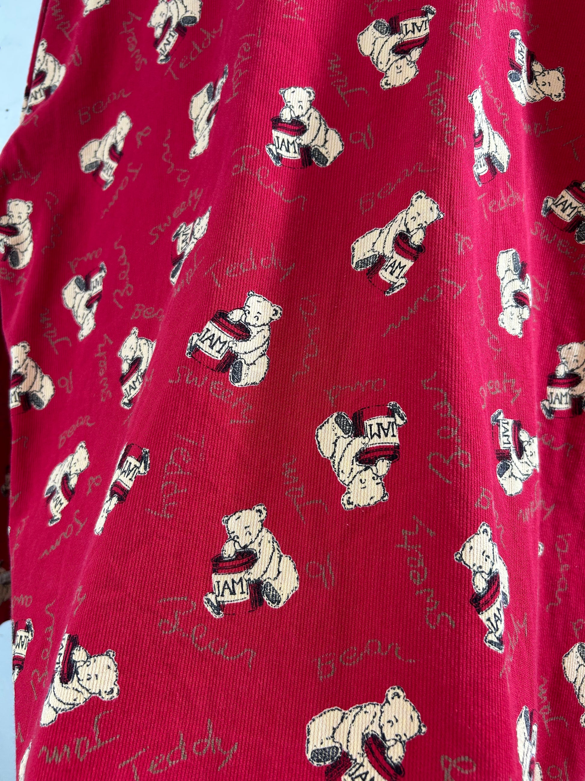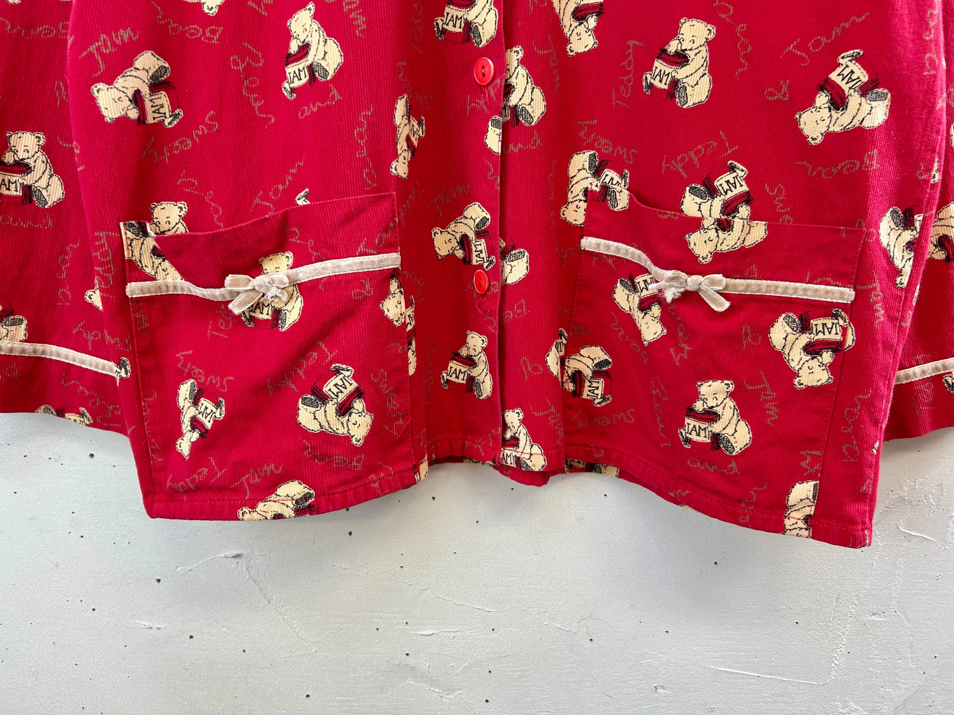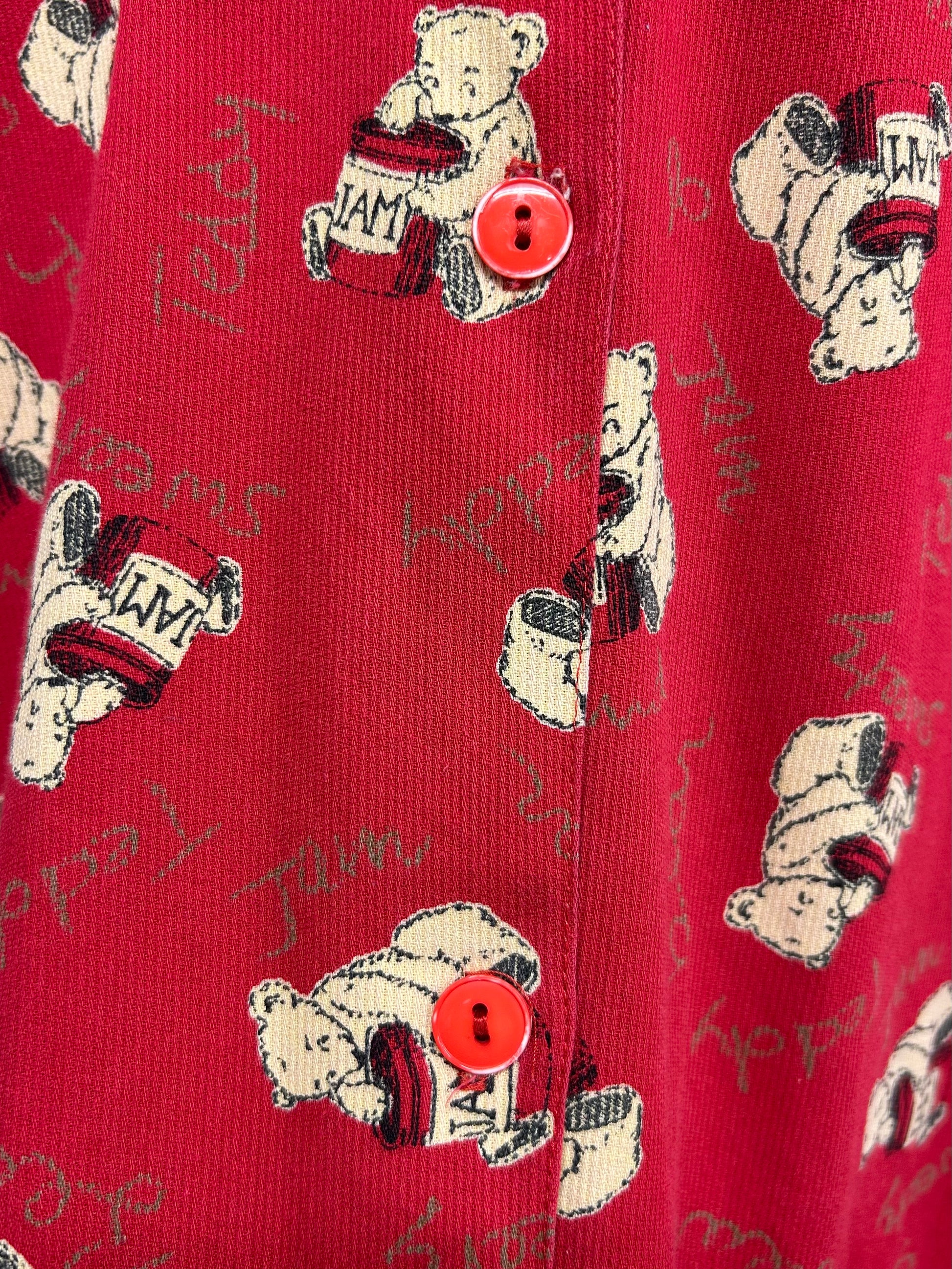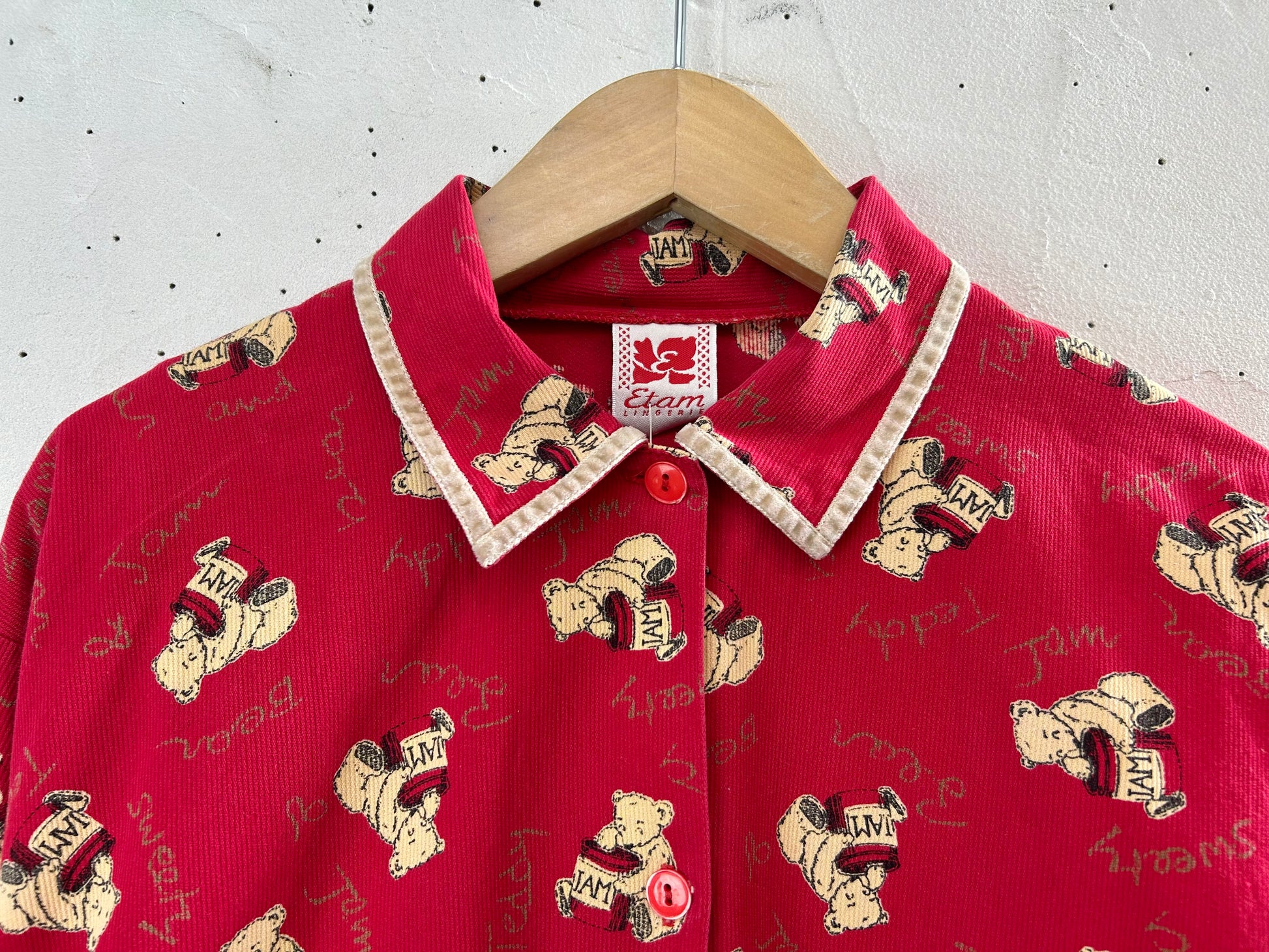ジャムを食べようとしているクマのプリントがビンテージならではなファニーな一着。