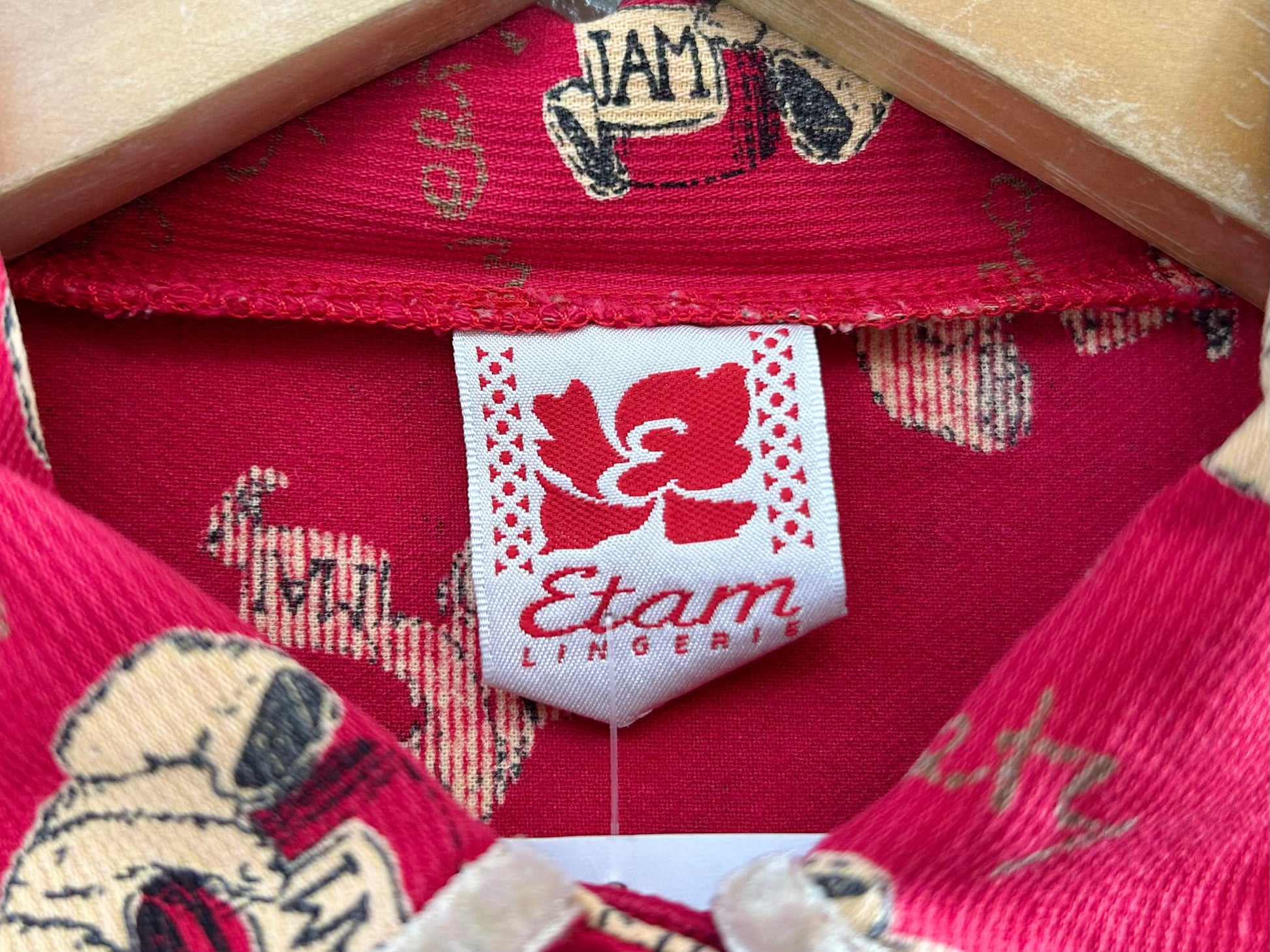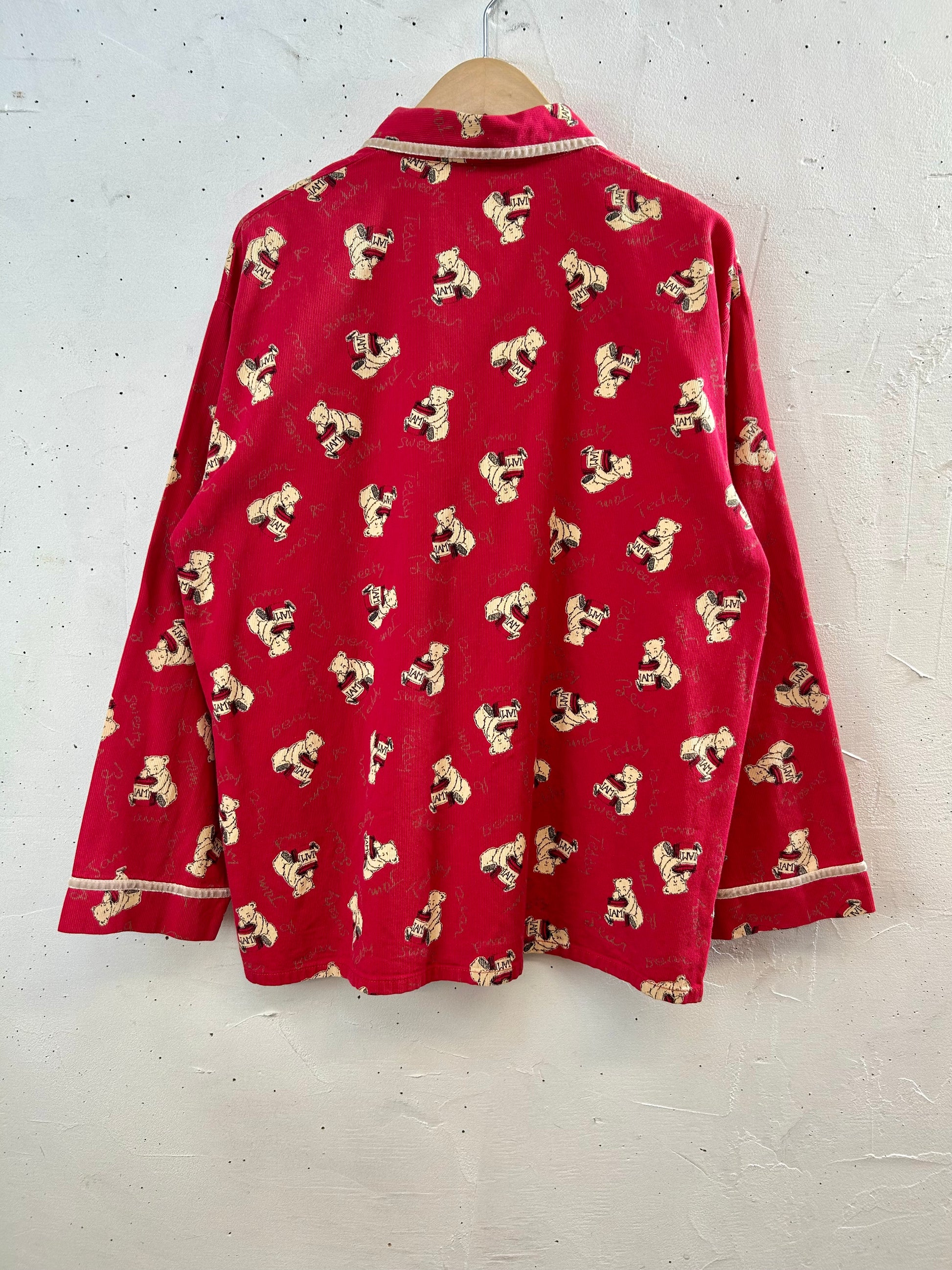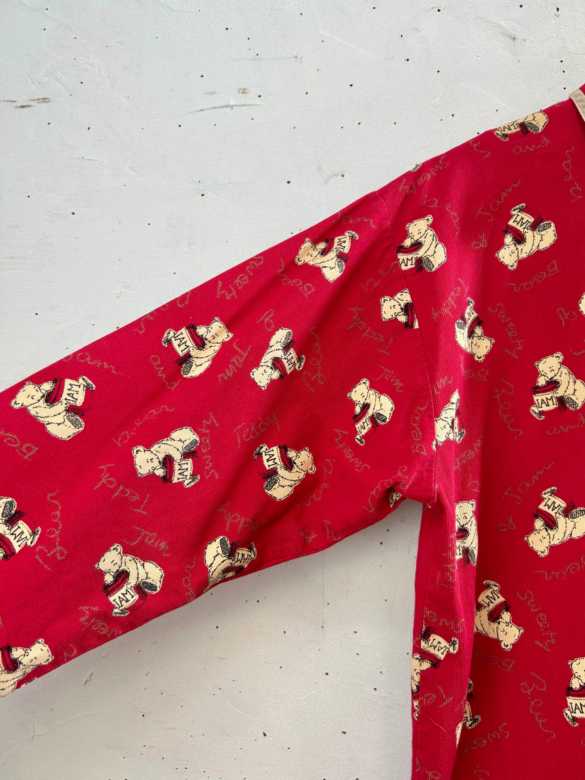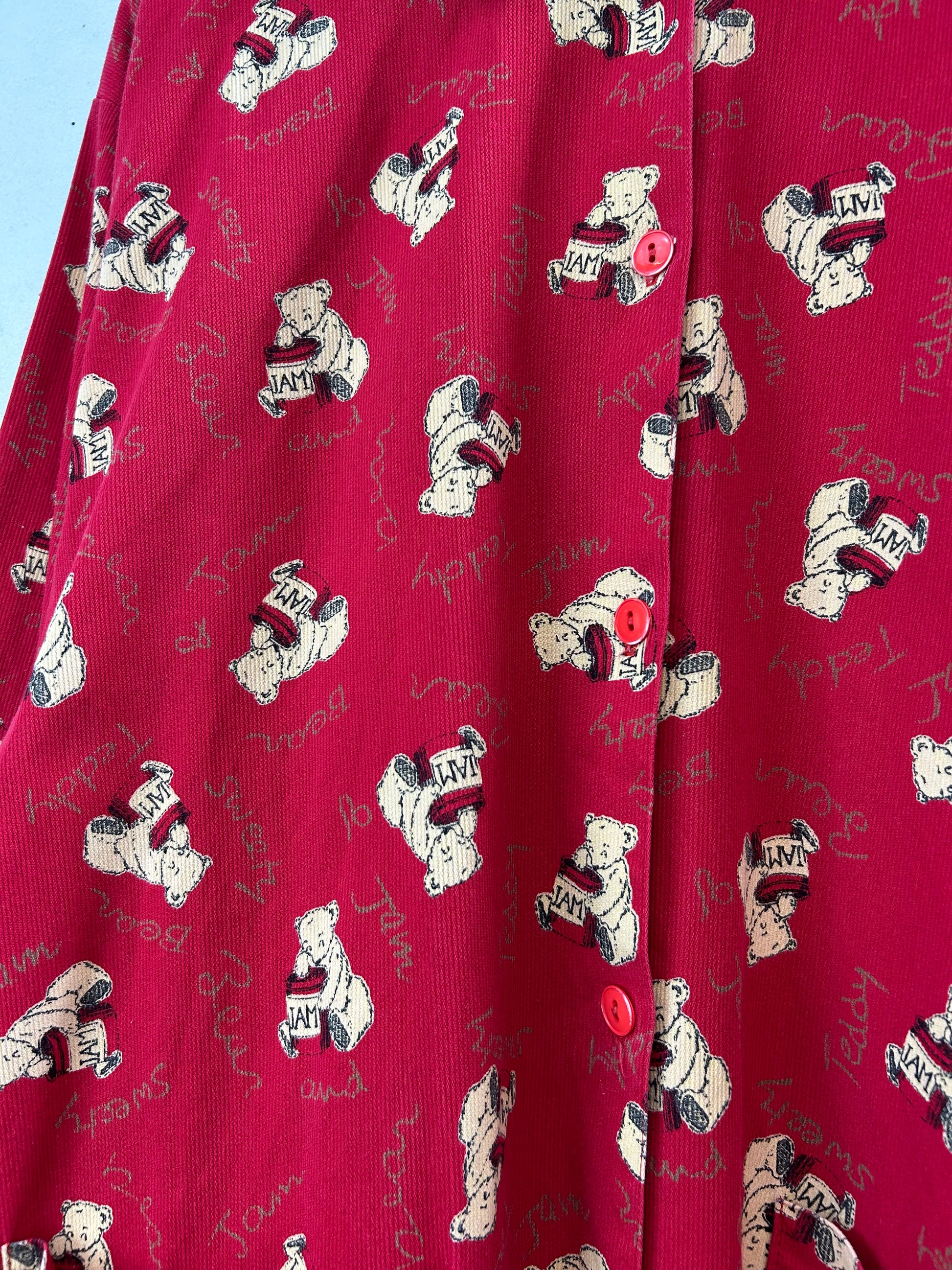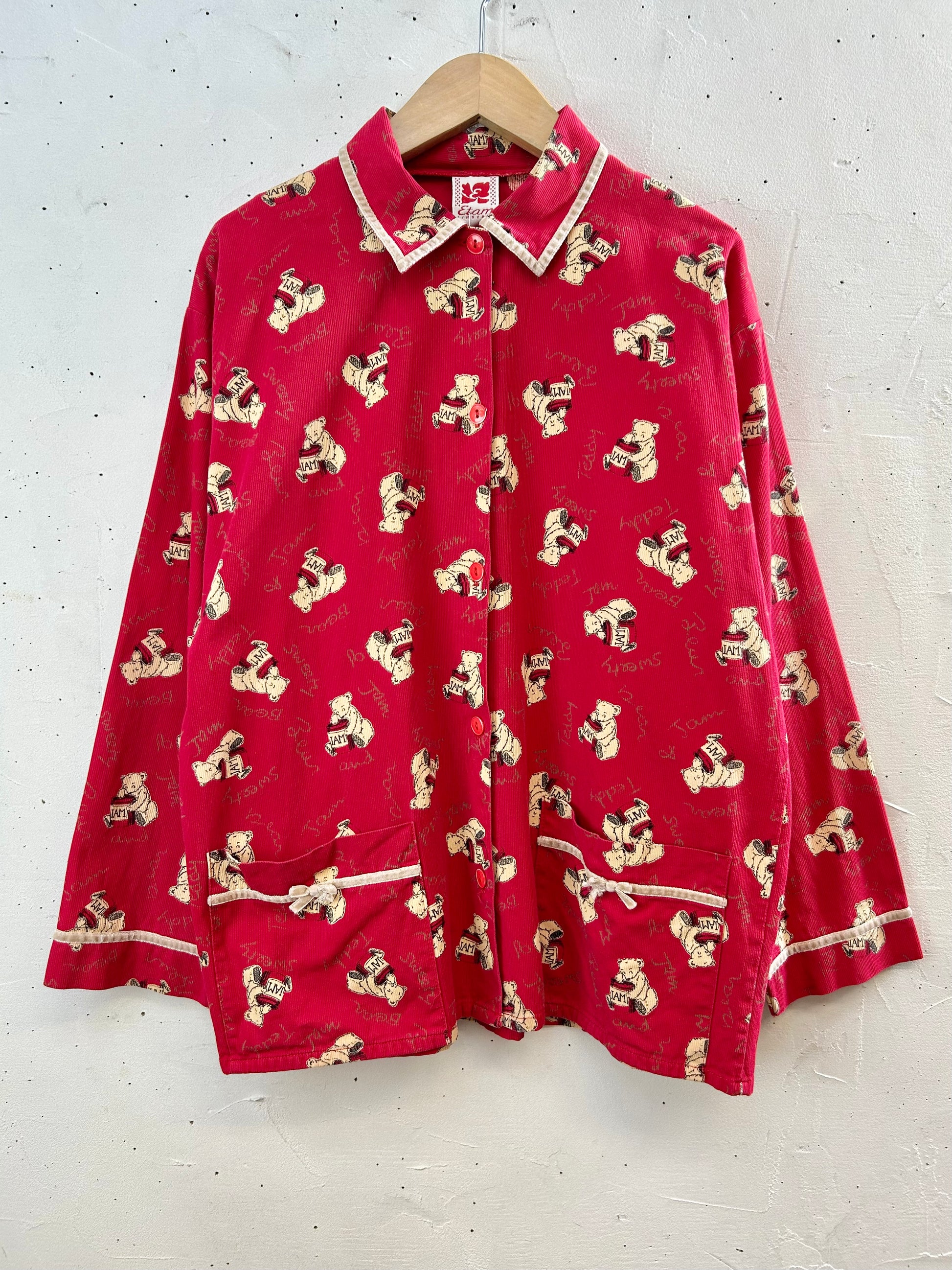 ジャムを食べようとしているクマのプリントがビンテージならではなファニーな一着。