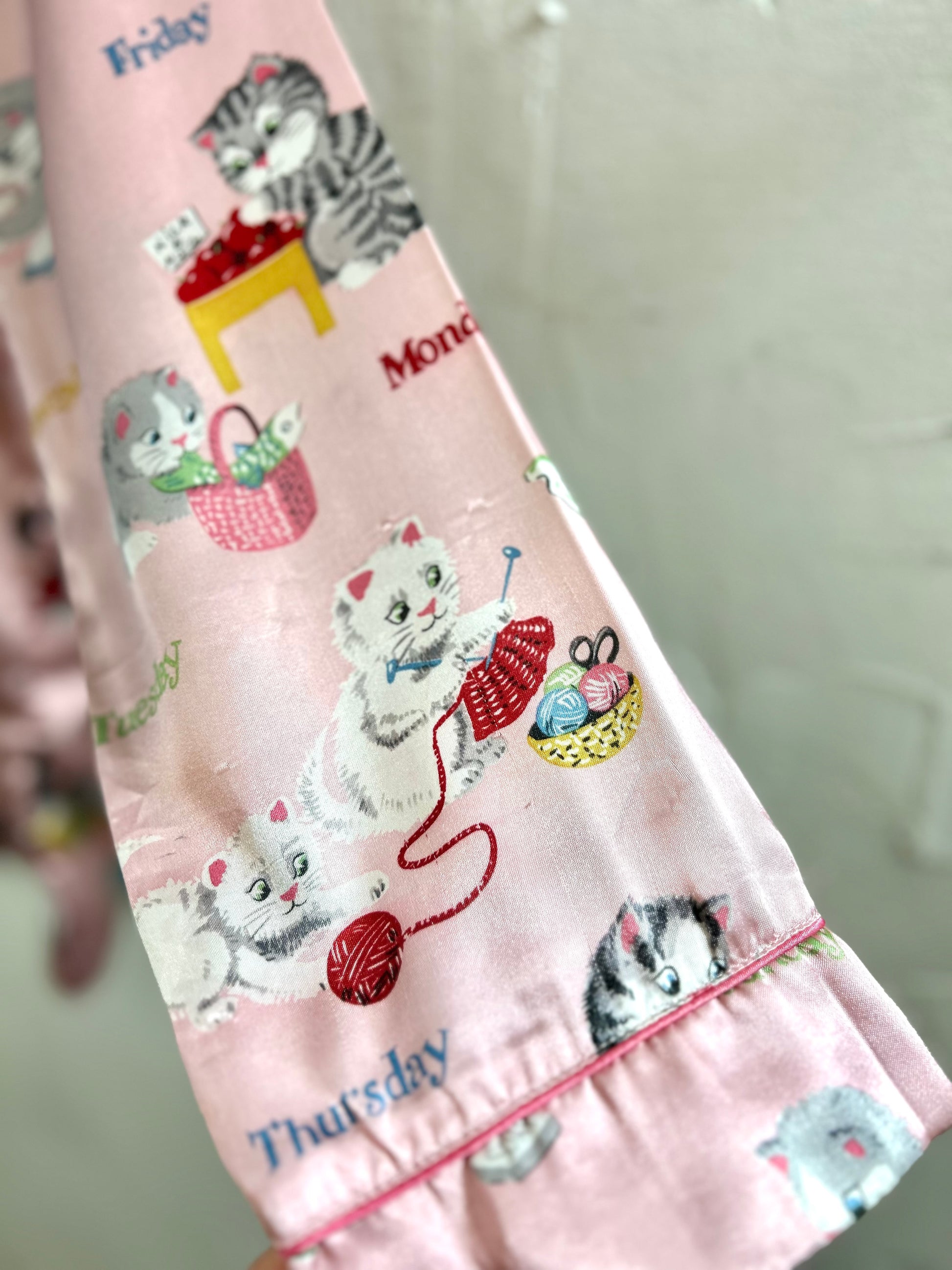 猫のお母さんの忙しい一週間が描かれていて、とても可愛い柄となっています。