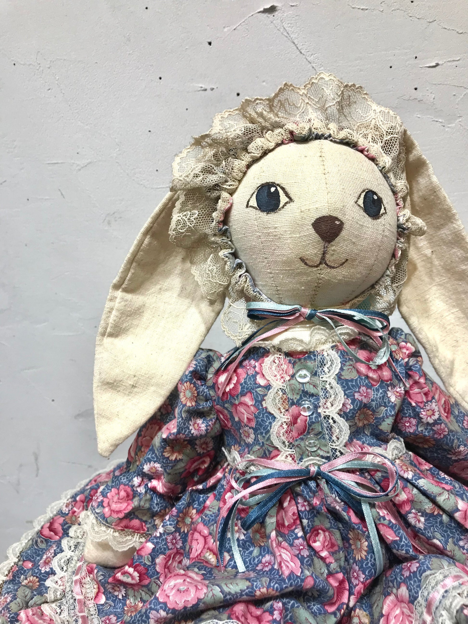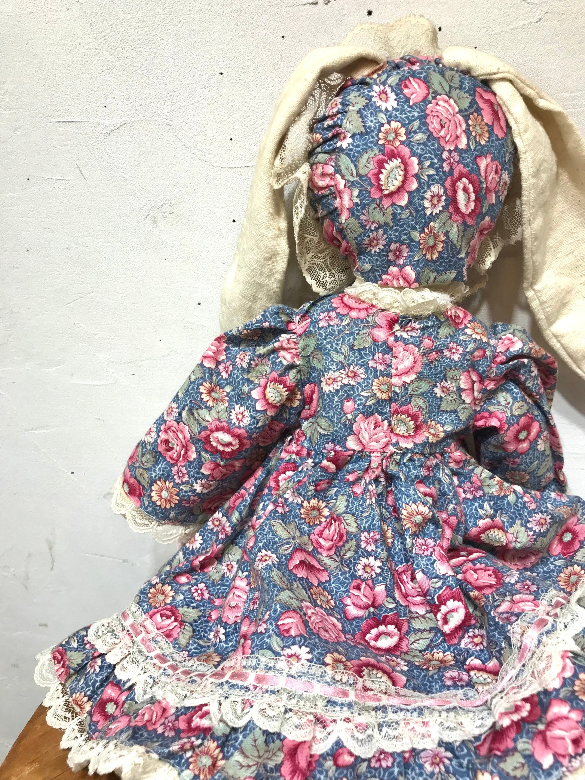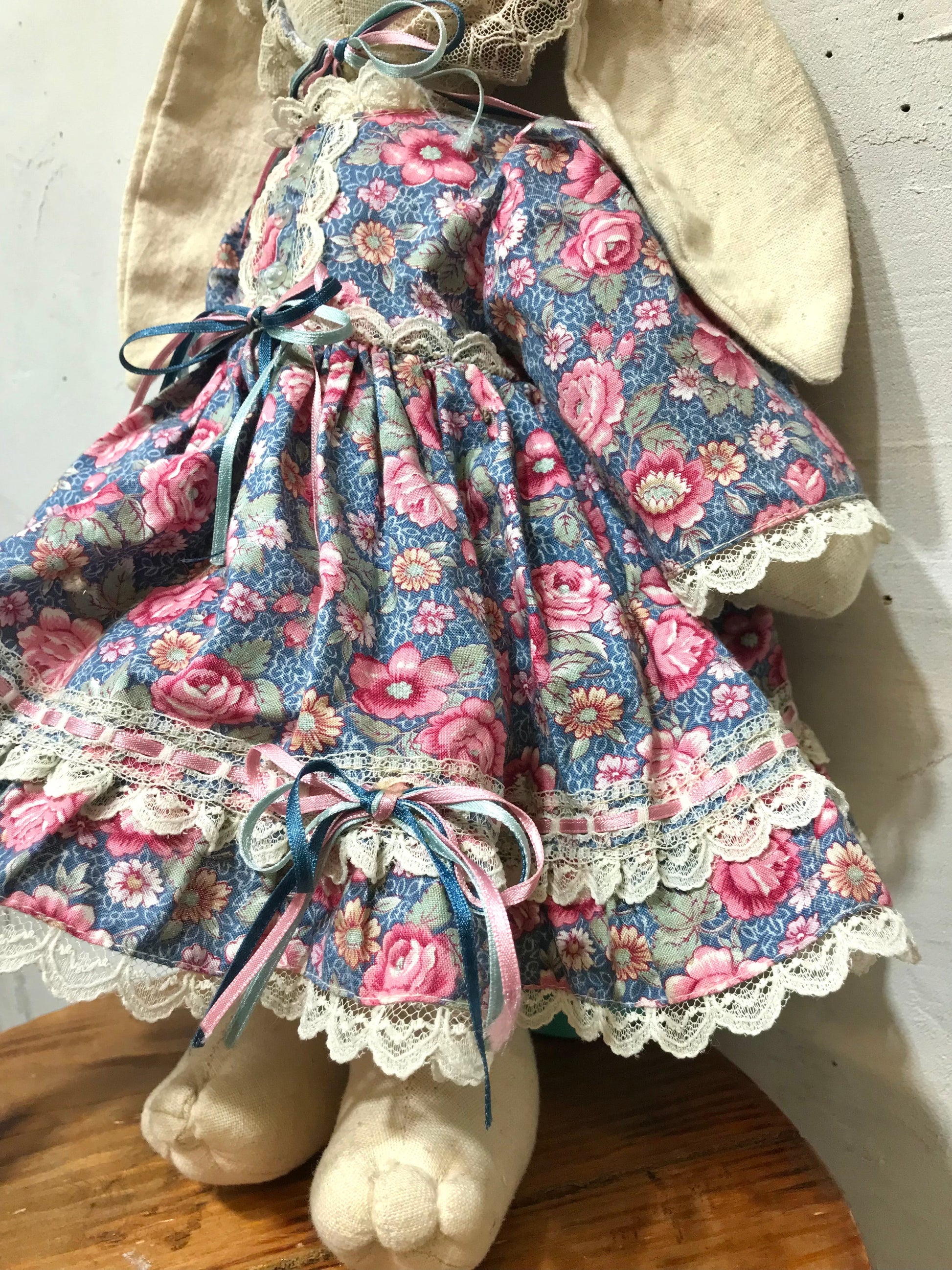 フラワーのドレスを身に纏ったキュートなうさぎさんのぬいぐるみ。