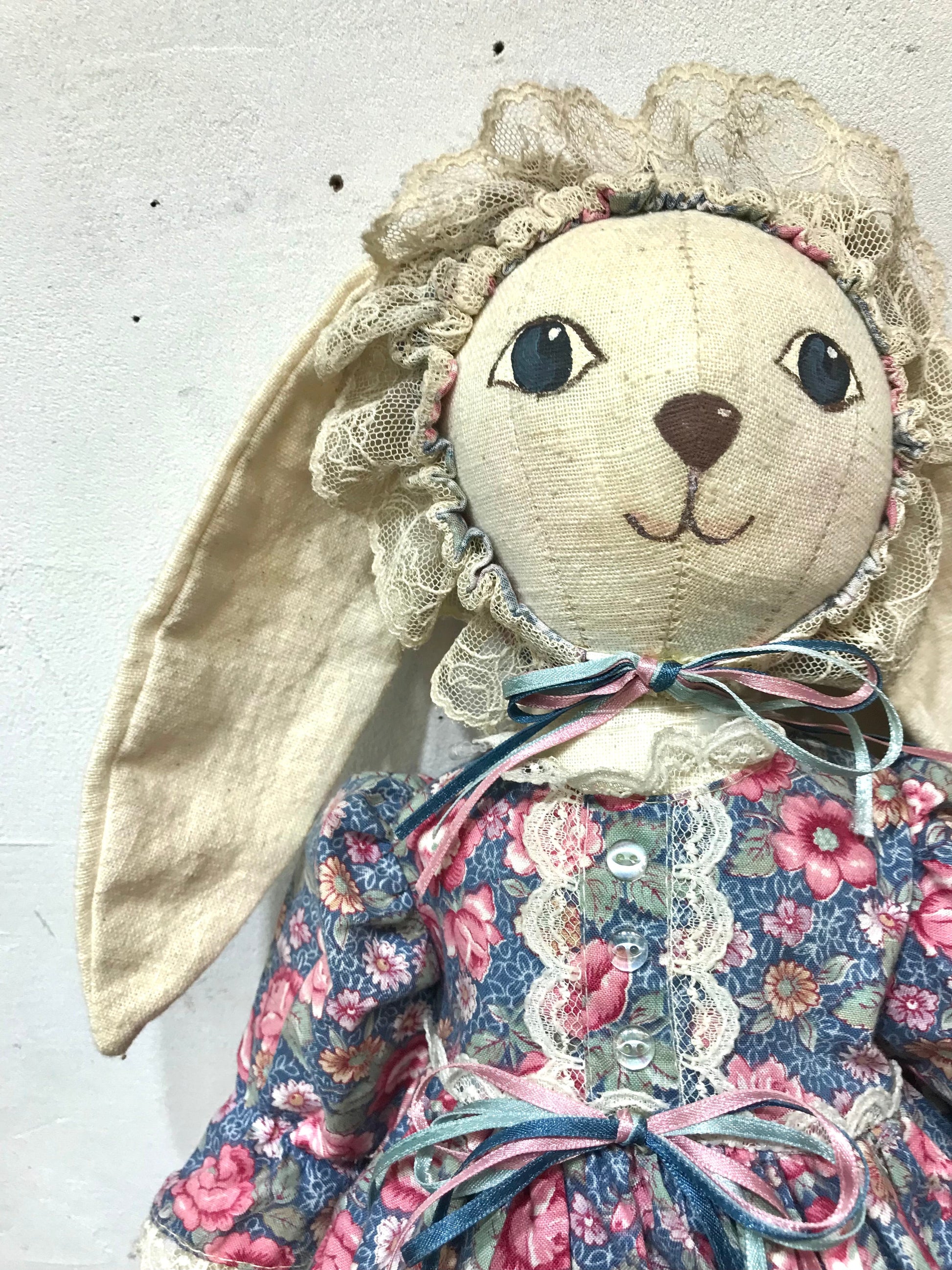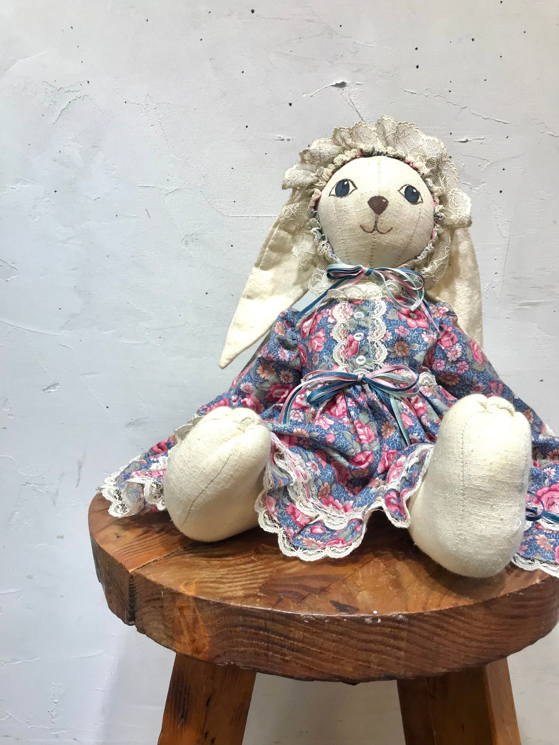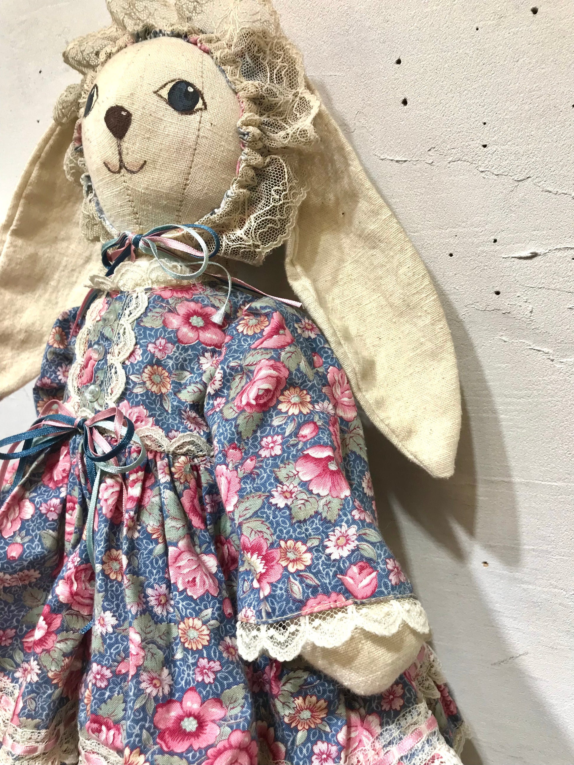 フラワーのドレスを身に纏ったキュートなうさぎさんのぬいぐるみ。