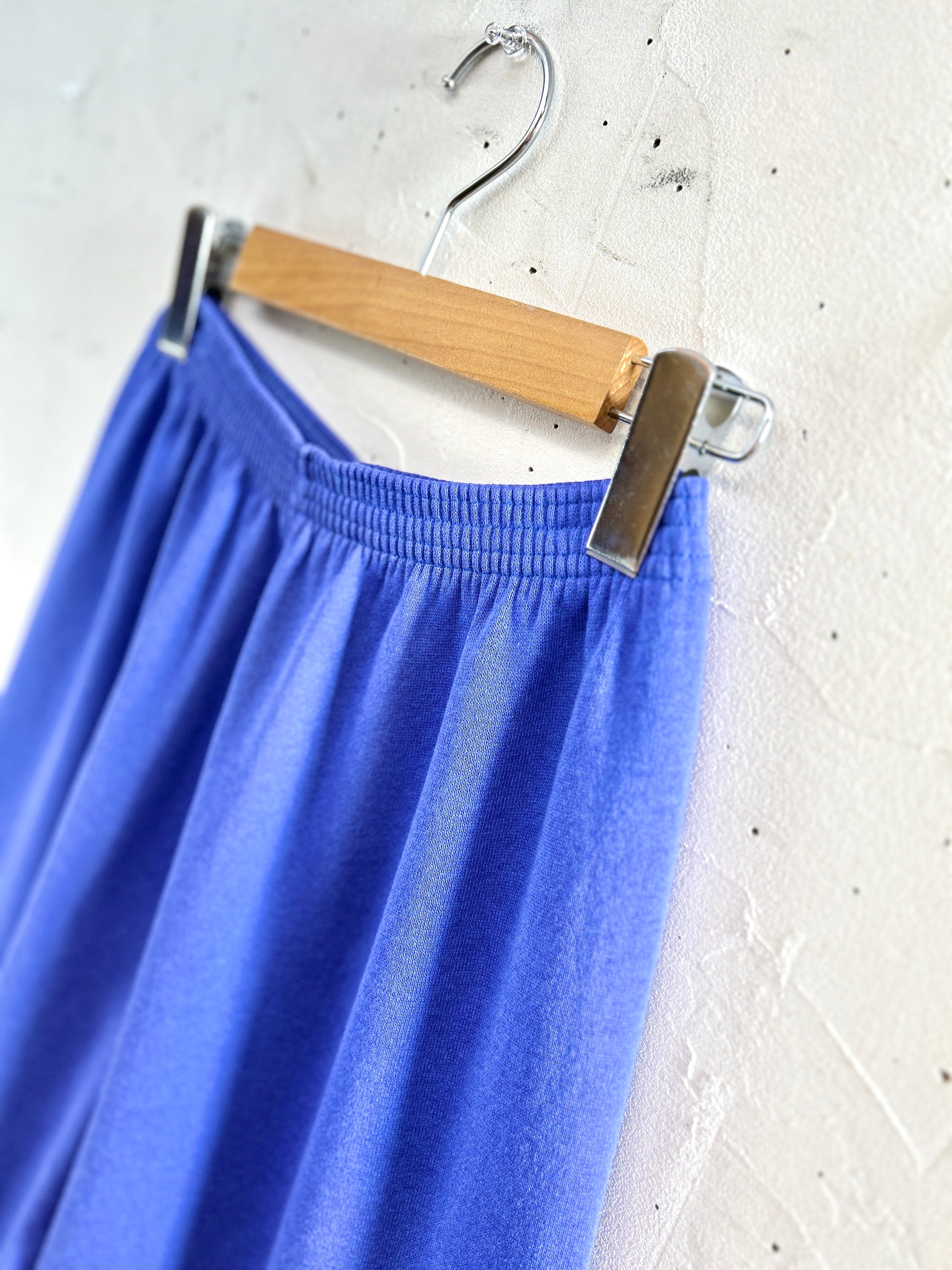 落ち着きのあるパープルブルーカラーのバレルシルエットパンツです。