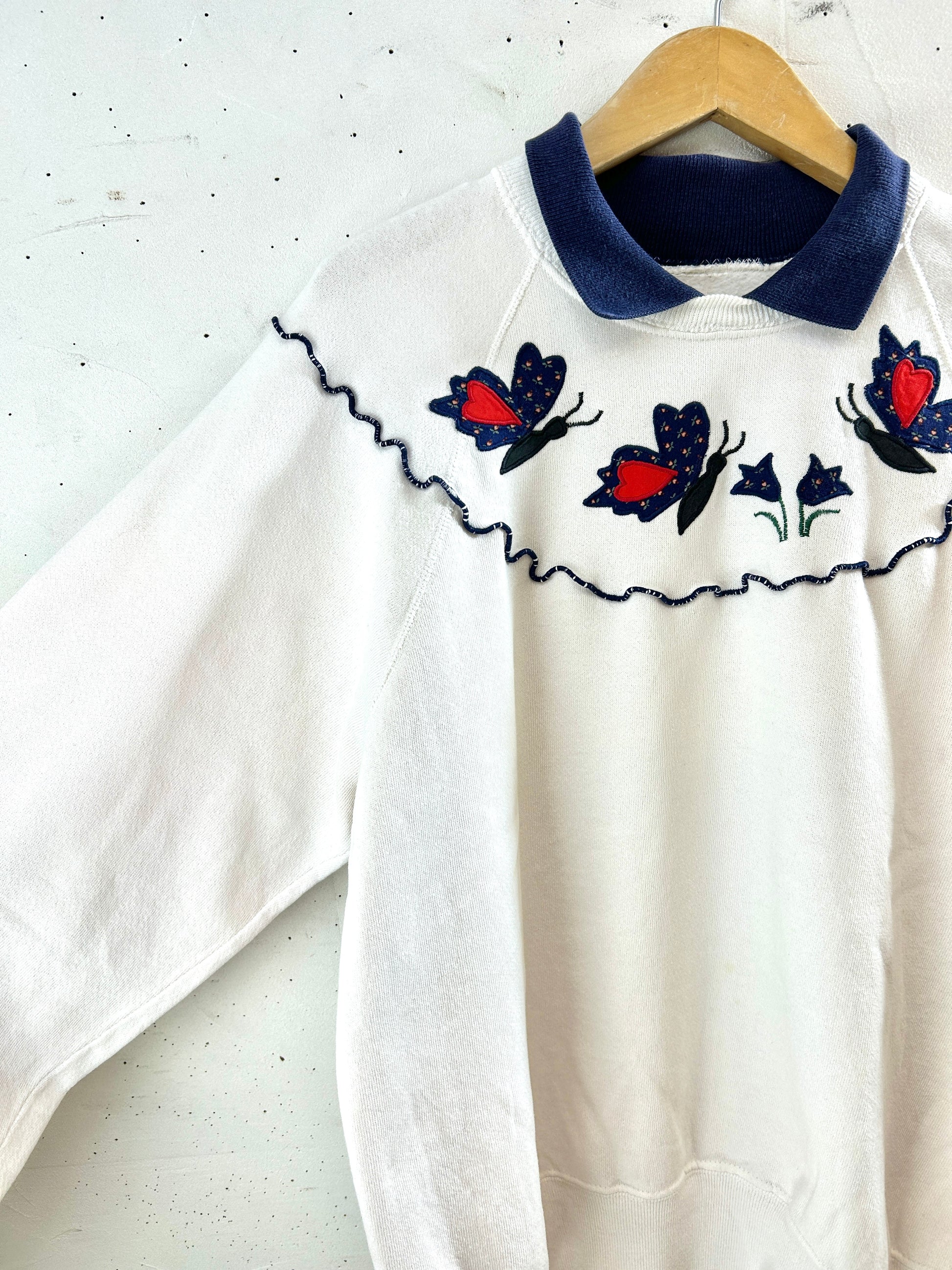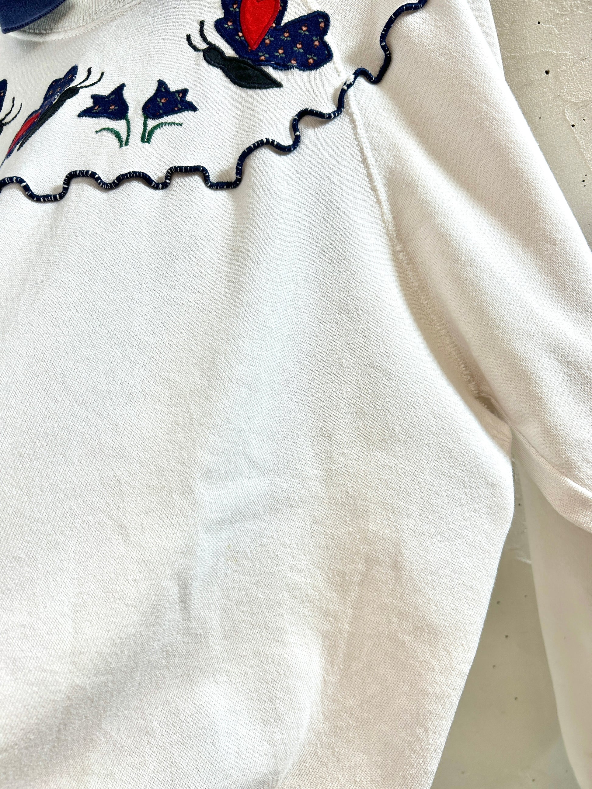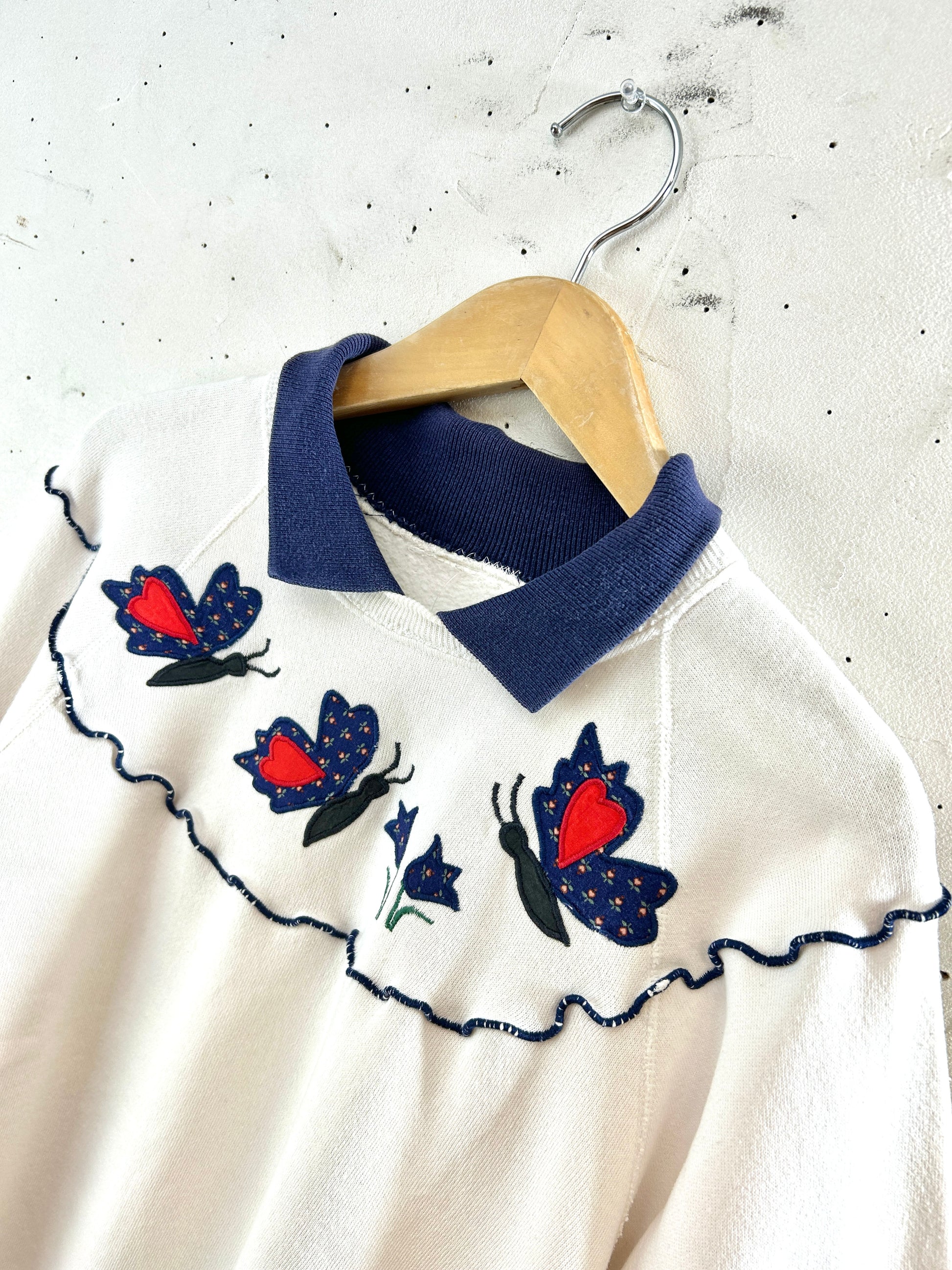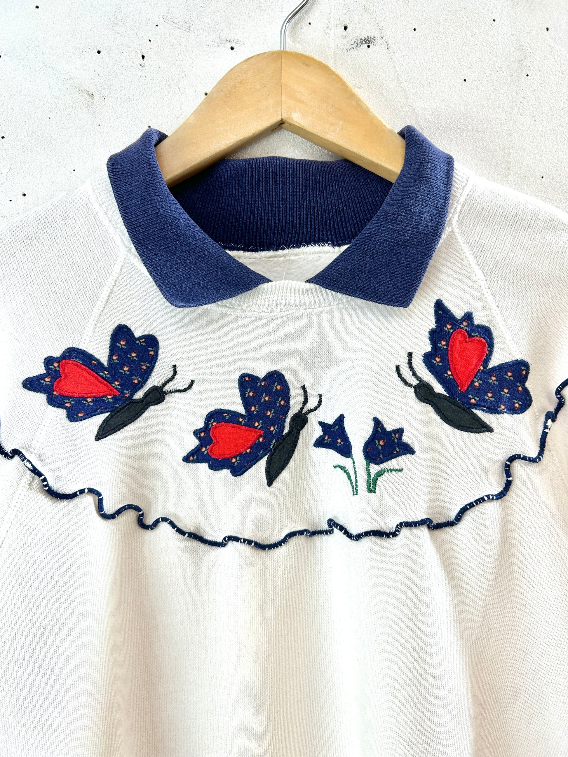 襟付きボディに蝶々のアップリケが可愛らしい一着。