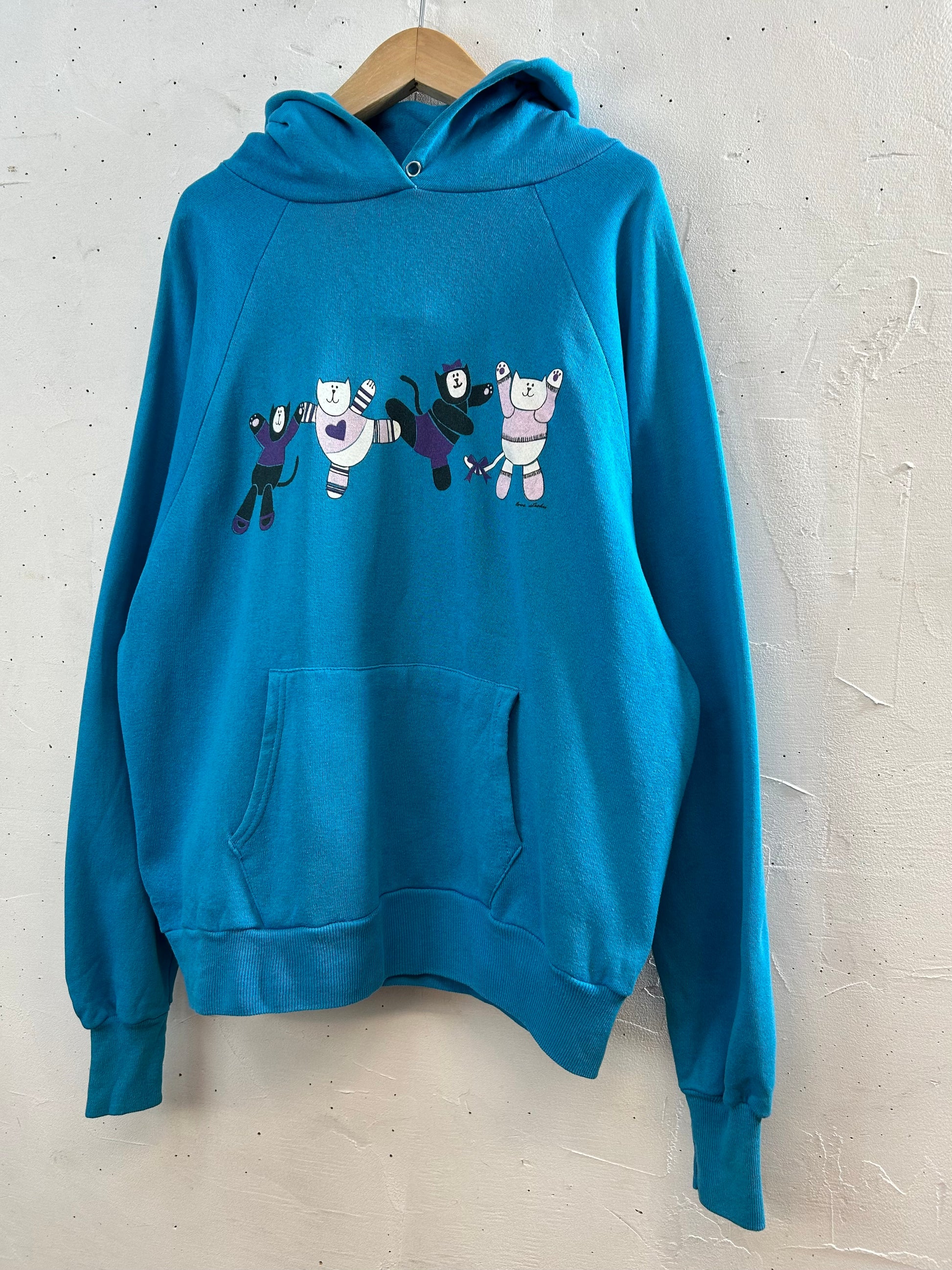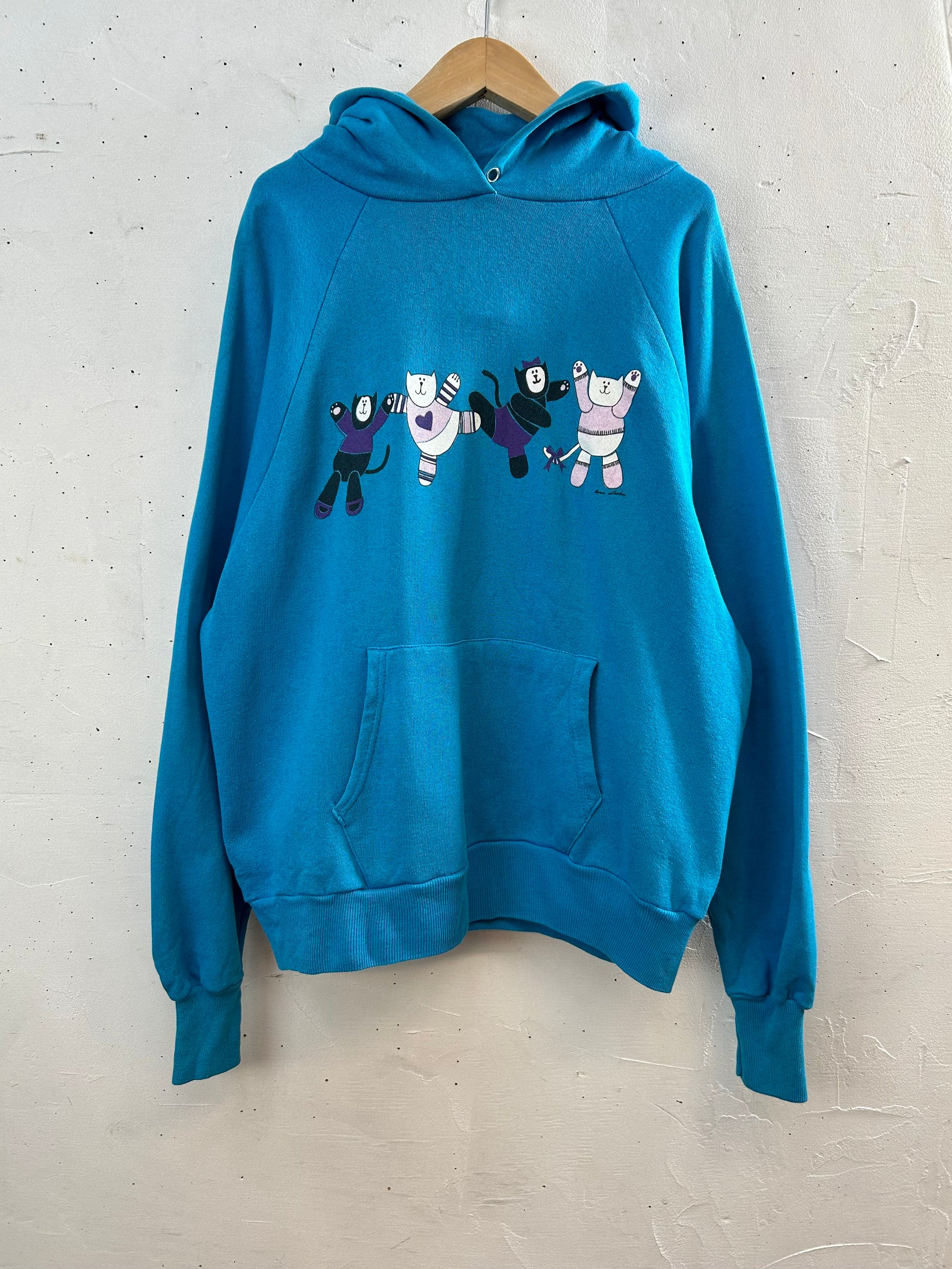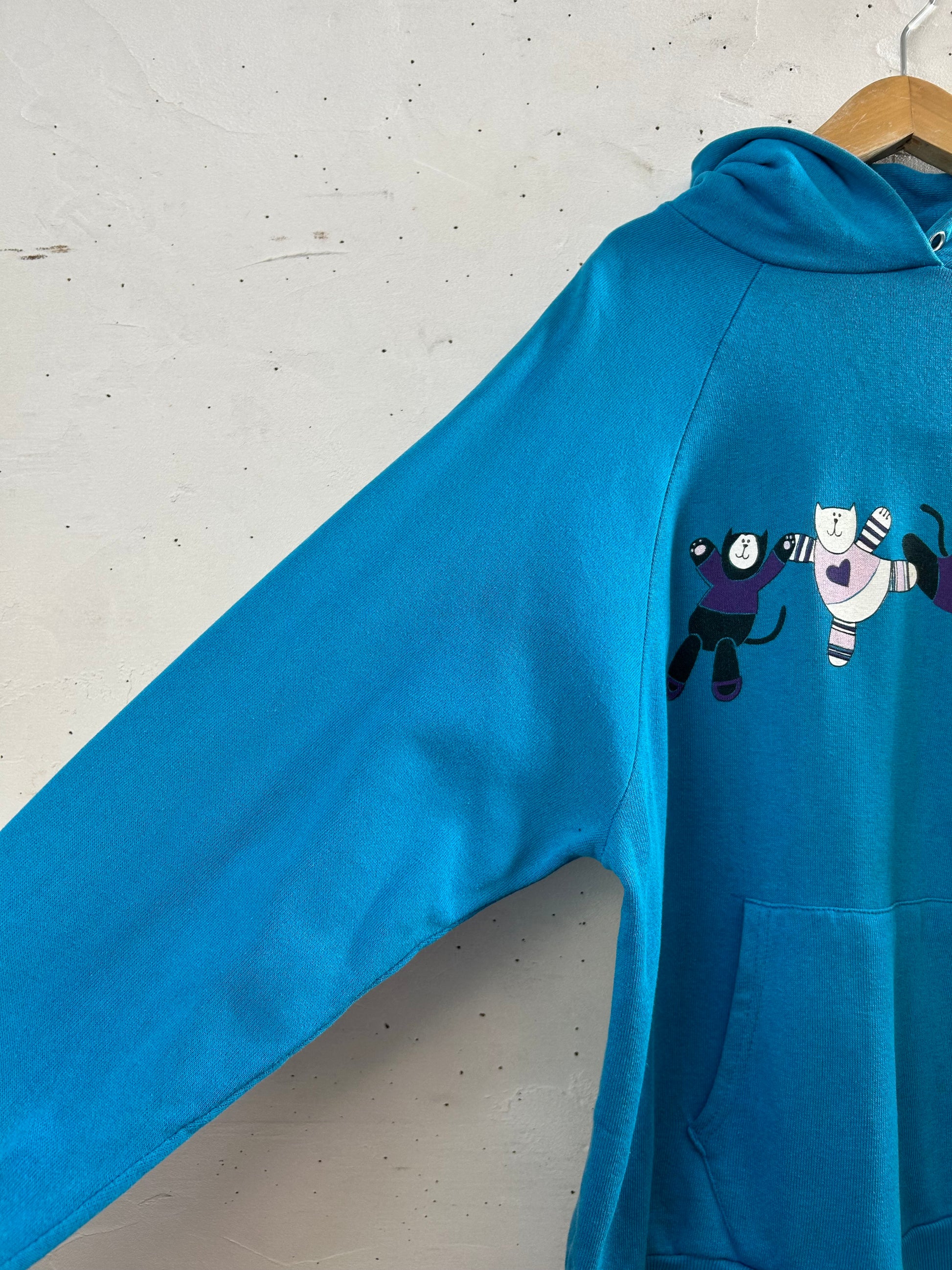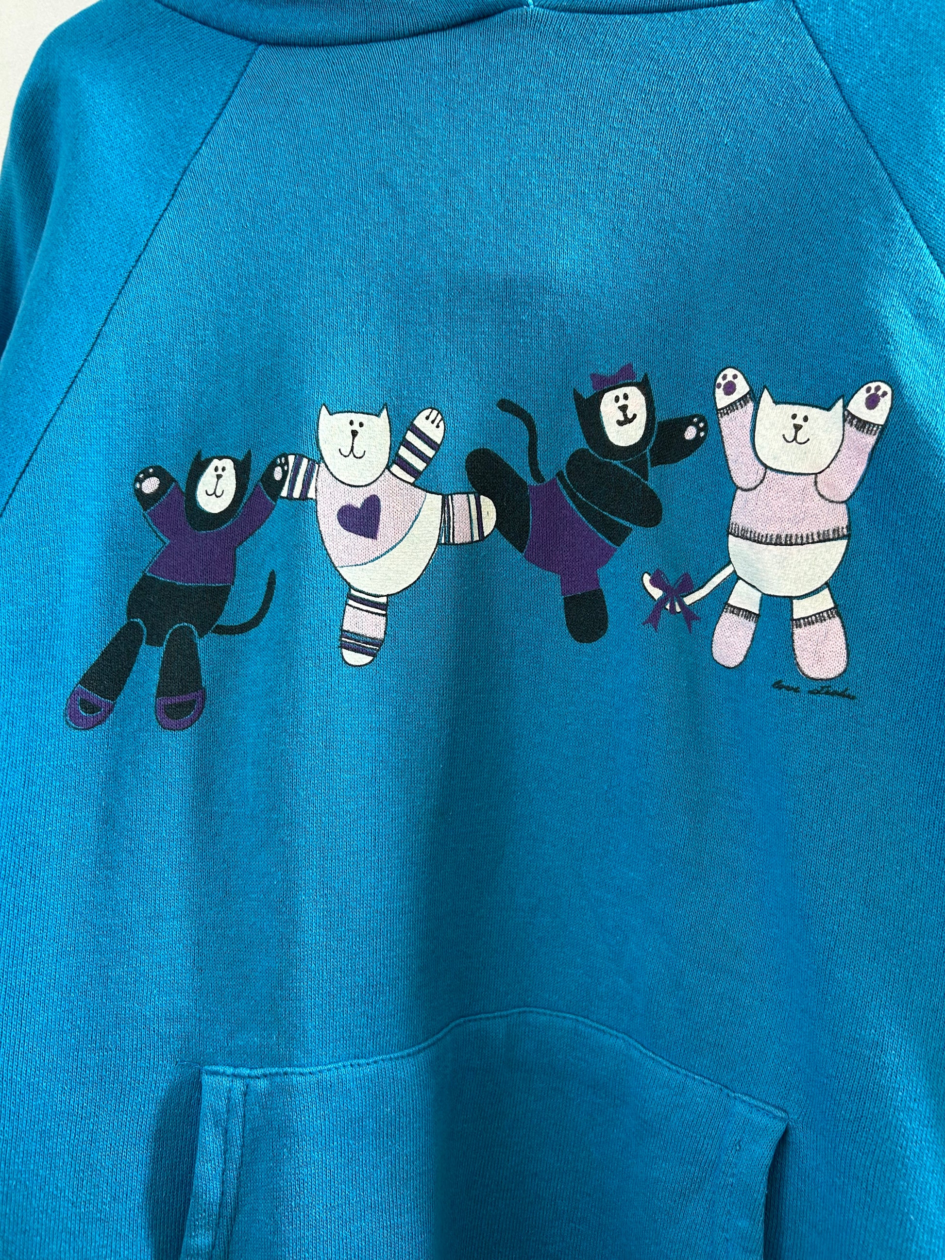 絶妙な色合いのブルーボディに、ゆるい猫たちのプリントが可愛い一着。