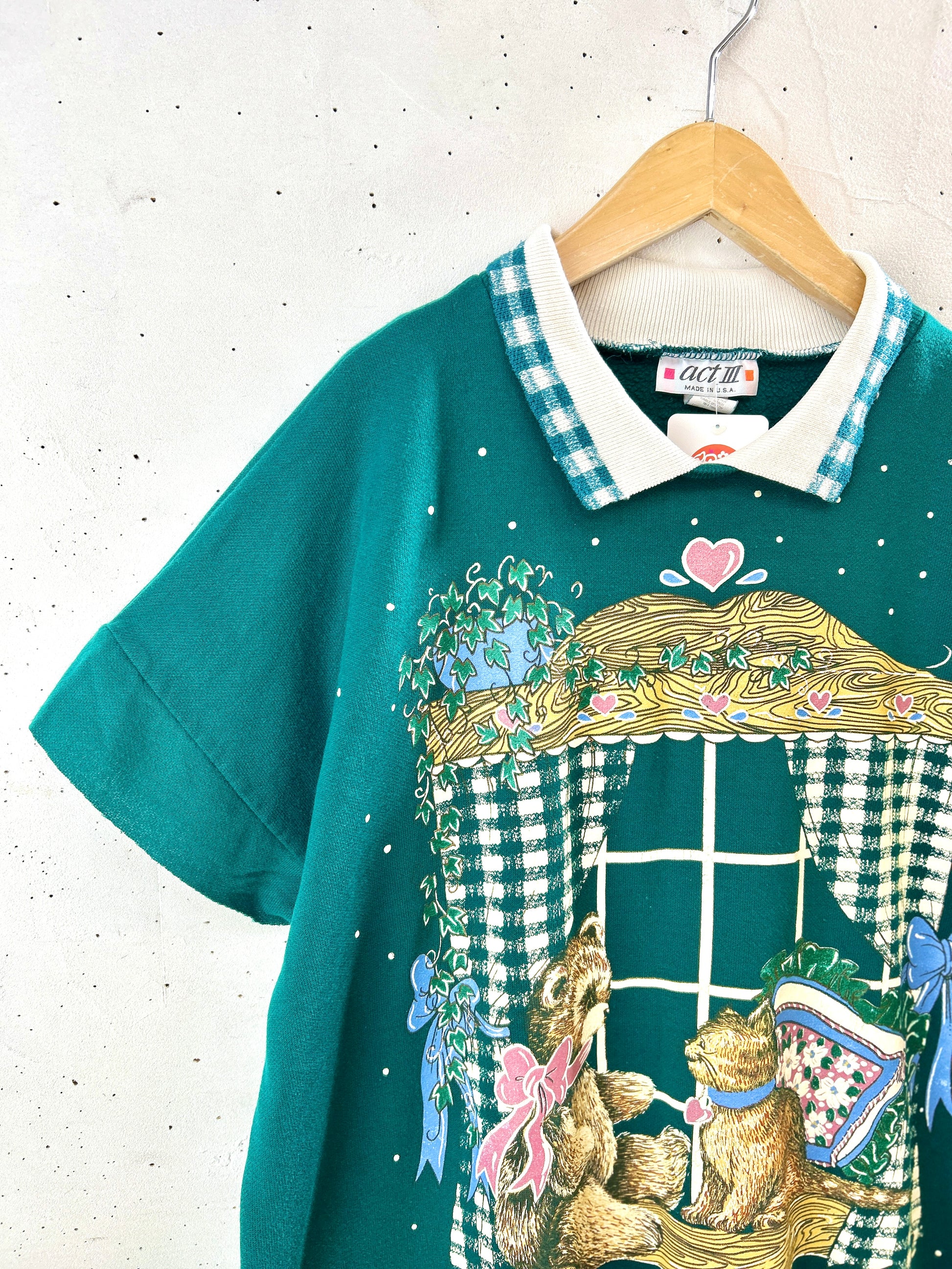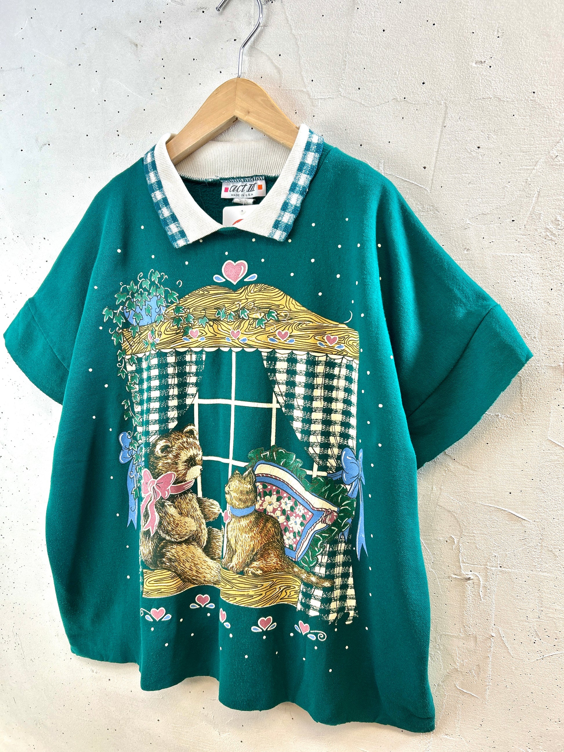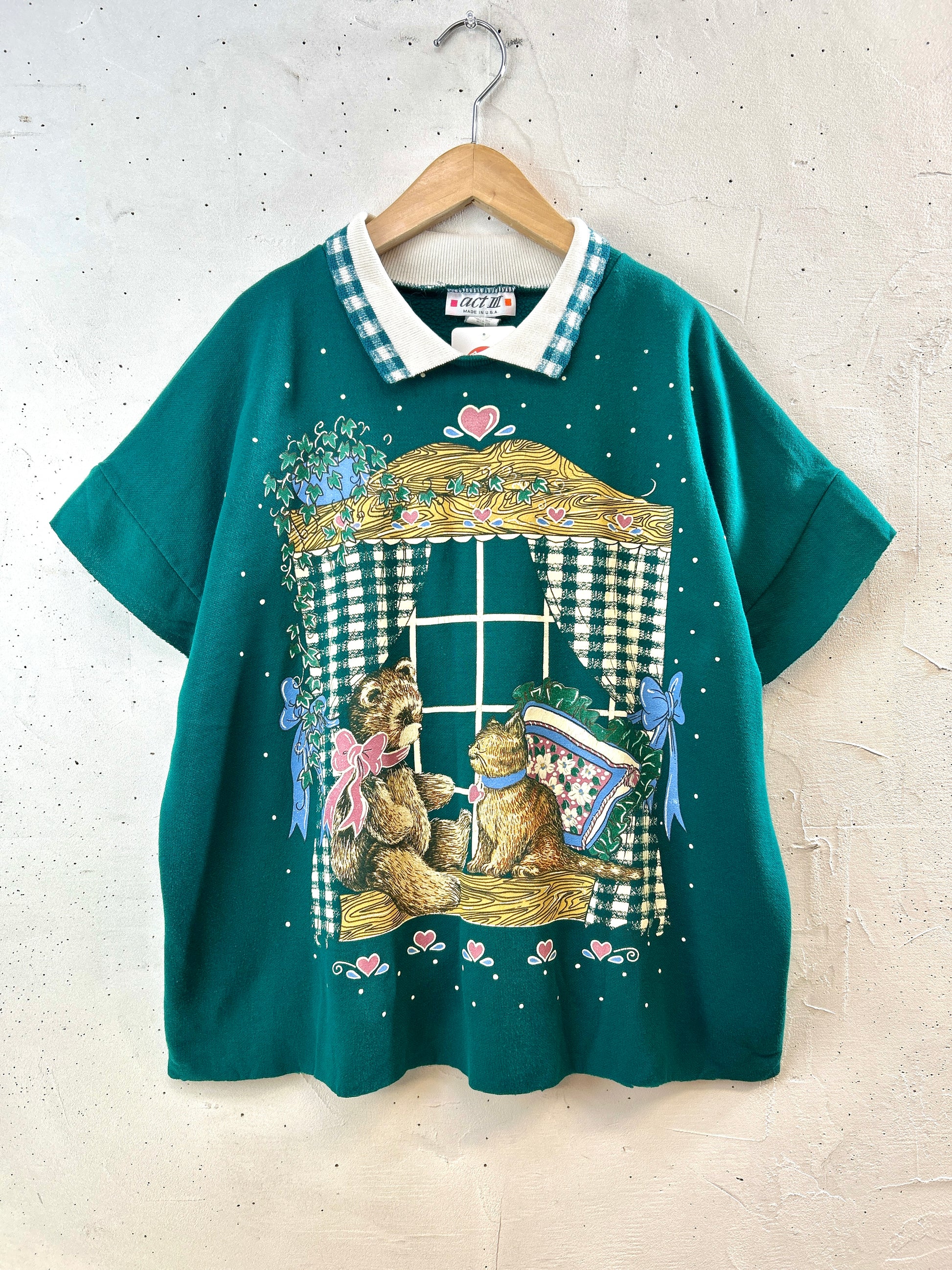 コンディション:プリントのひび割れ、襟に薄いシミがございますが、ビンテージにご理解いただいている方でしたら気にせずご着用頂ける程度かと思われます。
