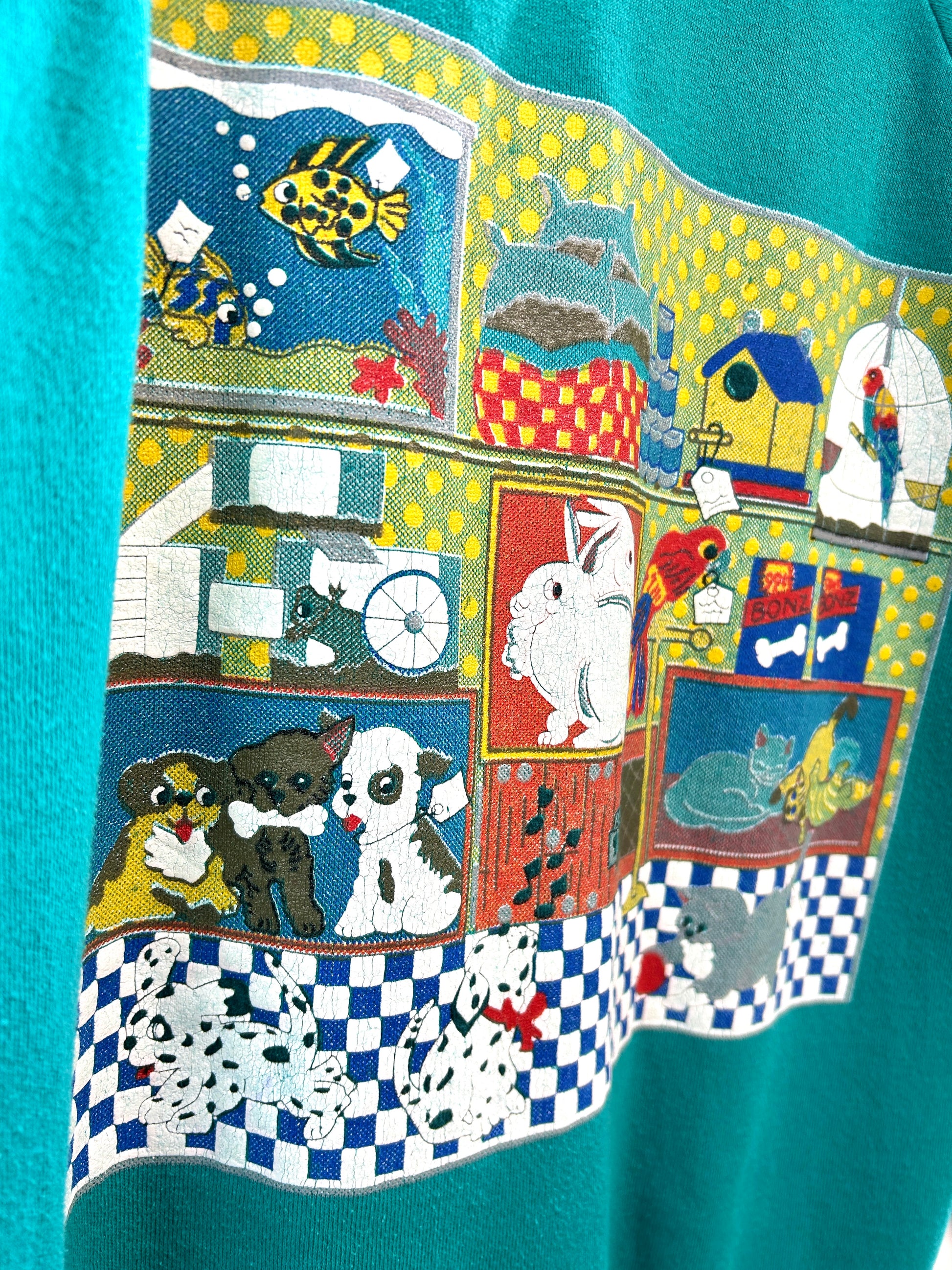 犬、猫、鳥、ウサギなどペットのプリントが可愛らしい一着。