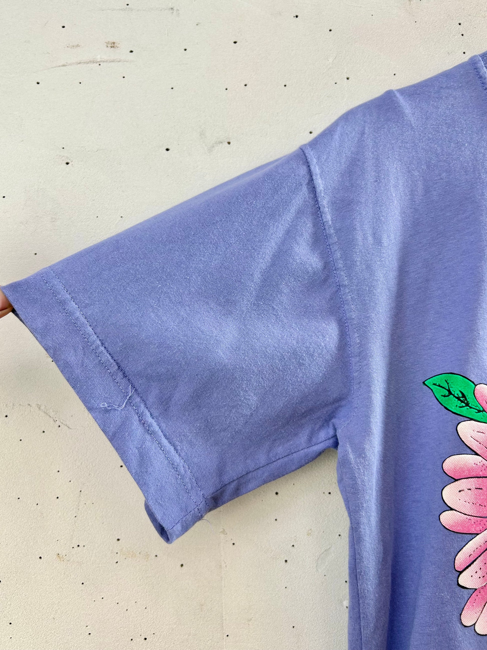anvilのくすみパープルボディに、ビッグなお花とハチドリのハッピーなプリントが可愛らしい一着。