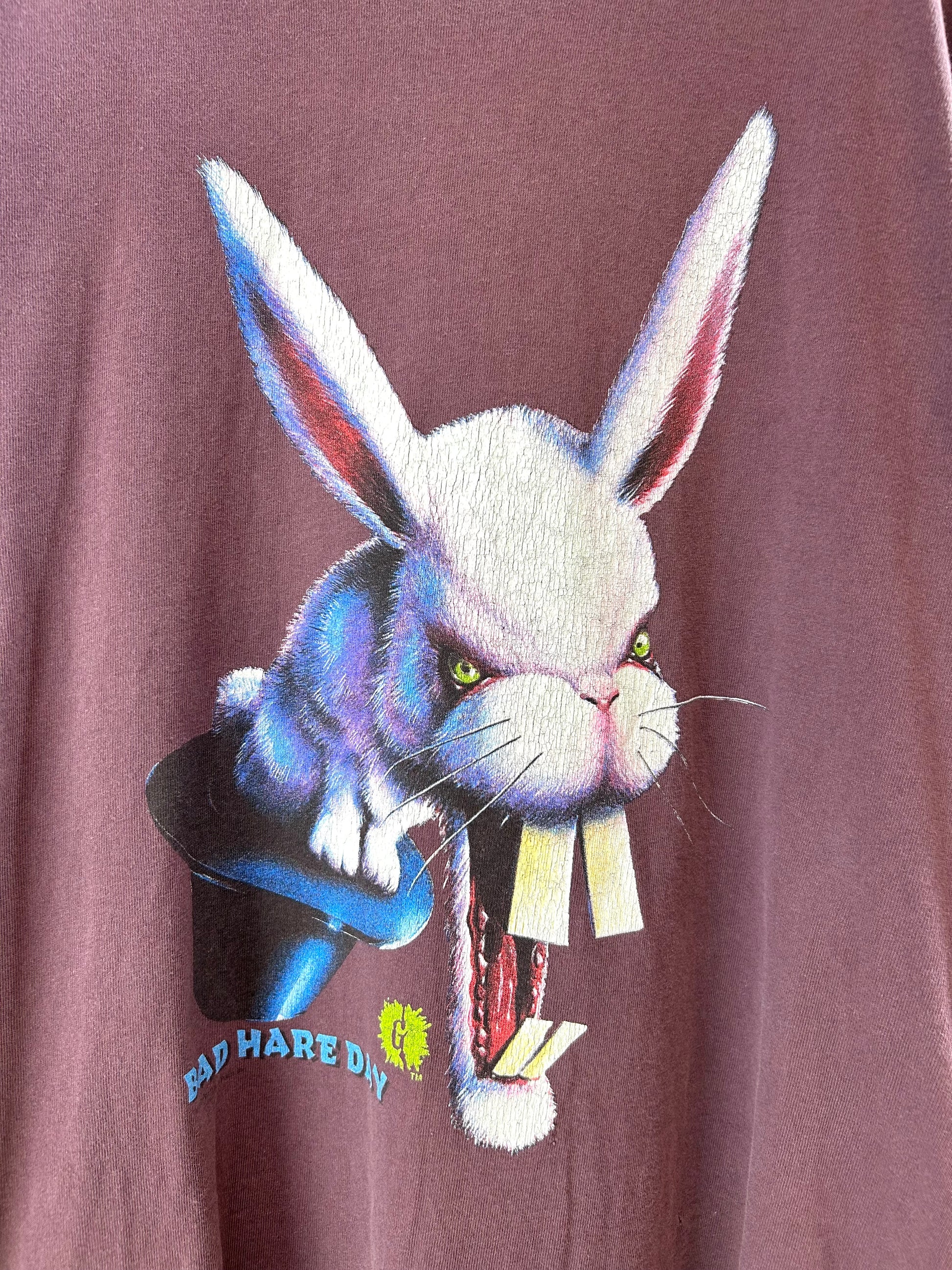 コンディション:プリントにヒビ割れ、フロント裾の小さな穴ダメージがございますが、ビンテージにご理解頂いている方でしたら気にせずご着用いただける程度かと思われます。